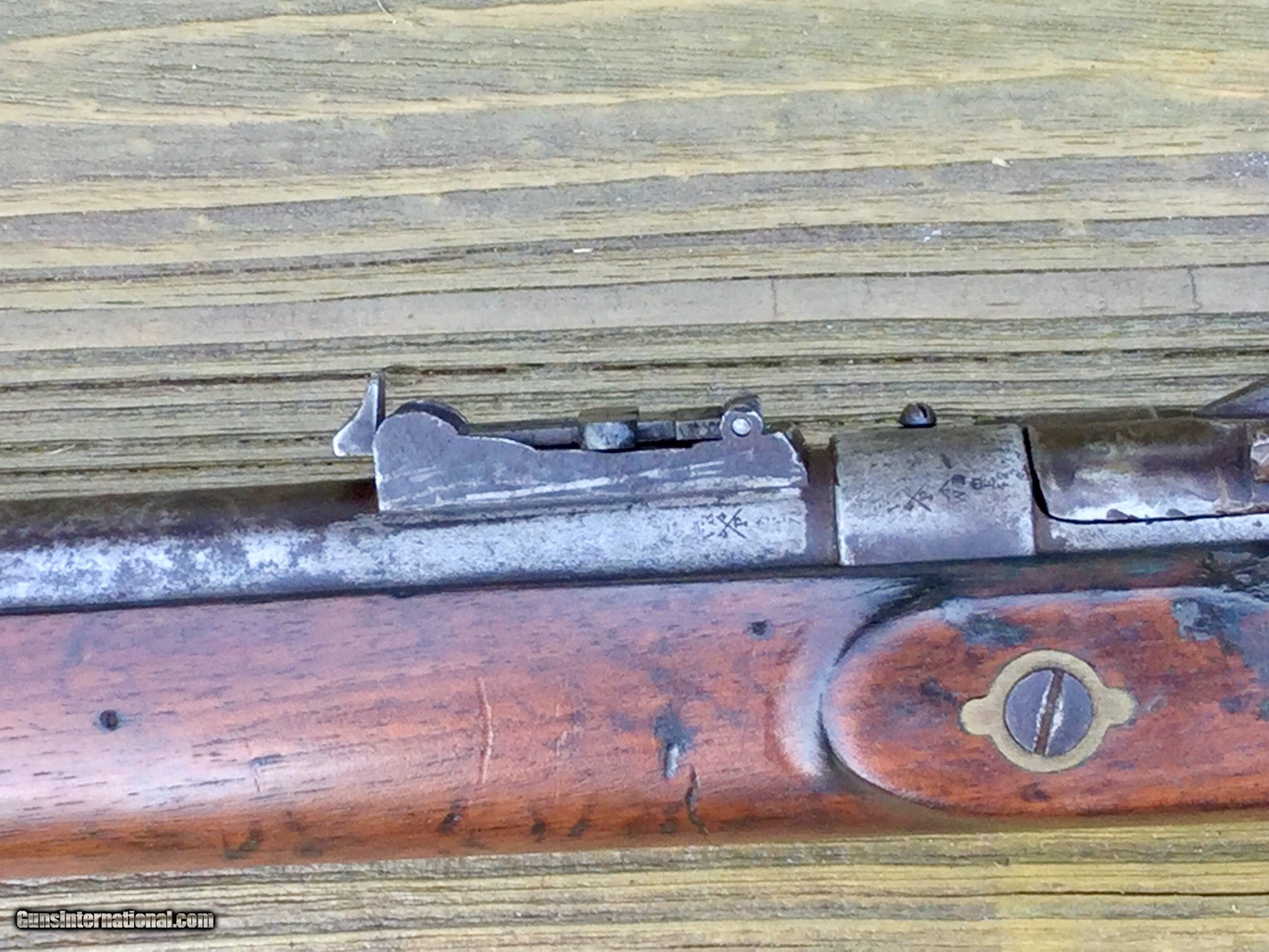 Description: This has all the original cartouche’s, inspectors marks, crown/vr, 1863 date, barrel rifling still decent, not much ta look at, nice patina, breech block locks tight. Missing one screw or the lanyard, look at the picture, yellow mark, back of the trigger guard. It is a shooter, I have ammo listed on G/B. Ask questions! Shipping to the lower 48, $60.00, ships direct to the buyer as this is an antique. SOLD Antique: Yes Manufacturer: BSA Model: Snider Enfield conversion. . Caliber Info: .577 Condition: Good Metal Condition: Patina Wood Condition: Look at it. Bore Condition: Good Action: Breech Block Manufacture Date: 1863? |