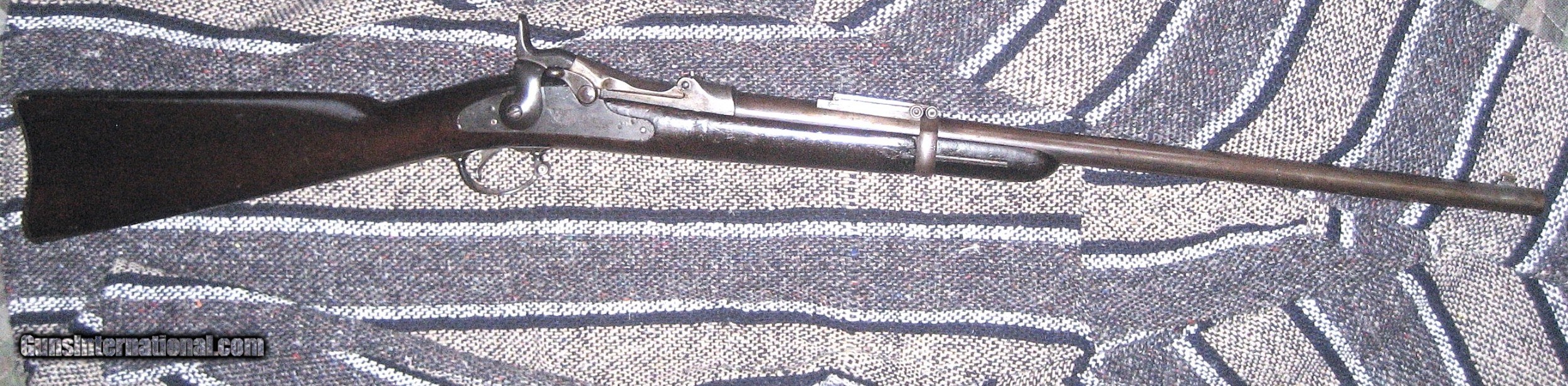 Description: Infamous Indian Wars Era carbine of the type used by then Lt. Colonel George Custer at the Little Bighorn Battle. A tremendous development over percussion rifles, the Model 1873 was the Allin trapdoor design, and was named for it's hinged breechblock, which opened like a trapdoor, allowing cartrige loading. The cavalry carbine used a 22-inch (560 mm) barrel.The Springfield Trapdoor Cartridge Rifle and Carbine was produced for the military in 1873. It was a redesign of the Army’s Allin Trapdoor rifle. The Springfield Trapdoor held the new, more powerful .45-70 military cartridge. Full-stocked, 32 inch barreled rifles, as well as half-stocked, short-barreled carbines, were produced. With their new 1873 Trapdoor Carbines, Custer and the 7th Cavalry rode off to the Battle of the Little Big Horn and into the pages of history. The armament of Custer’s regiment is fairly uniform, the enlisted men being armed largely with the single shot Model 1873 Springfield Carbine, an accurate long range arm intended to keep an enemy at a distance. The Springfield Model 1873 was the first standard-issue breech-loading rifle and carbine adopted by the United States Army. The gun, in both full-length and carbine versions, was widely used in battles. Many were captured by native americans and used. This particular carbine was made in 1889 according to Springfield records. Bore is shiny through out with good riflings. Stock is good and refinished with some scratches and a few dings and has a non structura crack behind the tang however. A few freckles on the barrel exterior. Antique, ships directly to purchasers address. Zelle, cashiers check, money order, personal check or layaway. SOLD Curio/Relic: Yes Antique: Yes Rifle Caliber: .45-70 Government Manufacturer: Springfield Model: 1873 Serial Number: 425136 Barrel Length: 22 Condition: Good Metal Condition: VERY GOOD Wood Condition: Good Bore Condition: very Good Manufacture Date: 1889 |