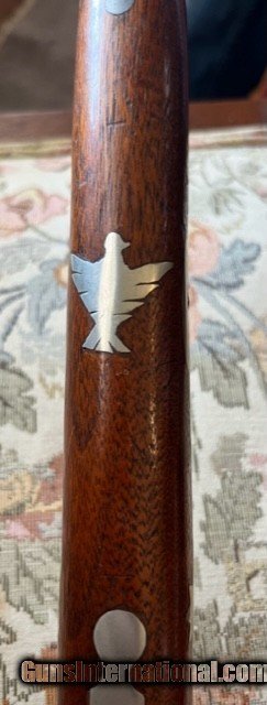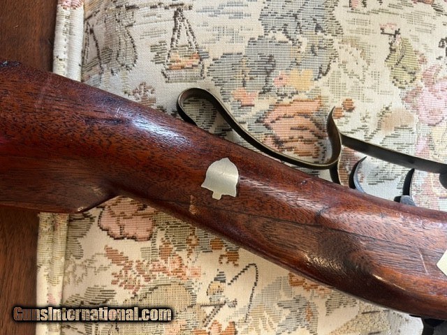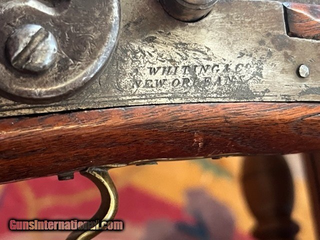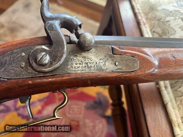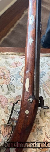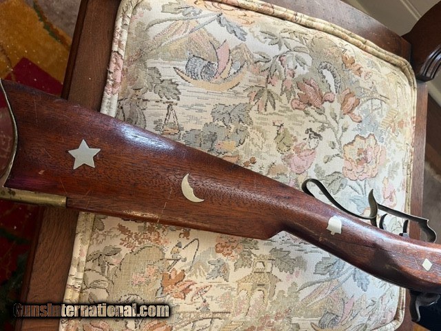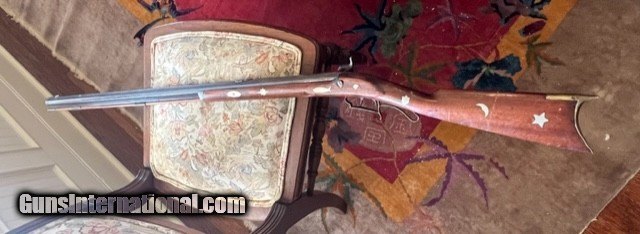 Description: Texas 40 caliber Muzzleloader marked "Erichson, Houston" Lock marked " New Orleans " ; Barrel Length is 33 inches; Gun has numerous German, silver inlays; brass patch box; double set trigger; bore will clean very good; mechanically very good; has had wood repair around top tang; Has poured pewter nose cap; Erichson mark with 2 stars *faint*; some one has slightly overcleaned at some point to make mark show up better. 1500 plus UPS ground (US only, no sales to California) No exchanges/refunds, but gun is guaranteed as pictured and described. SOLD Antique: Yes |