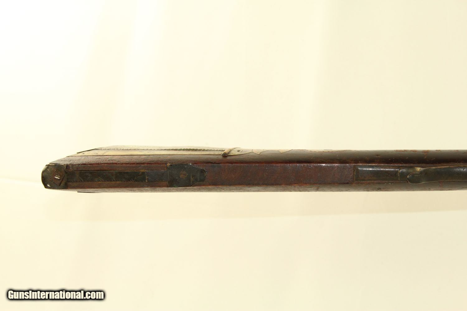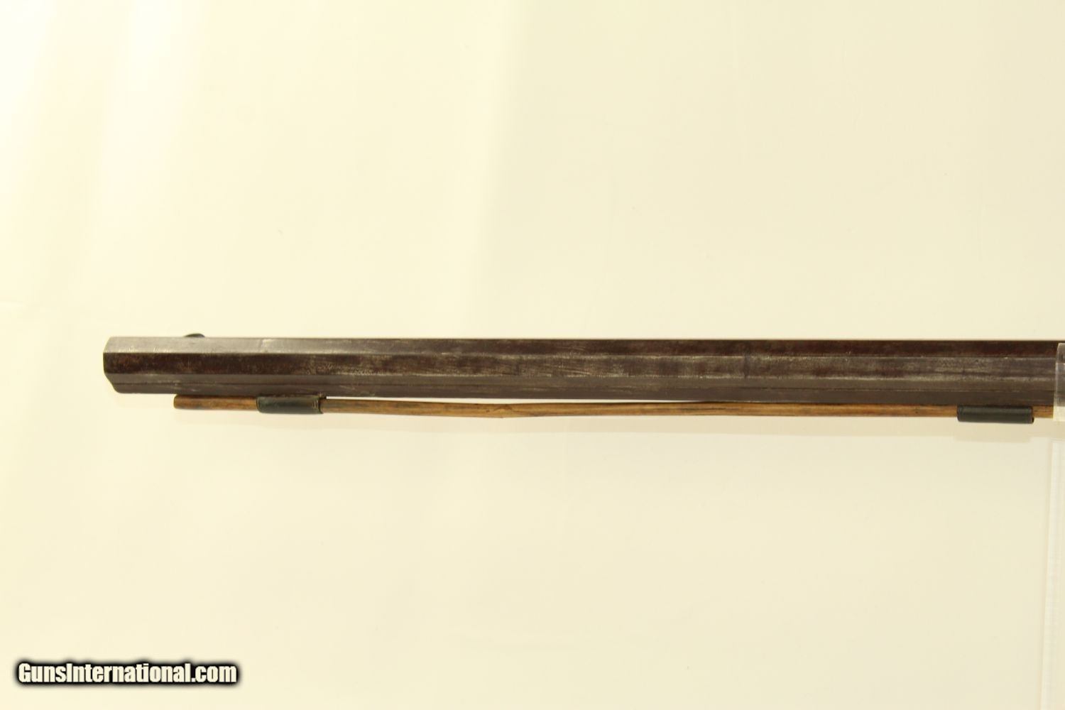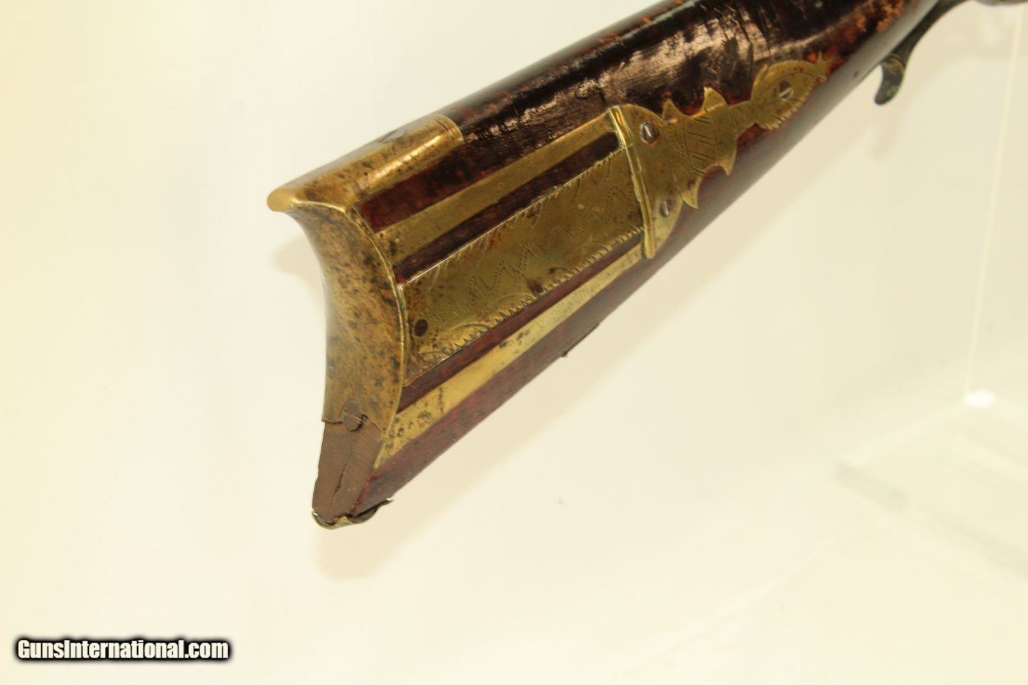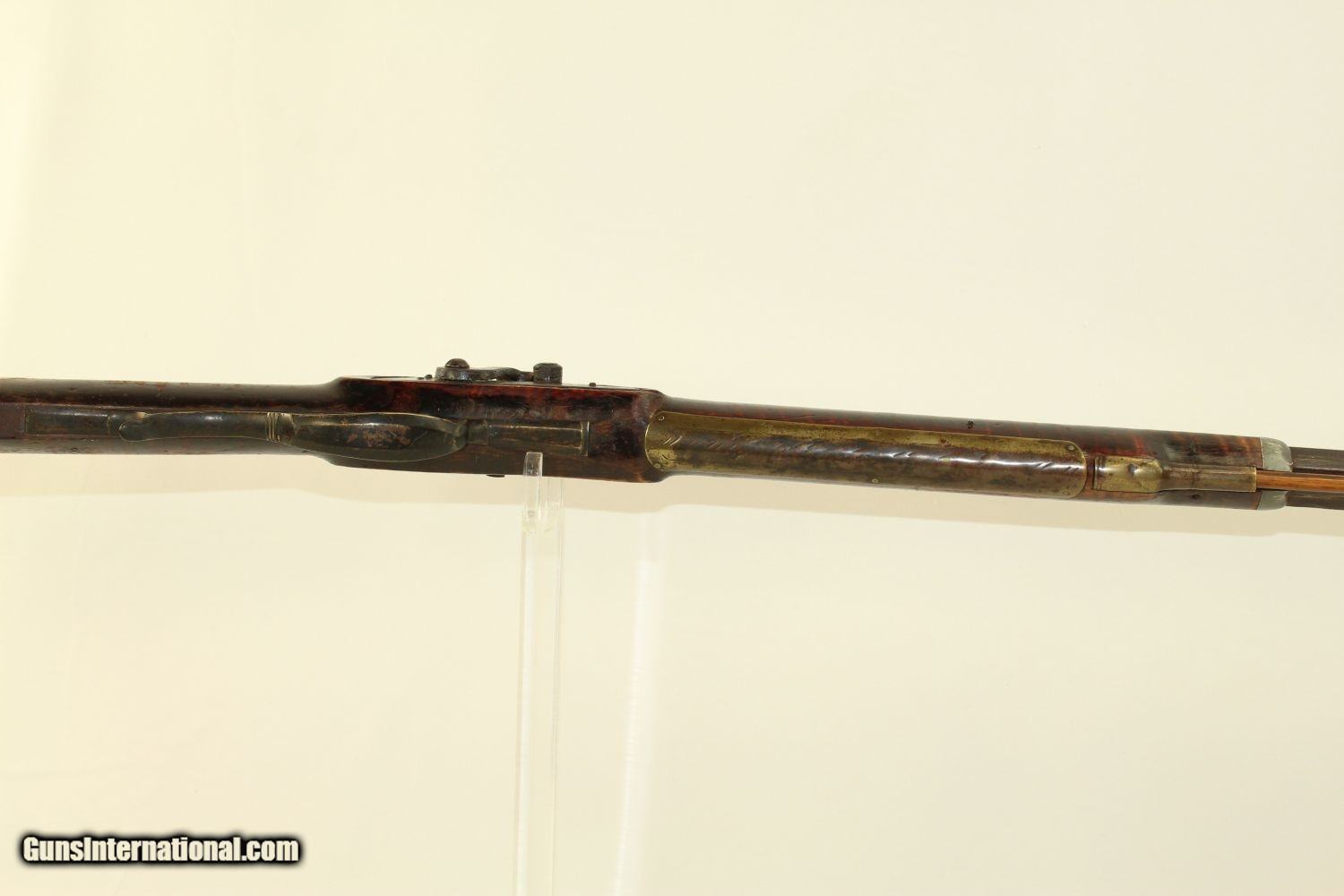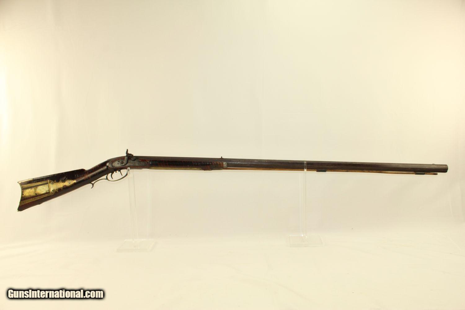 Description: TYRON Half Stock .40 Caliber American LONG RIFLE ELK COUNTY, Pa. Style Manufactured by “TYRON of Philadelphia” Here we present an antique Half-Stock Back Action Long Rifle, made circa the 1850s by Edward Tyron of Philadelphia, PA. The Tyron family business started in the early 1700s with a merchant from Holland bringing arms and Indian trade goods for sale into this "New Country" and continued for over 150 years. The business prospered as a gun and gun parts dealer in the early 1800s and evolved into a leading wholesale house and hardware store in the early twentieth century. The Tryon story is important to collectors because it was in the center of the gun trade in our new country and, more specifically, in the Philadelphia area. The picture of Tryon as a gun maker is often clouded by Tryon's hardware store image of the late 1800s and the 1900s. The sale of imported and brand-name arms during this later period led many to consider Tryon merely another early Sears and Roebuck or Montgomery Ward with arms as a side line, when he was actually one of the leading gunmakers of high quality guns in the mid-1800s. This rifle features a J. Goulcher marked lock. The top of the barrel is marked “TRYON” and “PHILADA”. It bears a fancy patch box set into the right side of the stock. The maple stock has very nice grain. The overall condition is very good. The iron parts are dark with age. The markings are legible. The stock is in good shape. The butt plate stops short of the toe and there is a somewhat crude strap that has been mounted to the bottom of the stock there. The bore is dark and dusty with deep rifling. The action remains excellent. Here is a good-looking gun that would have been a game-getter for the table and a measure of protection for the homestead in mid-19th Century America. Own the original! This is a legitimate antique and not a reproduction. Barrel is 41 inches. Caliber: .36 Percussion Overall condition as seen in photos. Very Fast. Very Safe. FREE SHIPPING WORLDWIDE. Delivered directly to your door by express mail! Guaranteed AUTHENTIC & Includes CERTIFICATE OF AUTHENTICITY. ancestryguns $1350 #190340 SOLD Antique: Yes |