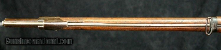 Description: .52 cal, NVSN, 32 5/8 inch barrel, metal parts browned, breech block case colored, walnut stock, iron ramrod, block marked "J H Hall/ H Ferry/US/1832" Condition: very good bore, iron parts 90% even brown, block colors silvered, excellent wood, excellent mechanically, excellent marks. SOLD Antique: Yes |