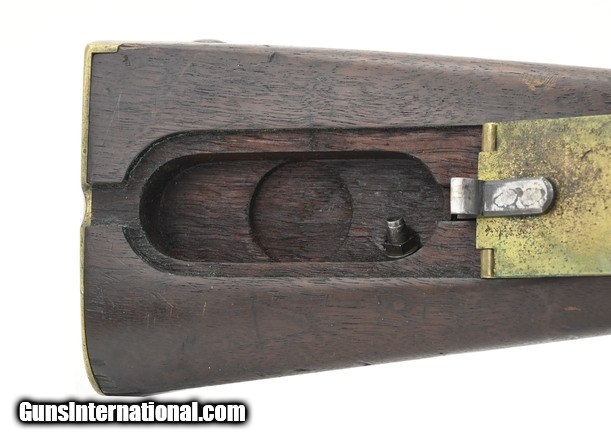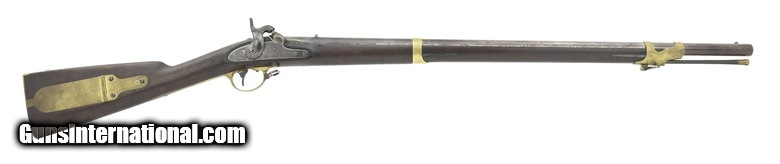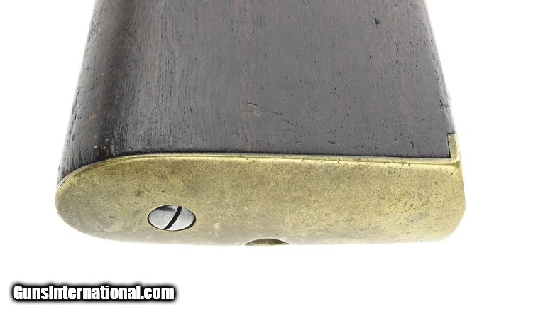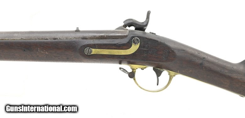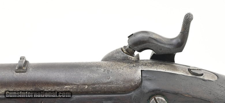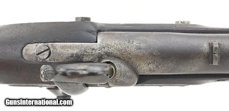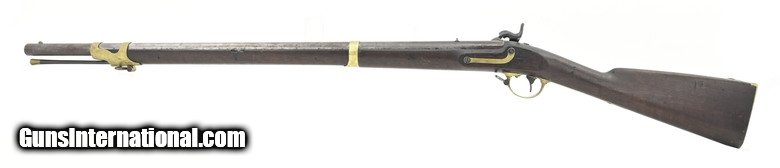 Description: U.S. Model 1841 percussion “Mississippi” Rifle. By George W. Tryon of Philadelphia. The Mississippi rifle got its name due to its use during the Mexican-American War by a Mississippi regiment commanded by Jefferson Davis. The overall length is approximately 48½”. The 33” round .54 caliber barrel has a fine, bright bore with strong rifling. Barrel has a smooth brown patina, except in the bolster area where there is light pitting, and is marked “US/JH/P” at the breech. It also has small “H” sub inspection stamp on the left flat, side plate, and trigger guard. The lock has a gray patina. It has “Tryon/US” at the center and “Philada/PA/1844” at the tail. The hammer has most of its original blue finish. The bands, trigger guard, patch box, and buttplate show a nicely aged brass patina. The stock is very good with a scattering of issue/use dents and dings and a 1” missing chip on the left at the barrel between the bands. There are two strong cartouches and the spare nipple is in the patchbox. The two swivels and ramrod are present. The action functions correctly. Out of the approximately 91,800 Mississippi rifles, made by five manufactures, Tryon made the fewest, 5000. This is a nice example of a Mexican-American War Mississippi rifle made by the hardest to find manufacturer. It’s good for a Mexican-American War or Civil War collection. SOLD Antique: Yes |