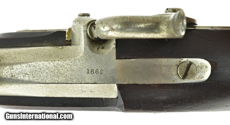 Description: U.S. Model 1861 Contract Musket by William Mason U.S. Model 1861 Contract Musket by William Mason Taunton, Massachusetts. This model has the extremely rare lockplate that is marked “US Taunton”. Lock is dated 1862. Metal is all nickel plated. Barrel is dated 1863. Stock is good, shows minor handling wear. Butt plate has an area of wear, some of the nickel has come off. We don’t know why the gun was nickel plated, but it looks to be of the period. Great Civil War era rare contract musket. SOLD Antique: Yes |