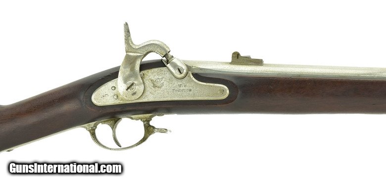 U.S. Model 1861 Contract Musket by William Mason U.S. Model 1861 Contract Musket by William Mason Taunton, Massachusetts. This model has the extremely rare lockplate that is marked “US Taunton”. Lock is dated 1862. Metal is all nickel plated. Barrel is dated 1863. Stock is good, shows minor handling wear. Butt plate has an area of wear, some of the nickel has come off. We don’t know why the gun was nickel plated, but it looks to be of the period. Great Civil War era rare contract musket.