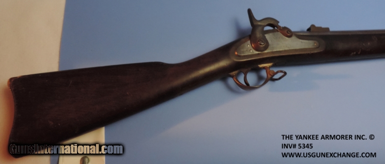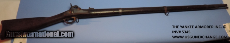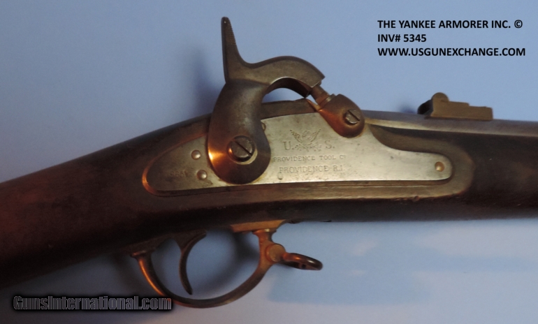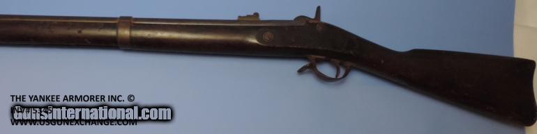 Description: Inv. 5345 U.S. Model 1861 Providence Tool Company, Dated 1865, Caliber .58. Lovely, just lovely, is a certainly apt description. The gun is in the white. A soft patina is just starting to form on the barrel, the "U" stamped barrel bands and the trigger guard. The lock, hammer and nipple are outstanding showing no rust or pits. The lock is marked, Eagle/US, 1865, Providence Tool Co. Providence R.I. The butt plate mostly in the white is stamped U.S. The stock does show some age, handling marks, dings and a chip or two. The left side of the stock has two cartouches in boxes. The first is 3 initials that are illegible and the second, two initials that appear to be S G. The swivels are intact the correct ramrod accompanies the gun. The barrel is marked 1865 on the top, the side is marked V, P, Eagle, below just that, above the stock line there is an M stamp. The musket is just lovely as stated above. $1795 To purchase this firearm or if you want to request more information contact us at: Email ckgunsymail Phone 201-512-0002 Cell 201-575-6838 FAX 201-215-4759 We accept most major credit cards. Prices shown are Discounted 3% for Cash or Check. The buyer must be familiar with all the laws governing the purchase and the ownership of firearms in their own city and state. The Yankee Armorer, Inc is not responsible for any failure to comply with or observe these laws. The Yankee Armorer, Inc will only ship after full payment and receipt of all required documents. Shipping: Add $35.00 for handguns, $45.00 for long guns. New Jersey buyers are subject to a 7% sales tax. The Yankee Armorer, Inc offers a 3 day inspection period with full refund upon return of intact firearm and in the original condition. The Yankee Armorer, Inc offers a no interest lay away program - 25% down; 25% in 30 days; 25% in 60 days; and full payment in 90 days. Any violation of this policy is subject to restocking and forfeiture of all payments. Any variation from this policy must be agreed to in advance. Unshipped Cancelled sales are subject to a 20% restocking fee. Be advised that all firearms sold by The Yankee Armorer, Inc. or the Gun Exchange, LLC (SELLER) are sold as collector’s items. They have not been fired or tested for safety and must be examined by a license gunsmith prior to use. By purchasing any item from the (SELLER), you are agreeing to hold the (SELLER) free from any damages or lawsuits of any nature. Any item left for transfer or storage will be charged to $25.00 per month, per item from the day of its receipt. Any variation from this policy must be agreed to in advance. Store hours 10:00 am to 5:00 pm Tuesday -Saturday. It's always best to call for appointment. Store 201-512-0002, cell 201-575-6838. SOLD Antique: Yes |