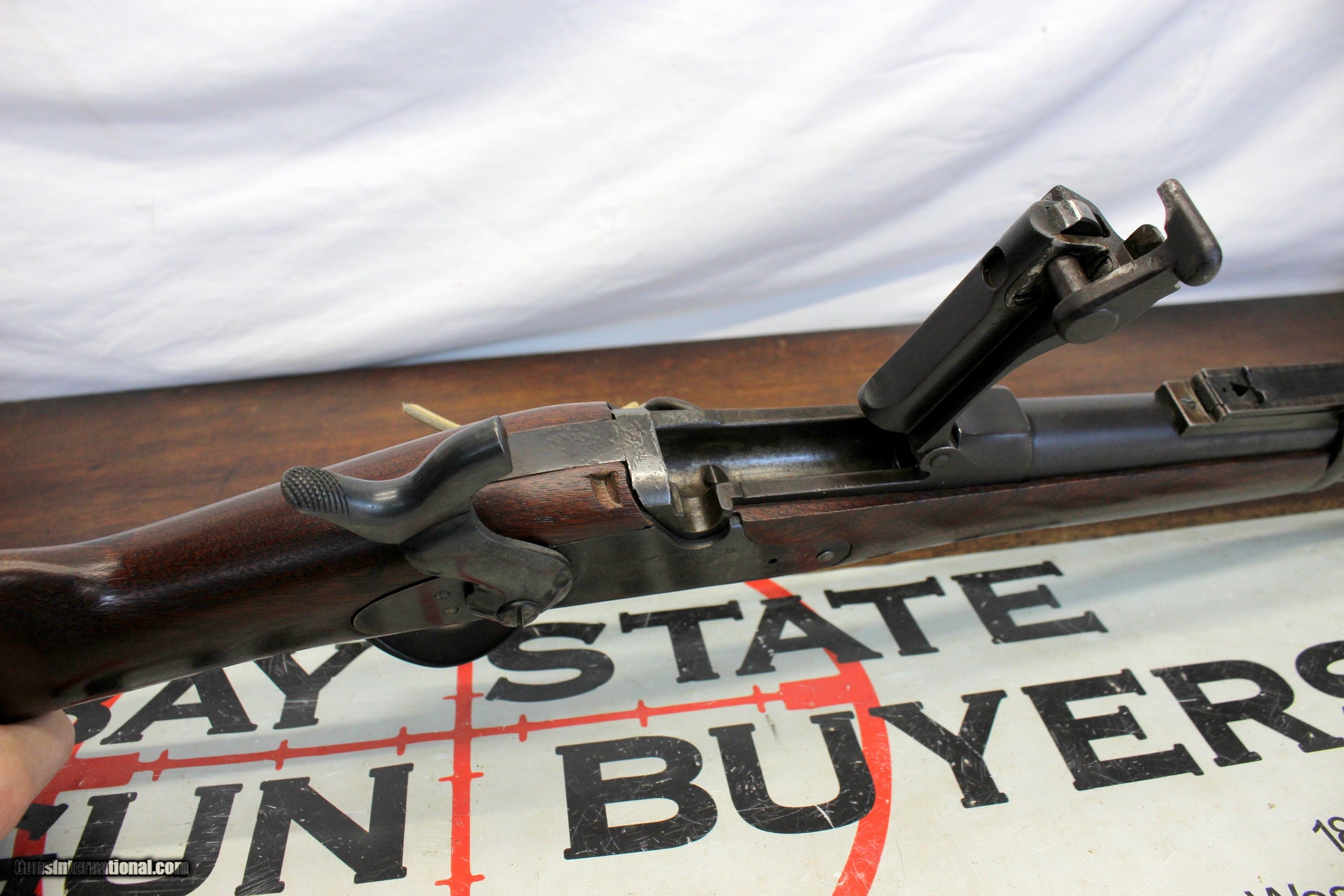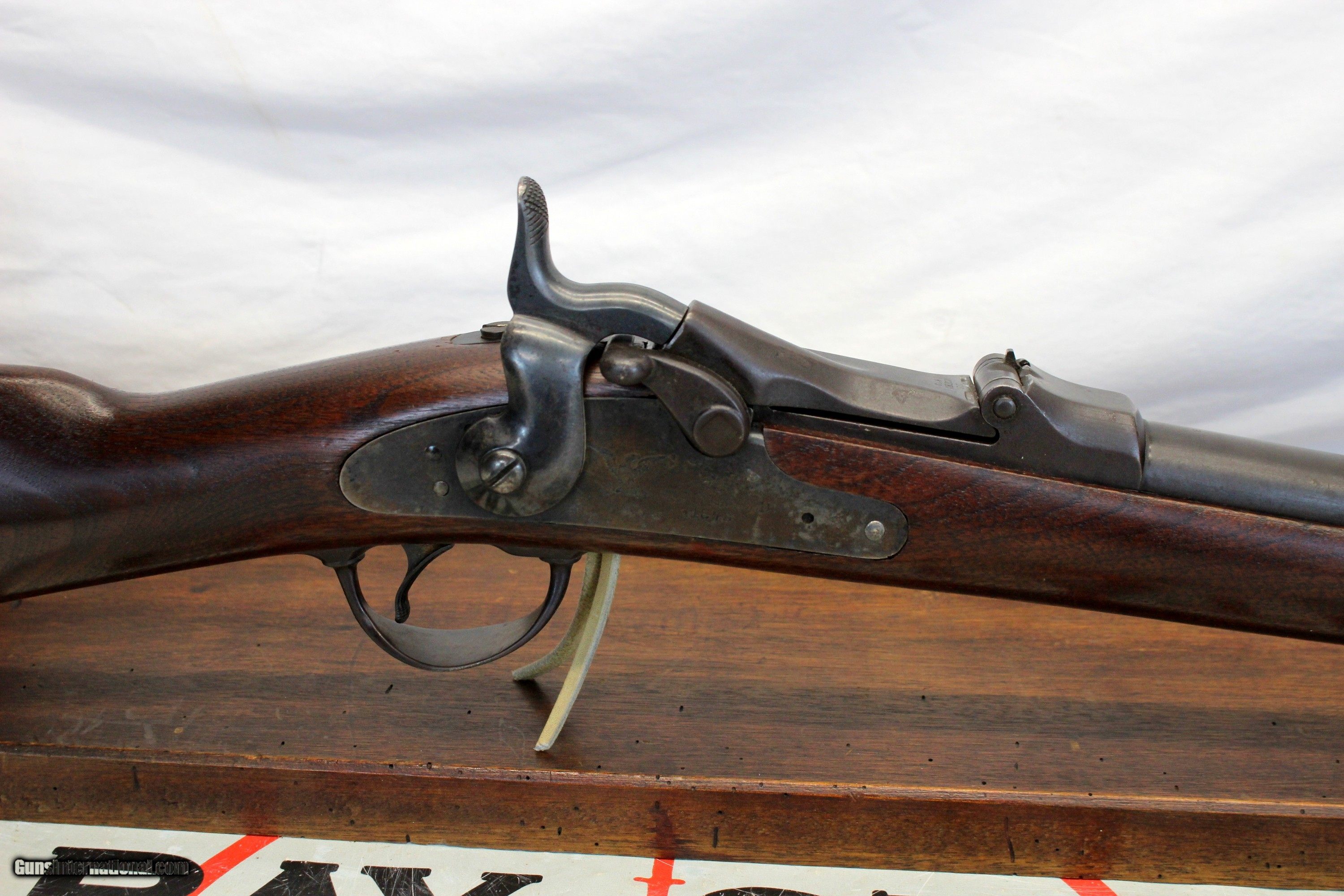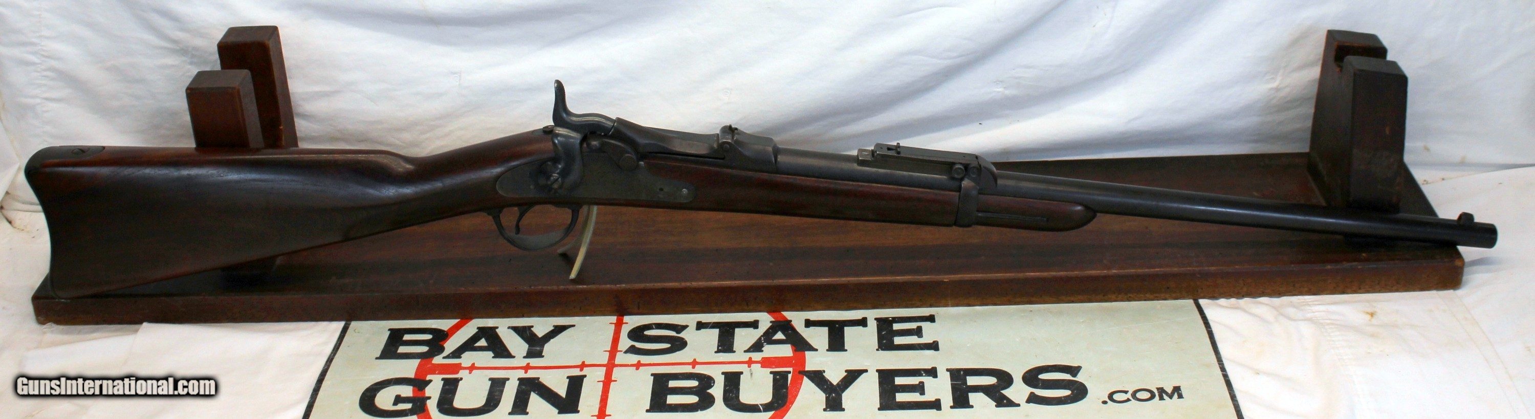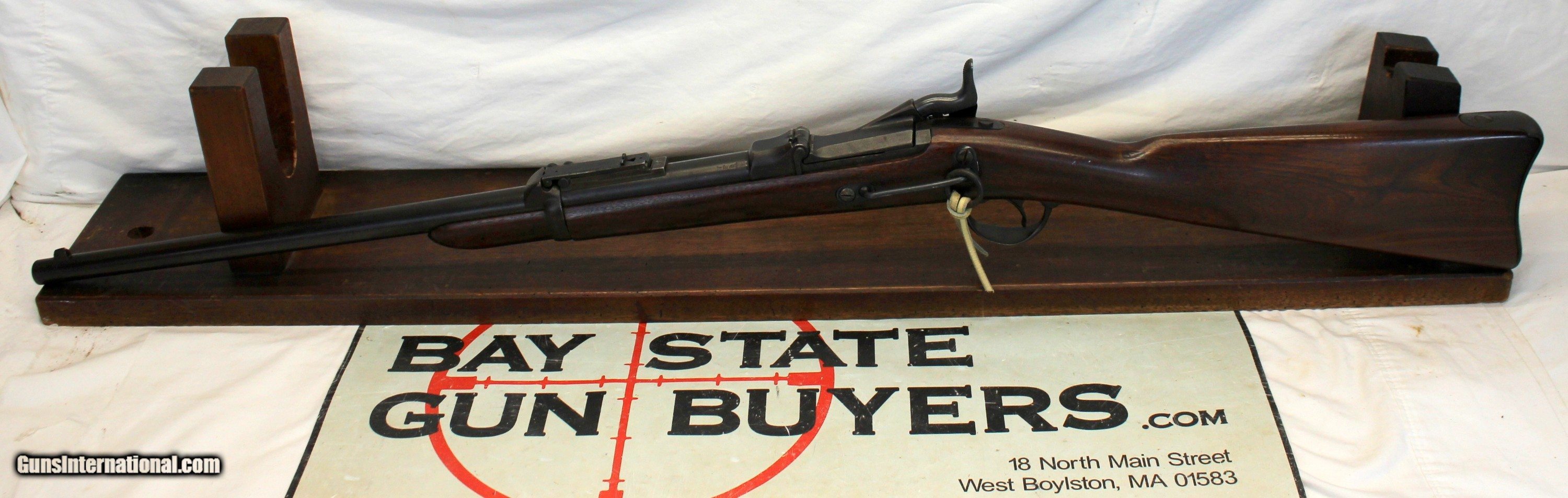 Description: We are offering for sale an antique US SPRINGFIELD Model 1873 Trapdoor CARBINE rifle chambered in .45/70 Govt. caliber. This is a SCARCE example which has been re-stocked at some point. This rifle has been fitted with the scarce BUFFINGTON rear sight. 22" factory barrel is very good with brown finish show scattered surface wear, freckling. The bore remains clean with crisp rifling intact. SCARCE FULLY FUNCTIONING BUFFINGTON REAR SIGHT. Both Trapdoor and Sideplate are dated 1873. Surface wear present, dings present. Gun functions properly with hammer and trigger working flawlessly. As aforementioned this rifle has been professionally restocked and retains the original buttplate showing surface wear. USPS GROUND FOR $34.95 **** PLEASE NOTE: WE ONLY ACCEPT MASTERCARD AND VISA AS PAYMENT OPTIONS (please note we charge a non-negotiable 3% CC fee) **** **** WE TAKE CREDIT CARD PAYMENT OVER THE PHONE. WE DO NOT TAKE PAYMENT THROUGH THIS **** PLEASE LOOK AT ALL PHOTOGRAPHS FOR CONDITION Please know the legality of any weapon in your state before . If a gun can’t be transferred to you we will charge a 15% re-stocking fee. We are in the shop WEDNESDAY, THURSDAY, FRIDAY and SATURDAY 8am-3pm EST. We will be in touch within 24 hours of your purchase. Please be ready to provide CC information. Please have your FFL email a copy of their license to: . No Face To Face Transfers! Please note: Clicking "buy" does not guarantee that this gun is yours, However clicking “Buy” will reserve this gun for you, if it hasn’t been sold in store. We will try to do our best to remove the posts as efficiently as possible, but sometimes delays may ensue. “Buy” is your safest bet to reserve a gun. Also please add 6.25% MA state sales tax (if from MA) and 3% credit card shop courtesy fee for all out of state buyers Before calling with concerns read these conditions and meet them accordingly. SOLD Antique: Yes |