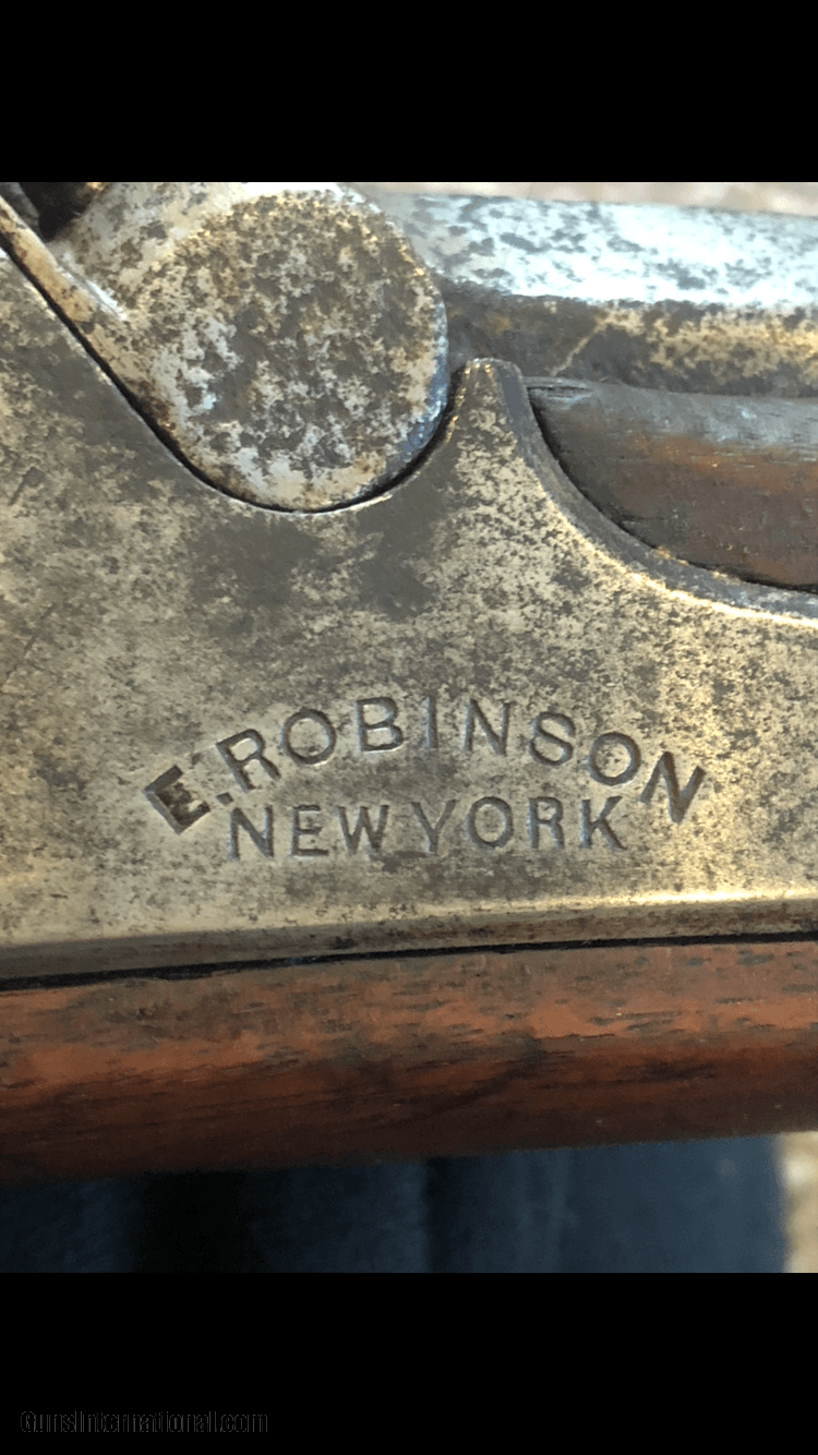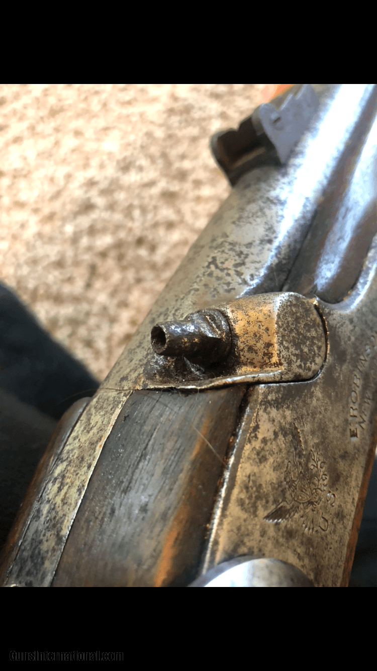 Description: Here I present a really nice contracted .58 caliber percussion rifled musket. The 1861/63 US Springfield was the warhorse of the US Civil War. This example has everything correct and original. Lock dated 1864 and marked "E. Robinson NEW YORK" next to a clear and deep eagle. Barrel has proper "VP over eagle". Stock has remenents of proper 3 inital cartouche. Clamps have "u". Buttplate has "US". Period correct ramrod. Mechancially fine with strong springs. Condition of this untouched original stock has expected dings and dents, but no signs of damage/repair. Metal has pitting around breech area, cleans up very nicely down the barrel. Own an all original, this ls NOT a reproduction. This ls an all original 100% correct Civil War Springfield FREE SHIPPING to lower 48 states. l accept Checks, Money Orders, PayPal (2.9% Fee) If you have any questions, I am very responsive. Thanks for looking and have a blessed day. SOLD Antique: Yes |