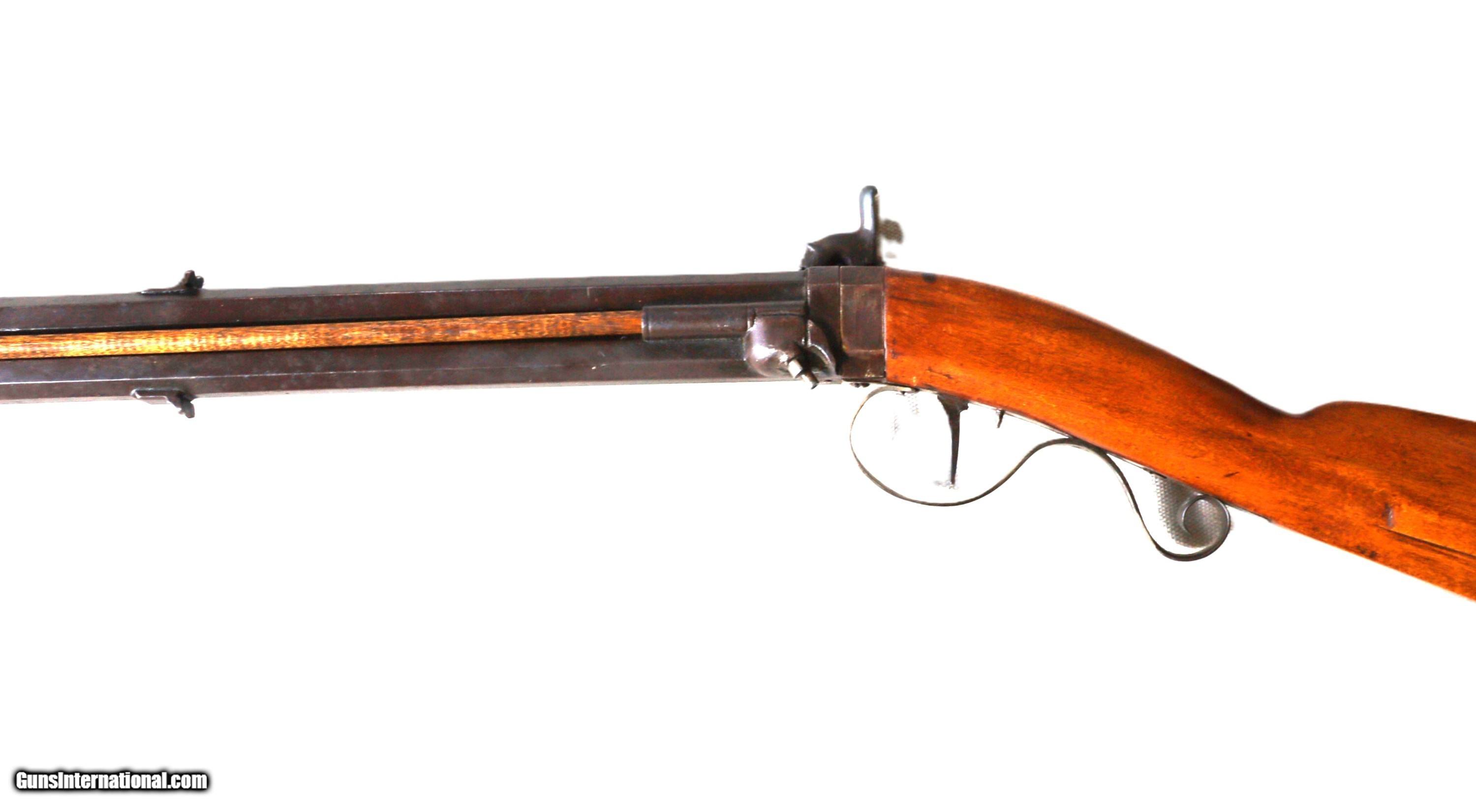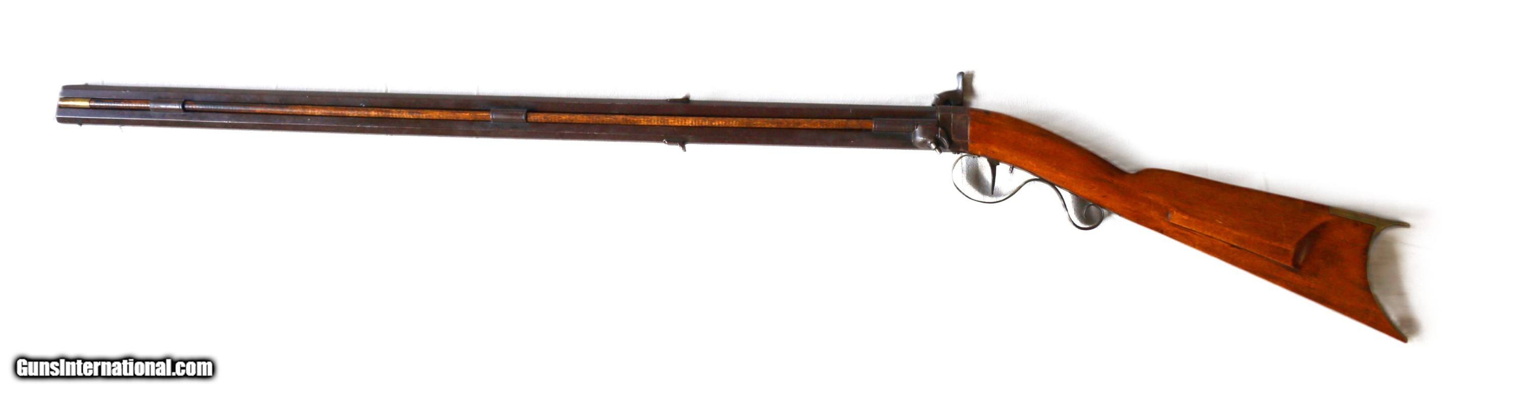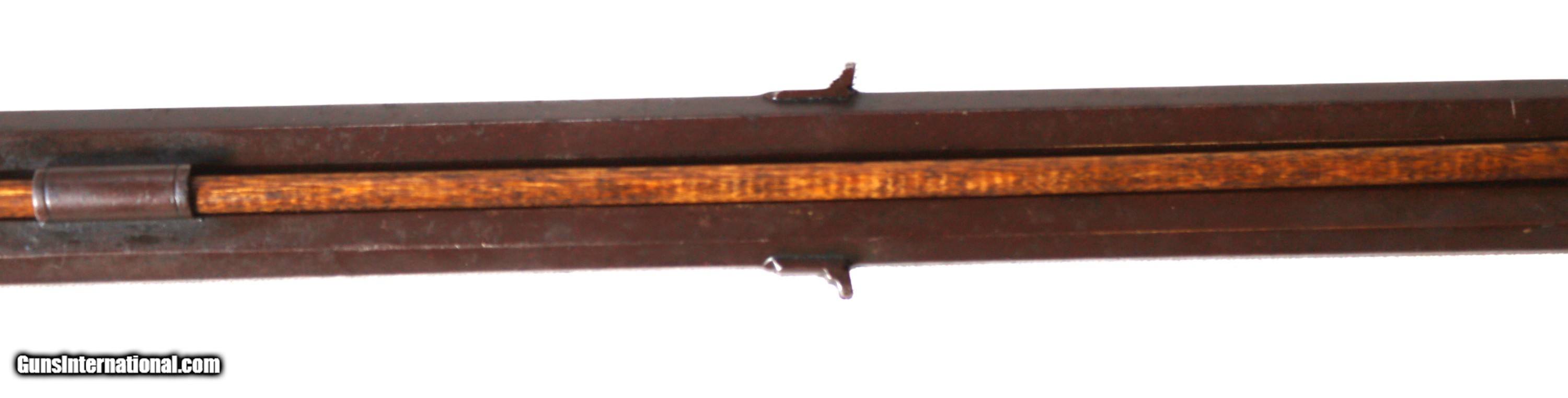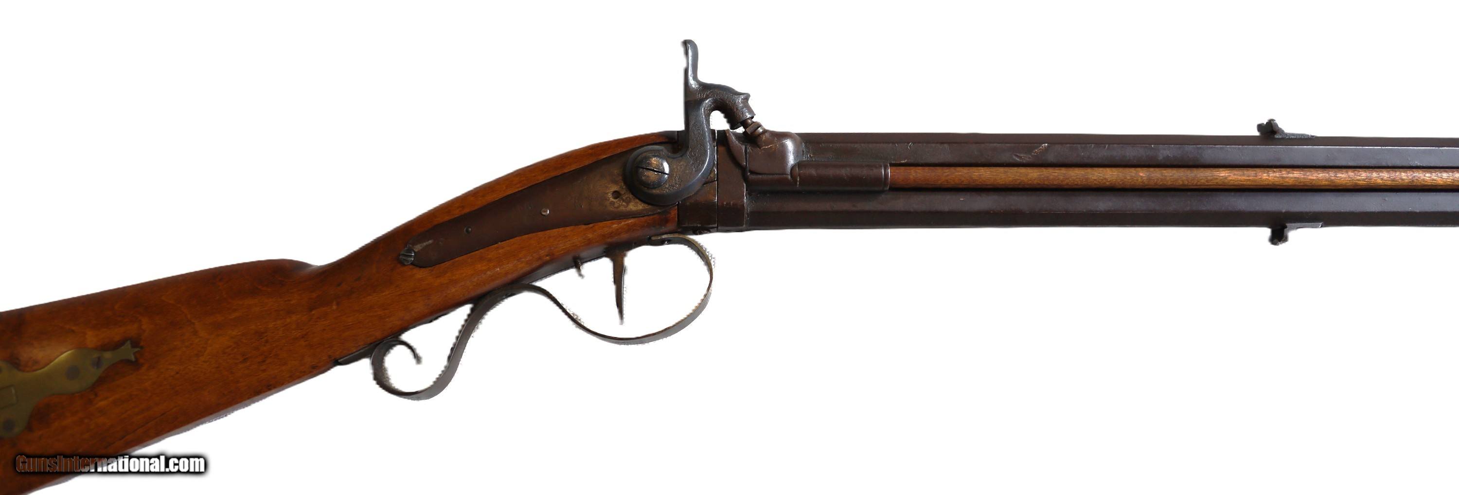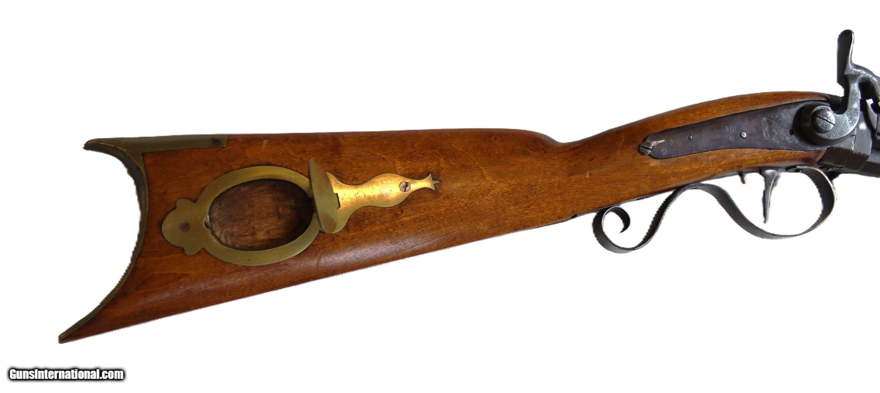 Description: This antique rifle with rotating barrels is a unique rifle. I have found little information on W.M. Gilmore but he was creative in his rifke/ The ram rods for each barrel appear to be original/ The wood might be too good for the age or it has been nicley restored. Antique: Yes Rifle Caliber: .40 Manufacturer: W M Gilmore Model: Rotating Barrel Serial Number: NA Barrel Length: 32 Condition: Excellent for the age of gun Metal Condition: Blue Grey Patina Wood Condition: Very Good Bore Condition: Good Minimum Wall Thickness Left: 1/4 inch Price: $950.00 Shipping: $75.00 Contact Seller |