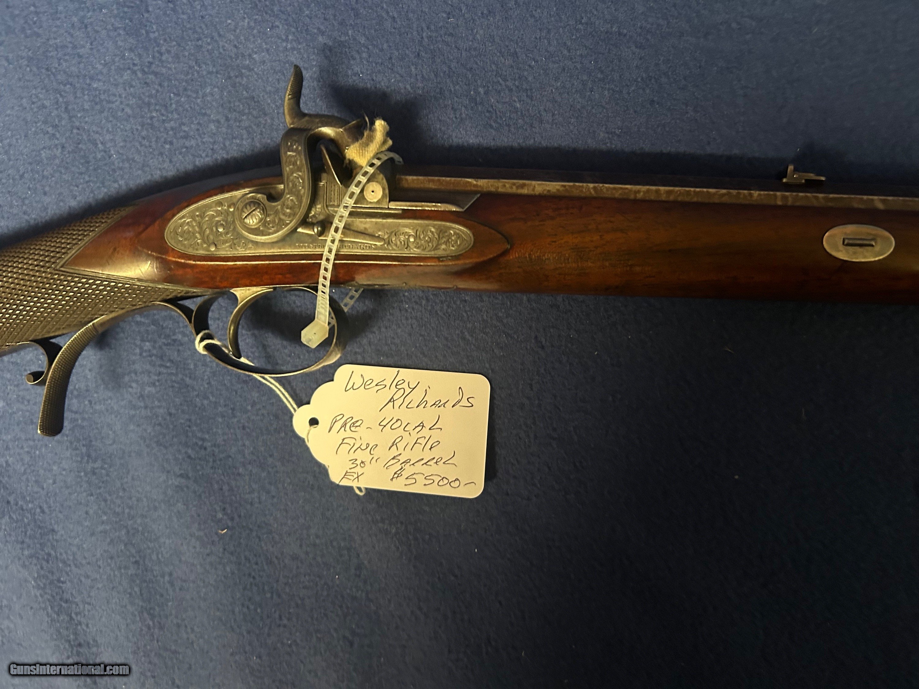 Description: Westley Richards 40 cal 30 inch barrel Super fine gun very nice original gun 3 leaf sight gun weighs 5 pounds beautiful little rifle Trades Considered 3 day inspection Free Shipping - Insurance optional Certified Checks or Money Order Ohio residents add 7.25% tax No California sales FFL required SOLD |