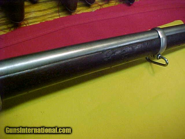Description: #1534 Remington Model 1867 No.1 military rifled musket, 43Spanish caliber, very fine bright bore with strong rifling (about an 8-9 on a scale of 10), VG action and very good markings. Very good smooth grey metal and very good wood, correct cleaning rod and correct sights. Overall just a very good plus rifle that most likely was sold domestically here in the U.S. for an inexpensive hunting rifle. The 43Spanish and 43Egyptian calibers were both very close in their ballistics and appearance to the VERY popular 44/77 Sharps BottleNeck …and are still a potent cartridge for a lot of big game. VG-VG+ $595 SOLD Curio/Relic: Yes Antique: Yes |