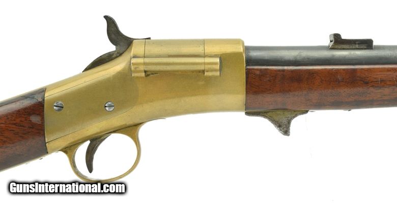 Description: "Extremely Rare Warner Sporting Rifle. Only one of these we have seen, or even heard about for that matter. This gun is in very fine original condition with 75%-80% of the original blue remaining on the barrel. The frame is excellent and has nice clear markings. The wood is deluxe walnut in excellent condition and has lots of figure to the wood. The bore is very good. These sporting rifles are mentioned in the book, but says they are rare and that they do not know how many were made. Very fine, rare gun! SOLD |