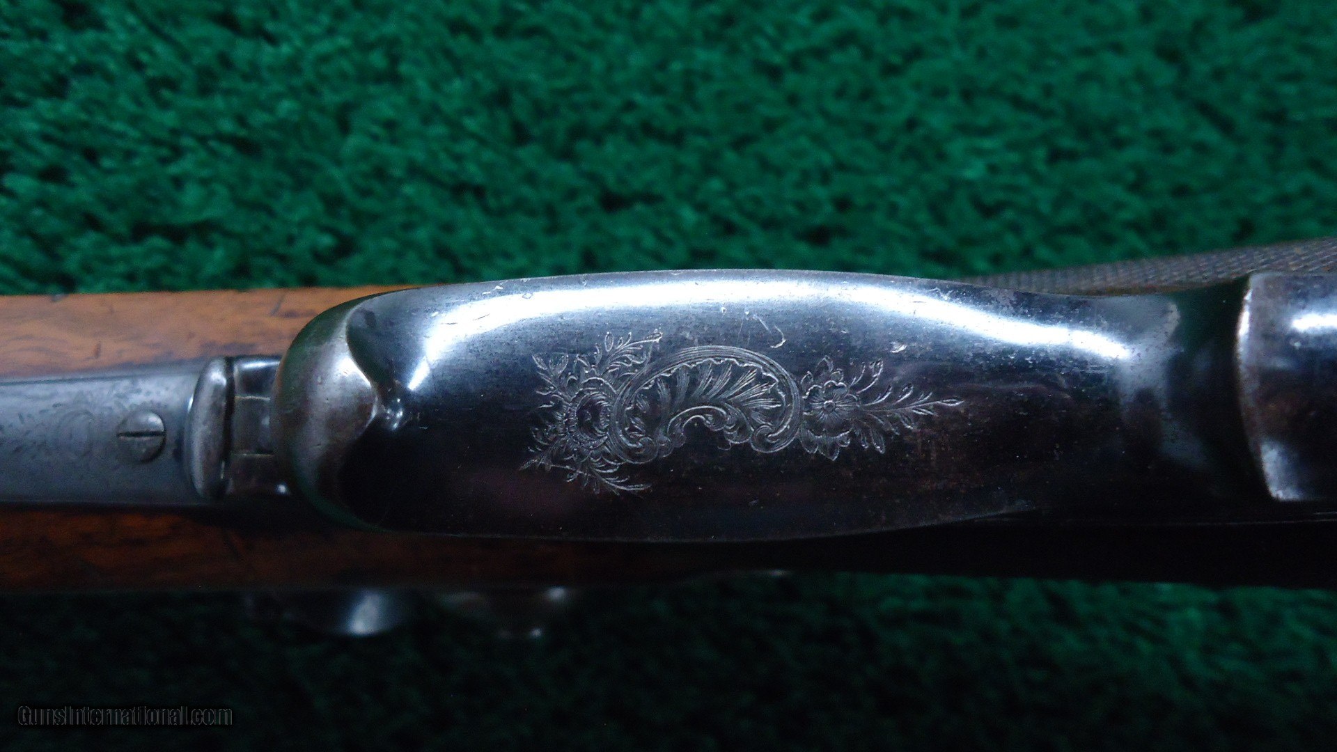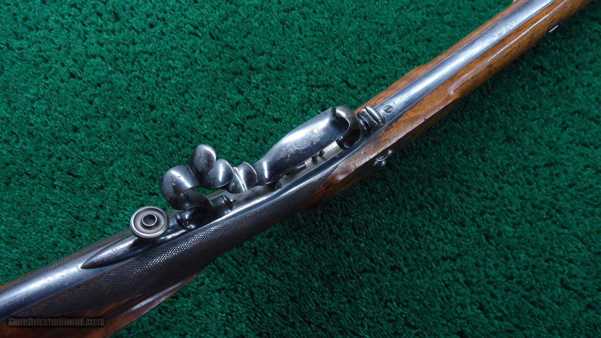 Description: Gun features a full length stock in excellent condition with sharp checkering and most finish remaining. Steel buttplate. Gun has an elaborate trigger guard. Double set trigger works good. Original front sight has a hooded shroud. Rear sight is delicately done. Tang peep sight is fully adjustable. All making for an excellent sighting pattern. Excellent bore. 44 caliber. About 25 inches in length. Barrel has a flat rib and lock plate has some nice engraving. Barrel retains about 95% bright blue. Gold inlaid LG on top of the rib. Brass handled bullet starter. This is just a great old gun in good shape. Leroy Merz Antique Firearms specializes in antique and vintage Winchesters and other fine American firearms. Since 1965 Mr. Merz has taken part in the world of firearms and has been a contributor to many well known reference books. We have hundreds of additional guns in every price range at our home online. Search for Merz Antiques in google. SOLD Antique: Yes |