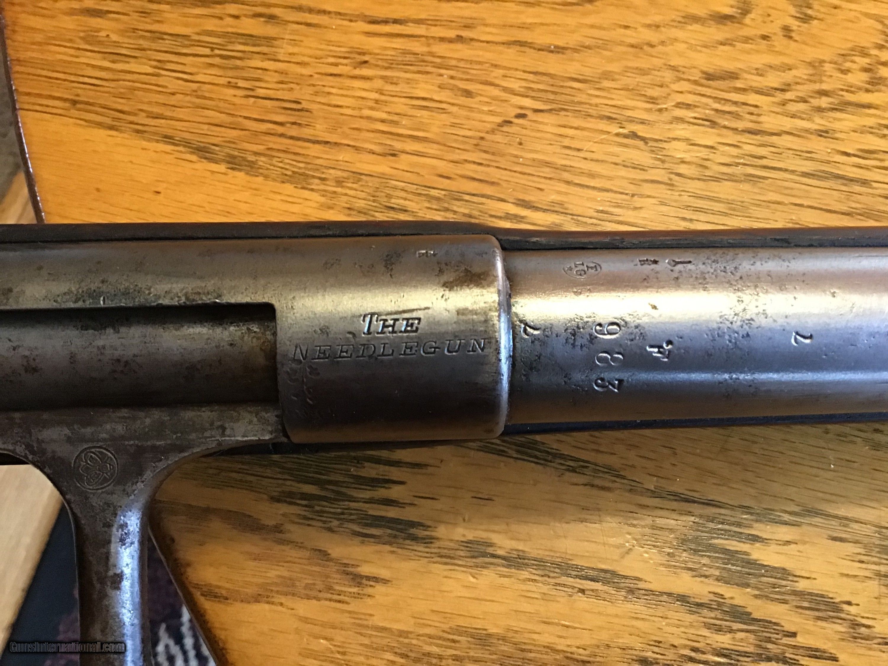 Description: I'm shooting from the hip on this one. This appears to be a Antique Belgian (Liege proof) early bolt action shotgun approximately 12 gauge. The breach is marked "The Needle gun". The smooth bore barrel is 36 inches long. The stock, but plate and trigger gaurd appear to be from a early Belgian (or Austrian). I know other needle guns were from the late 1860's to early 1870 time period. It appears slightly larger than 70 caliber. There are other numbers letters and proof marks near the breach. Please feel free to contact me with any questions. Shipping will be actual cost by insured Priority mail with tracking. SOLD Antique: Yes |