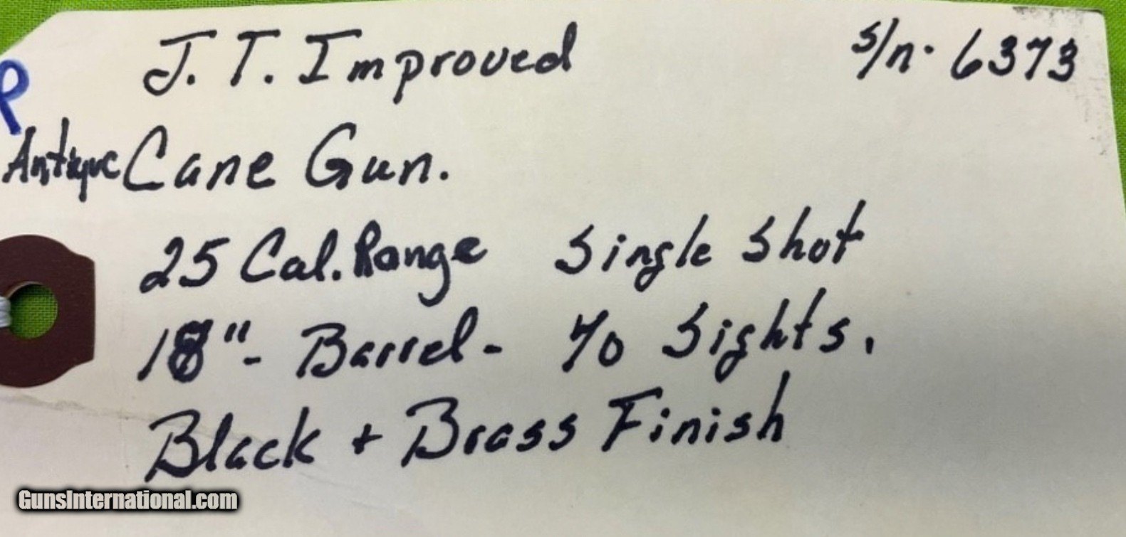 Manufacturer: JT Model: Cane Gun Condition: Needs Repair. Metal Condition: Good Wood Condition: N/A Bore Condition: Fair Price: $1,495.00 Shipping: $50.00 Contact Seller |