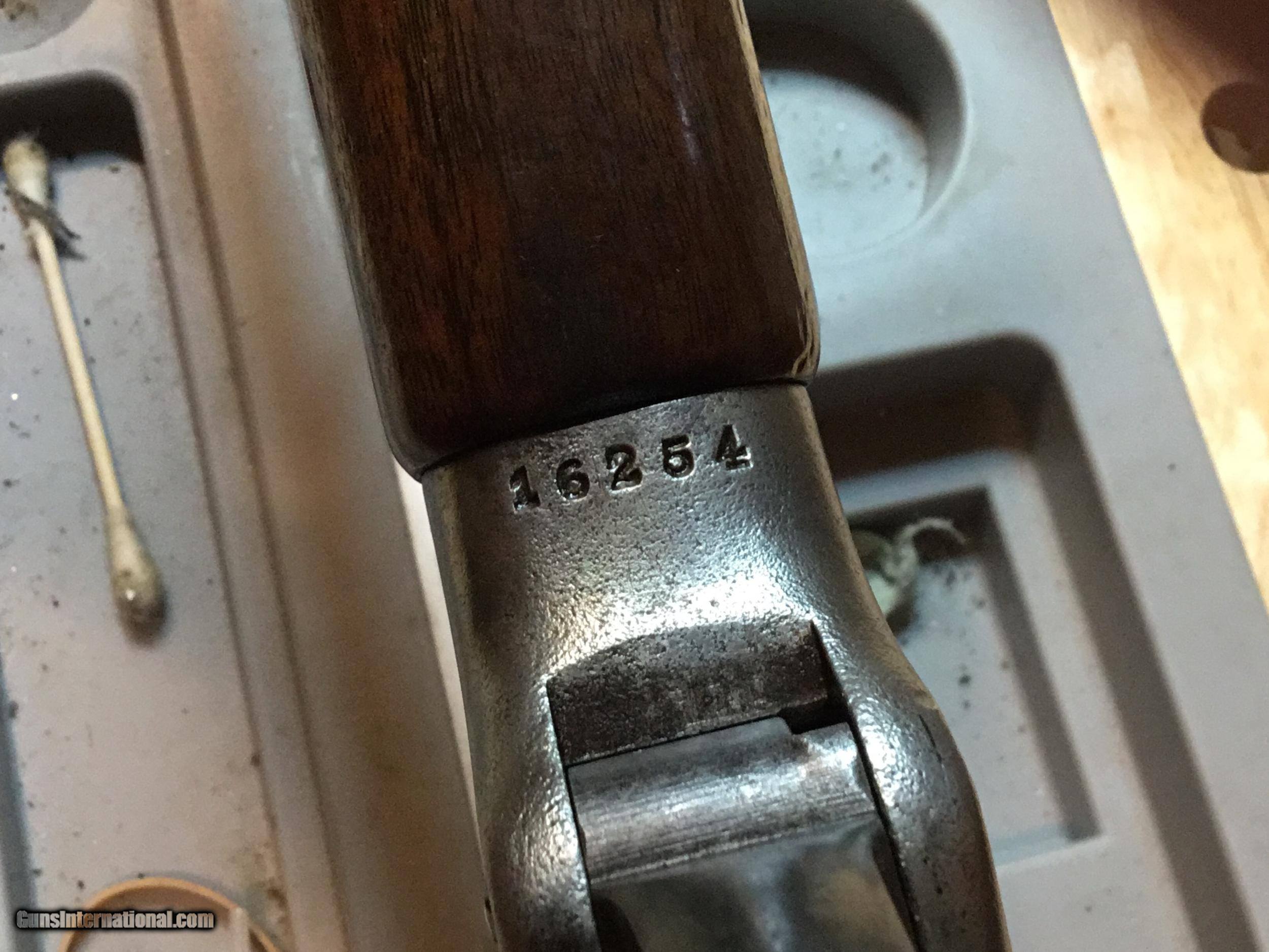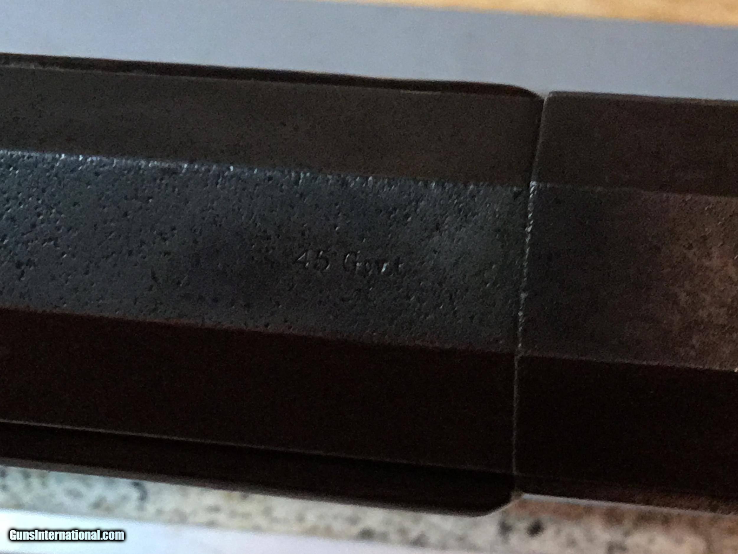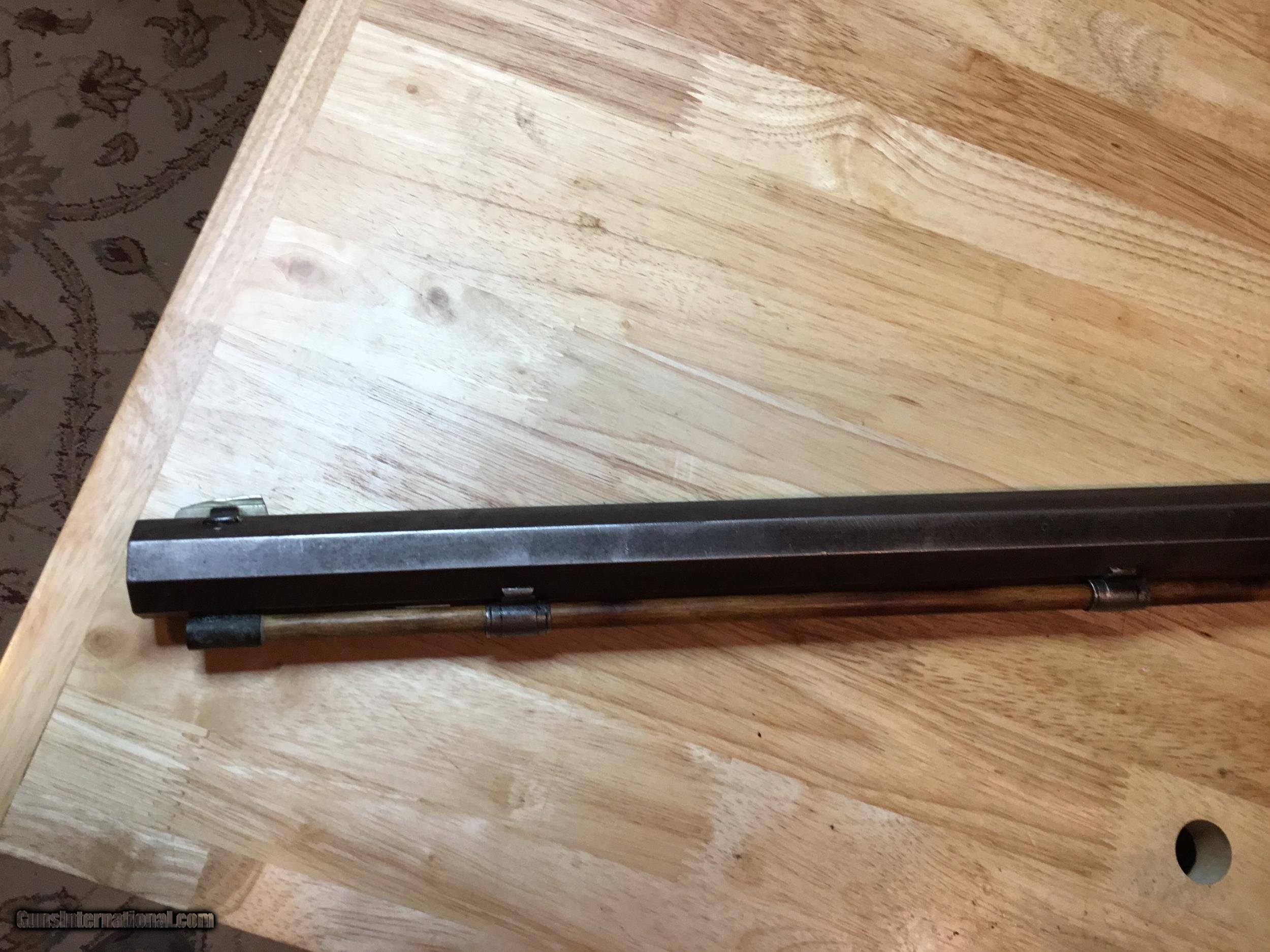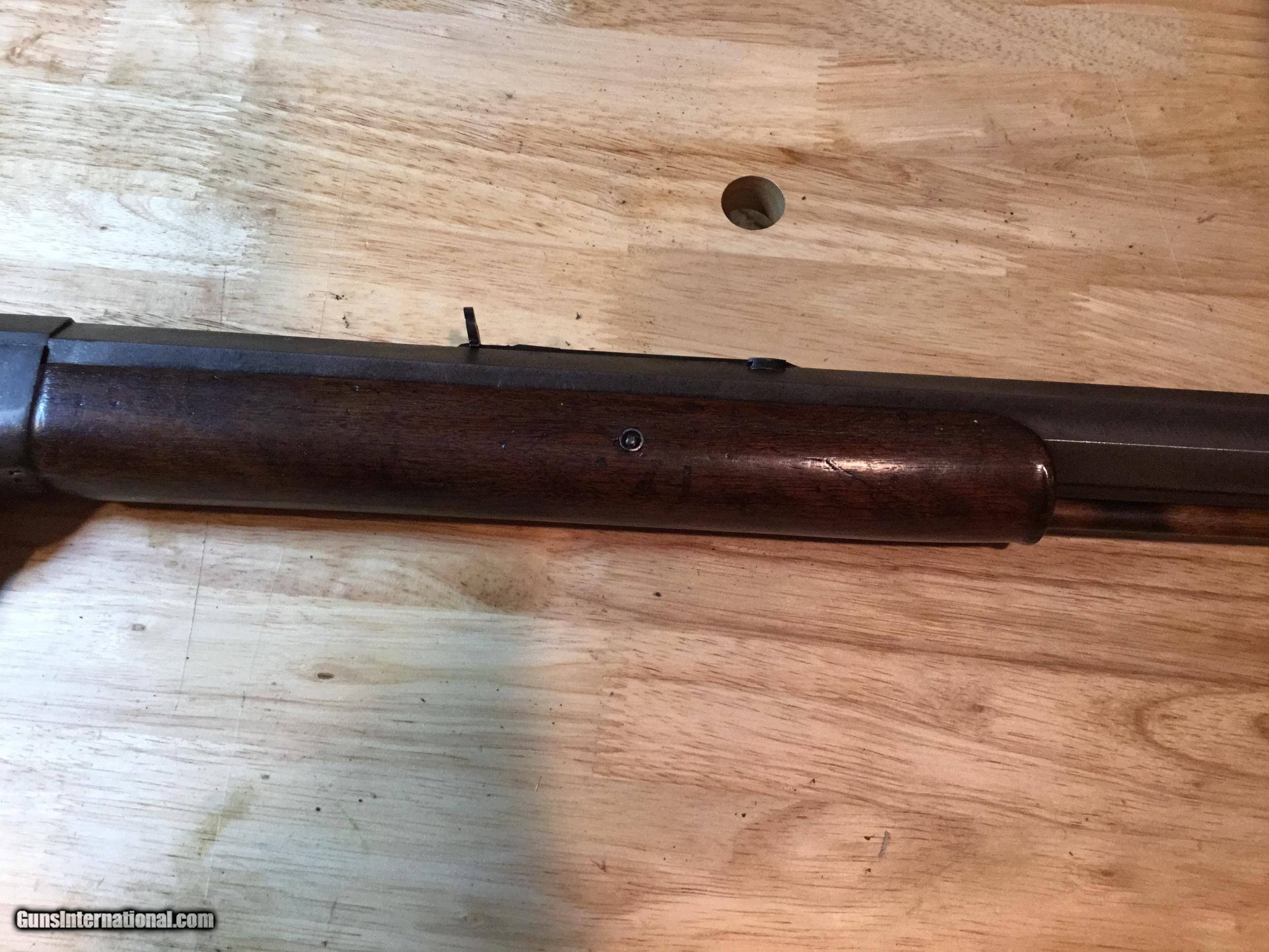 Description: A Ballard #5 in .45 Govt. 30 inch octagonal barrel. Measures 1.04 inches at the muzzle and 1.15 inches at the breech. The lever closes with a crisp "snap" and the triggers work as expected of a Marlin Ballard. They are great. The wood is good showing some signs of 130+ years of use. The forearm has been professionally strengthened with pins. The metal surely was blued at one time, but I can find no proof of that. The cleaning rod is a replacement as is the rear sight. Probably so with the front also, but both sights look good. The bore attests to its use in the black powder era. It's rough. Some years ago I tried it in an informal BPCR match. It wasn't competitive, however it showed good enough that it has taken two buffalo and a caribou during my ownership. REDUCED. SOLD SOLD Antique: Yes Rifle Caliber: .45-70 Government Manufacturer: Marlin Model: Pacific Barrel Length: 30 Condition: Good Metal Condition: Good Wood Condition: Good Bore Condition: Rough |