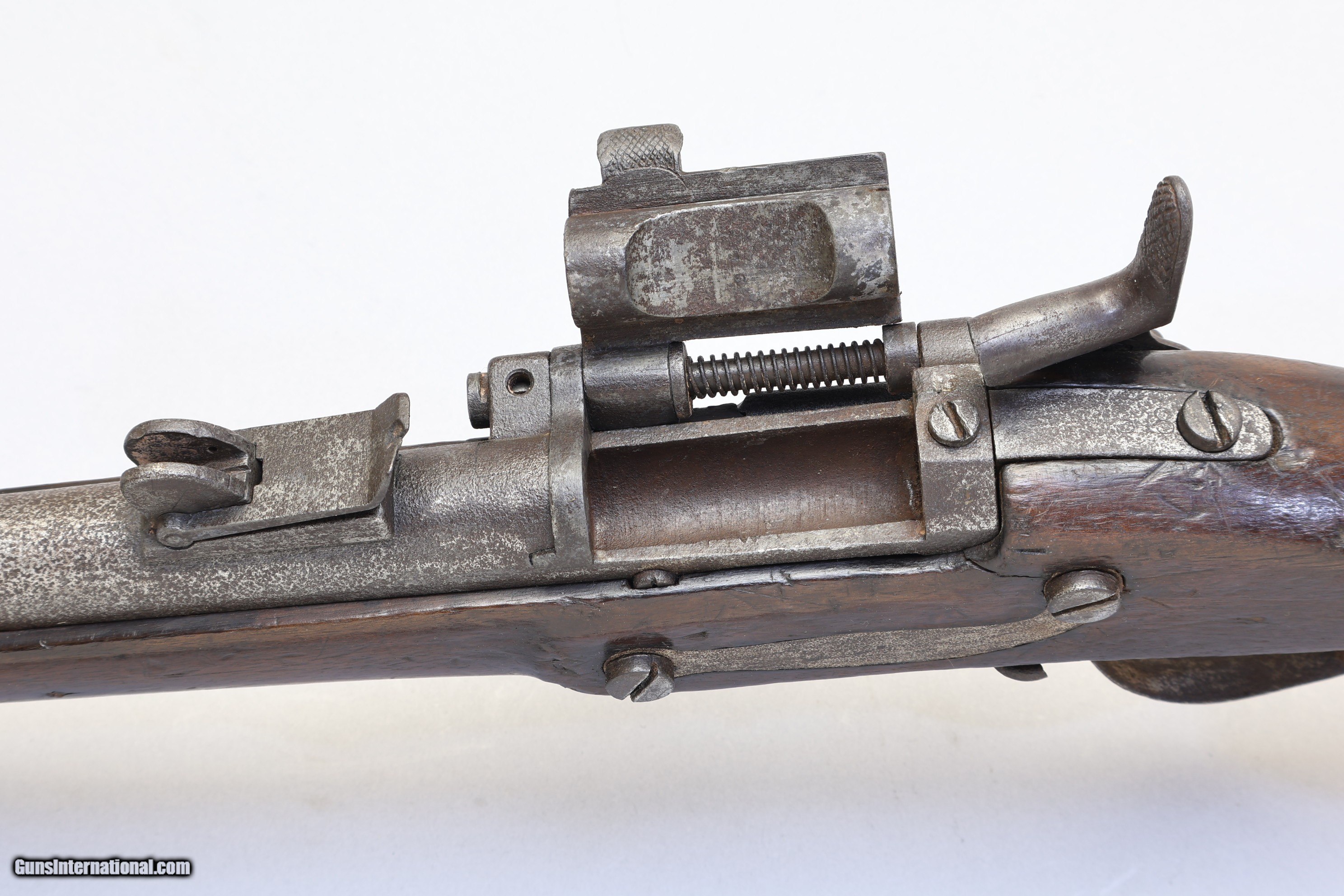 Description: Overall Length 37" The Danish Snider Action Rifle is a classic hammergun design known for its simple operation and sturdy construction. It follows the Snider pattern used in Europe during the late 1800s and is built around a large 17mm bore that suits traditional black powder use. This example has an unknown maker but clearly follows the Danish Snider style. The barrel measures 26 inches in total with 23 inches from the muzzle to the front of the breech, and it is listed in 17mm caliber. It offers a straightforward layout with a smoothbore barrel and a wood stock, and it dates to 1870 in Denmark.