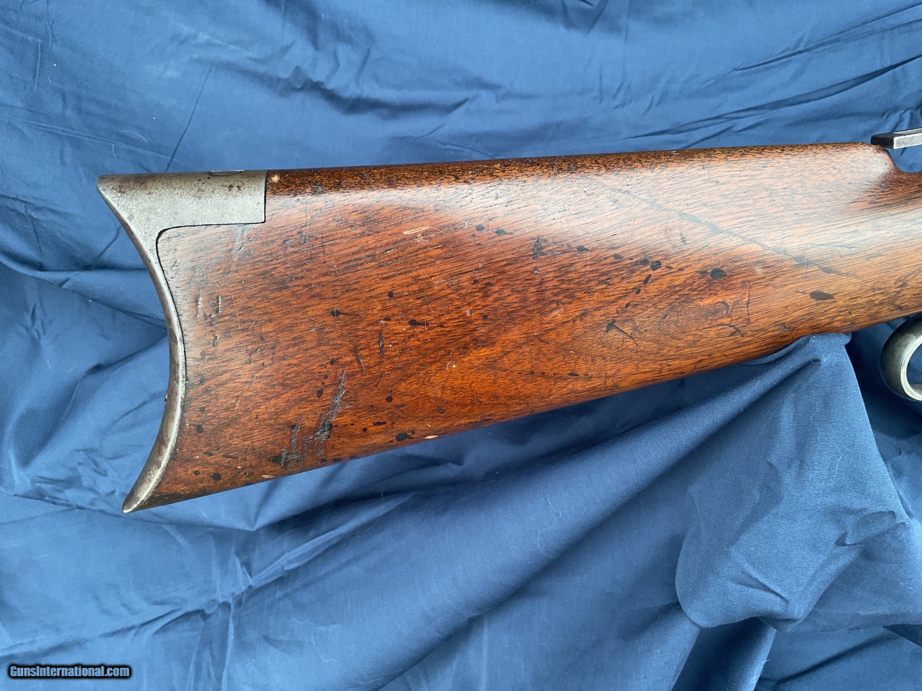 Description: Excellent, original, Marlin Firearms Co. Ballard # 5 Pacific in RARE .40/90, excellent barrel blue, nice wood, 30" octagon barrel, original tang sight, double set triggers and excellent bore. The Ballard .40/90 and .40/85 use the same brass case. Very tight , excellent action. Call 814-724-5006 with any questions etc. (Land line so no texts) Antique: Yes Manufacturer: Marlin Firearms Co. Model: # 5 Pacific Serial Number: 24403 Barrel Length: 30 Bore Info: Shiny & Bright Condition: Excellent Wood Condition: Nice Barrel Type: octagon Action: Ballard Triggers: Double Set Stock: Walnut Finish: Blue/Case Sights: Barrel & Tang sight Manufacture Date: 1870's Price: $3,695.00 Contact Seller |