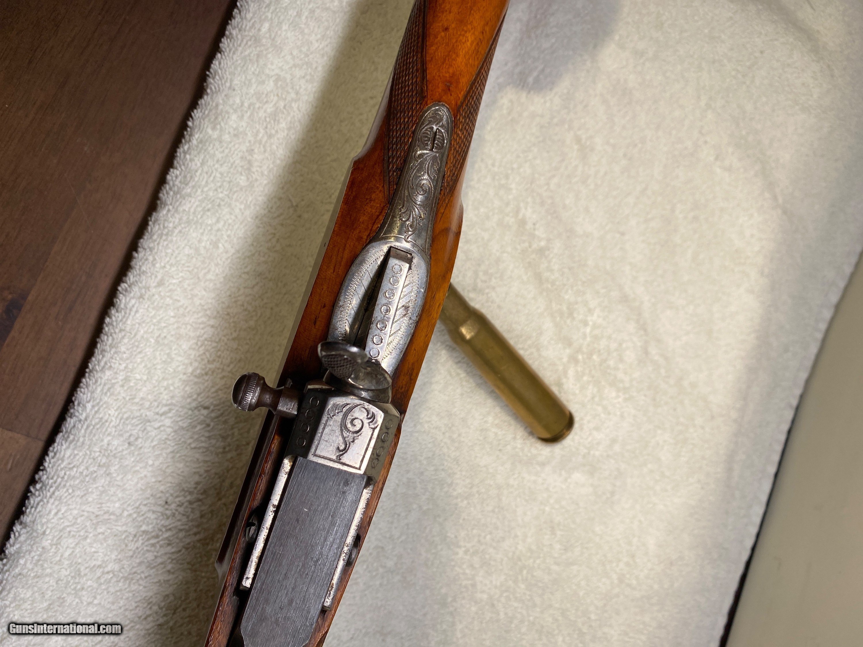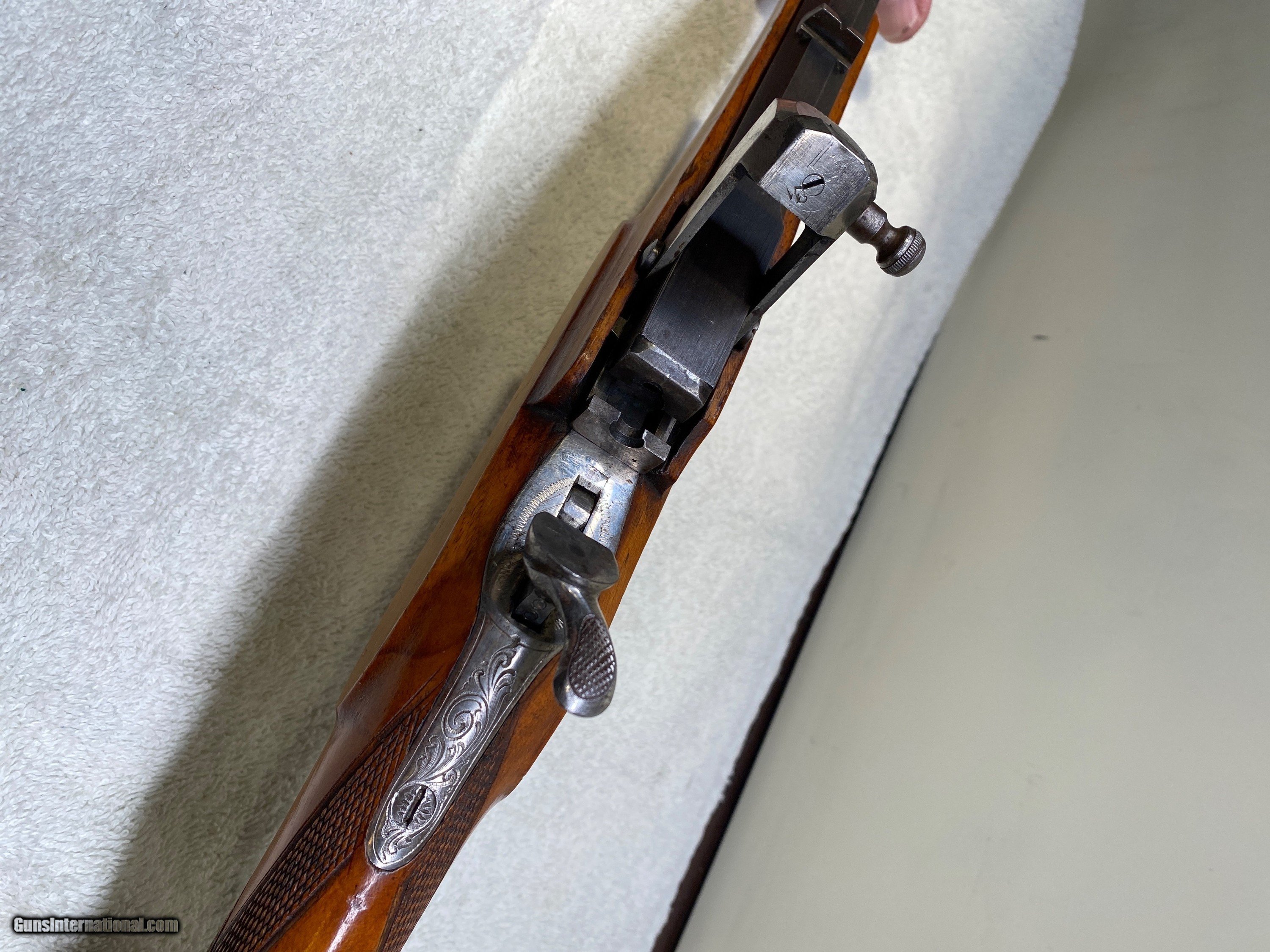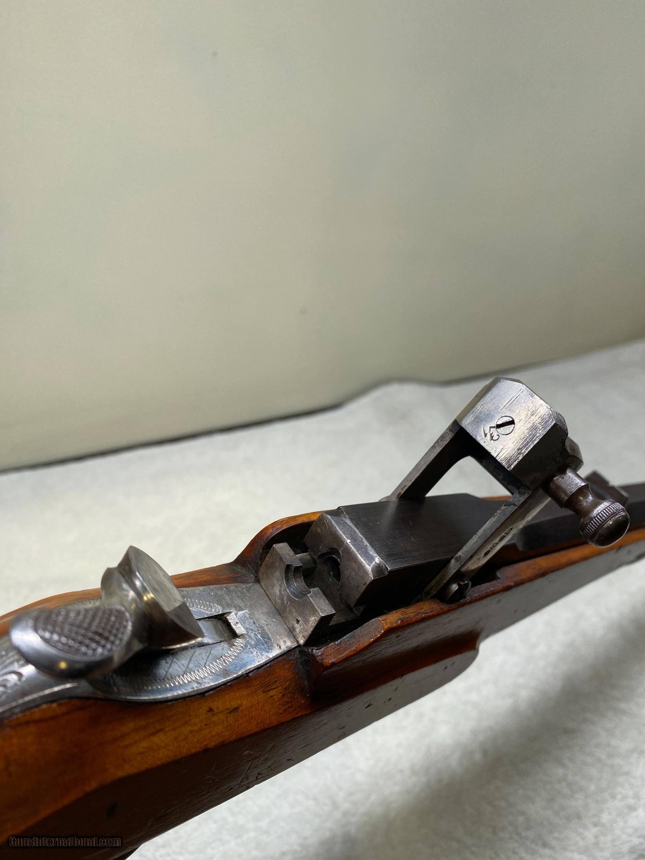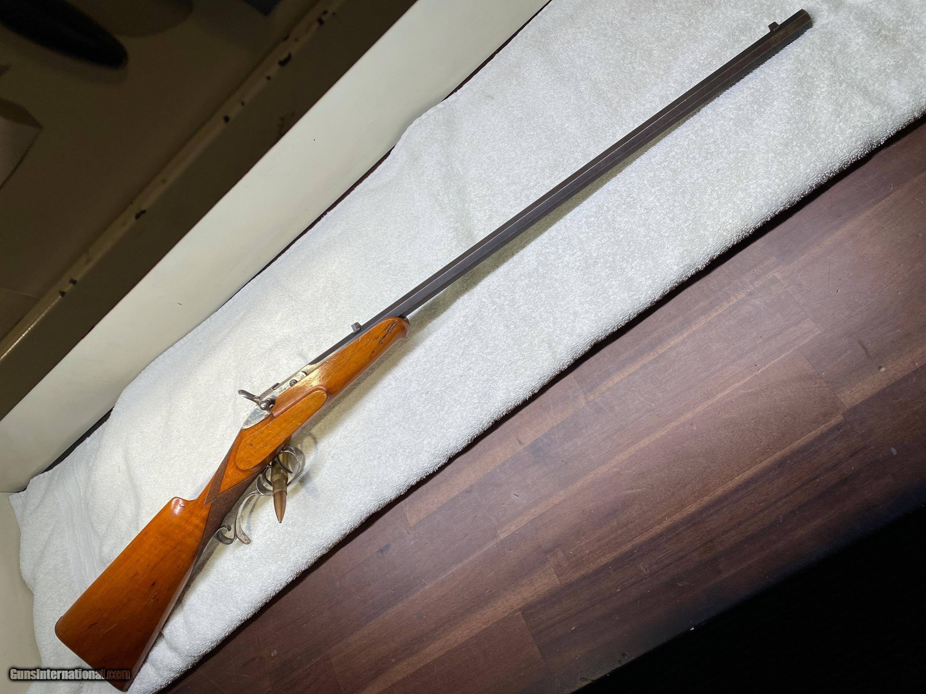 Description: SOLD Antique German parlor rifle. Before homes had televisions, and bars had pool tables and dart boards, Indoor target shooting was not an uncommon pastime. This is a beautifull example of a, fancier than usual, late 1800s Flobert action parlor rifle. Nice engraving, nice wood, no cracks or serious oxidation. Just the normal haldling dings you would expext for a 130+ year old rifle. 22 bb cap,(6mm flobert). 0.05 gr NGP m/71-1 gr on barrel German proof marks. $50.00 shipping, USPS money order preferred, personal checks ok, will ship when cleared. looks to be all original w/ near perfect bore. SOLD Antique: Yes Rifle Caliber: .22 BB Manufacturer: Germany Model: Flobert action Serial Number: 21 Barrel Length: 23 1/2 Condition: Good Metal Condition: Good Wood Condition: Good Bore Condition: Good Barrel Type: Octagon Action: Flobert Triggers: double set LOP: 13 3/4 Finish: original Weight: 4 1/2# Sights: original Manufacture Date: early 1890s Engraving: good Proof:Nitro: yes |