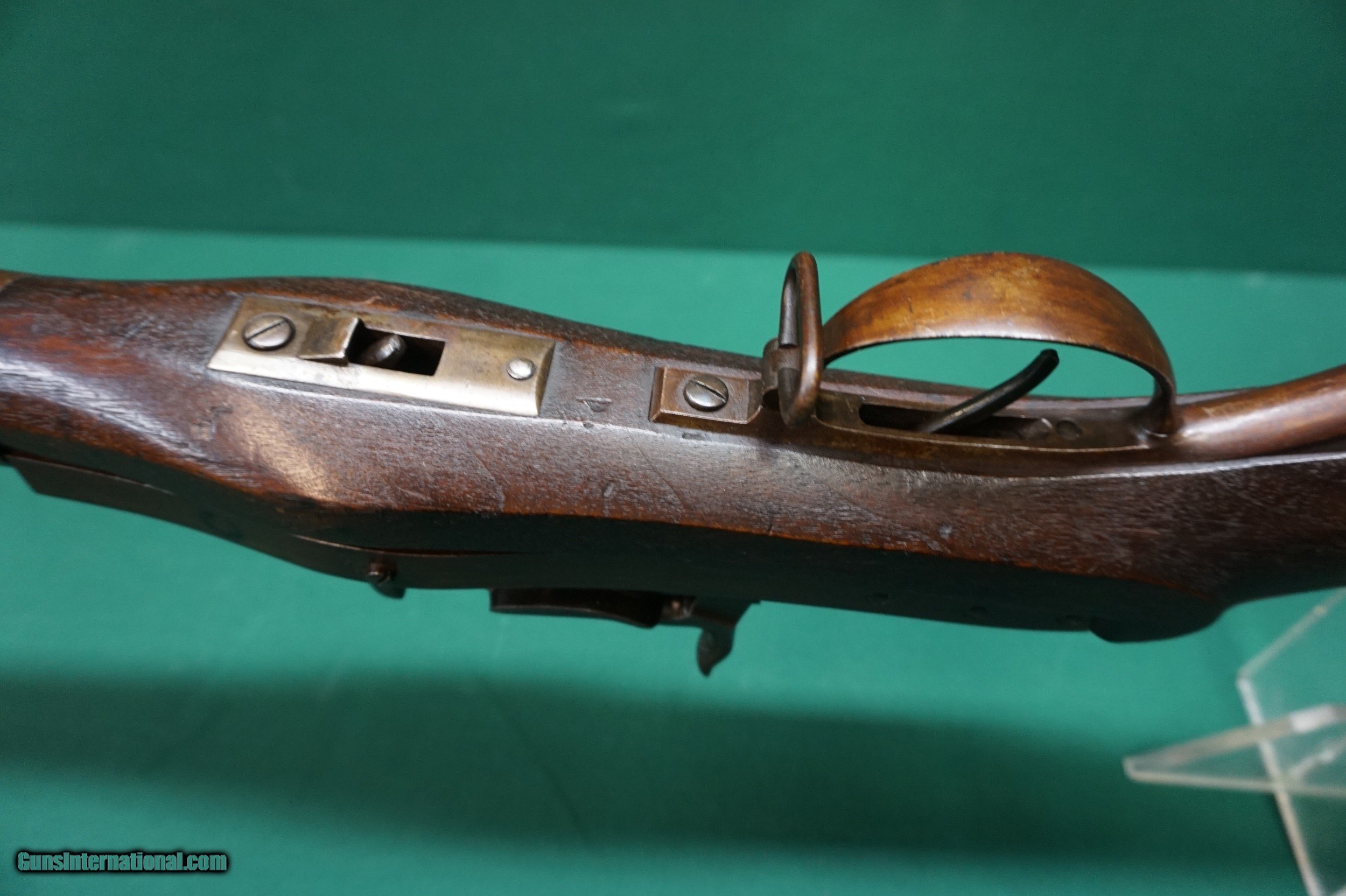 Description: Breech block marked 'J.H. Hall, H. Ferry, US, 1839. Very nice condition-smooth, clean metal is an even plum brown patina coloration, great wood, nice markings, original sling rings and cleaning rod. SOLD |