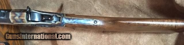 Description: Lone Star Reproduction Remington Rolling Block Custer Style 50/70, but no set trigger. Combo rear sight with attached barrel tang. Bold color case hardened metal and action. Bright new looking bore. Heavy full length 24" full octogon barrel. 99% as new with few minor use/ storage marks. Sold SOLD |