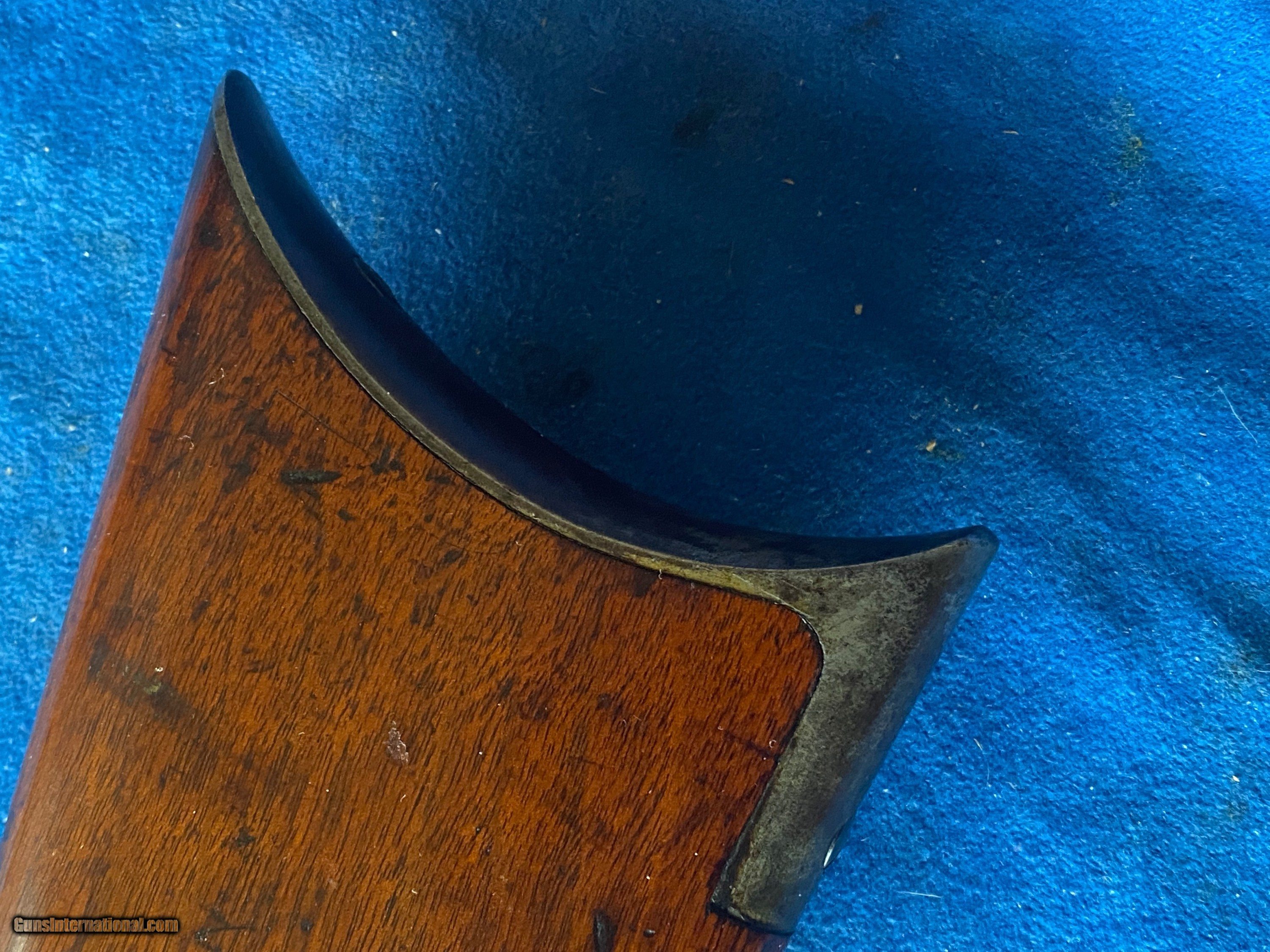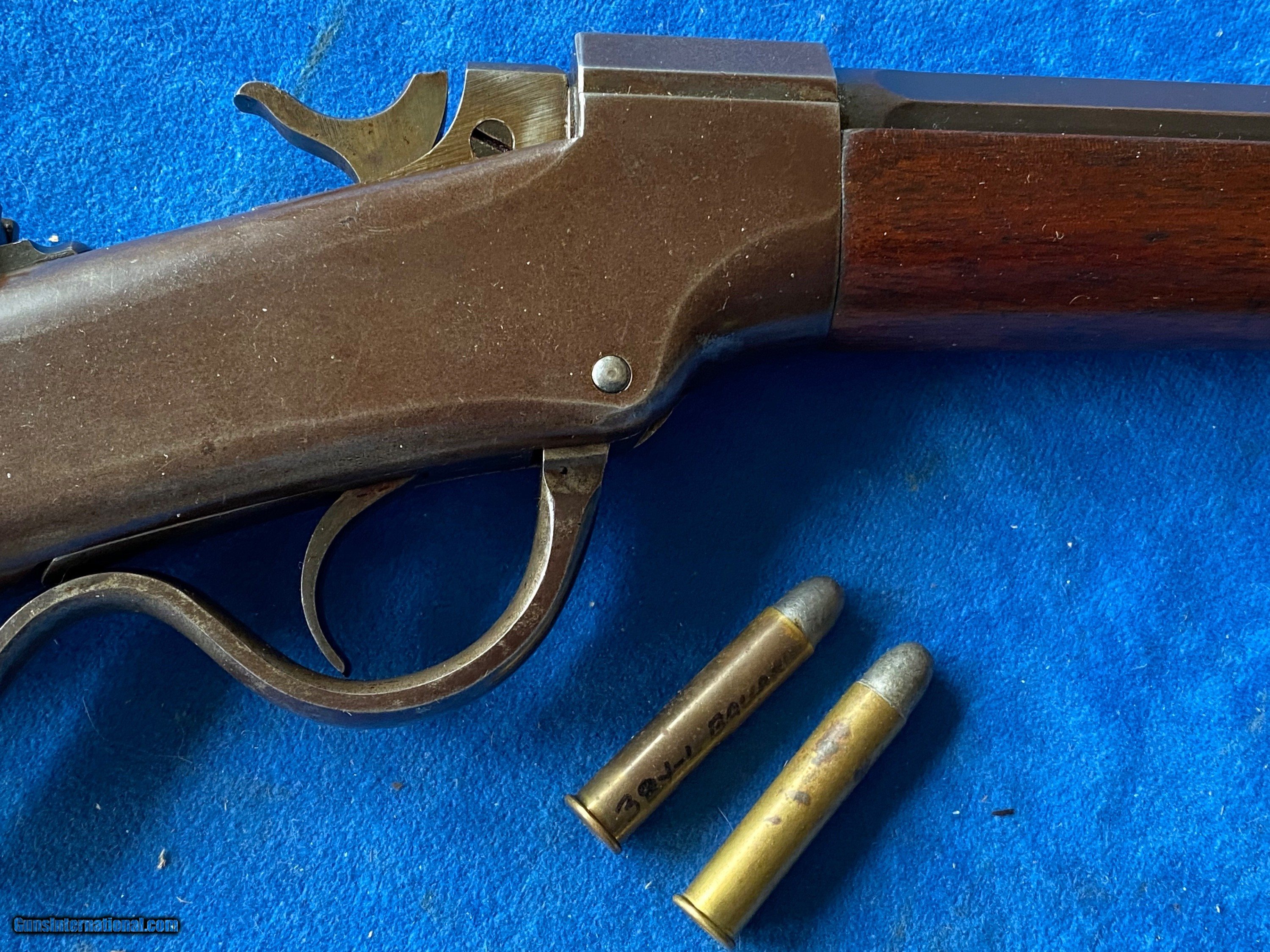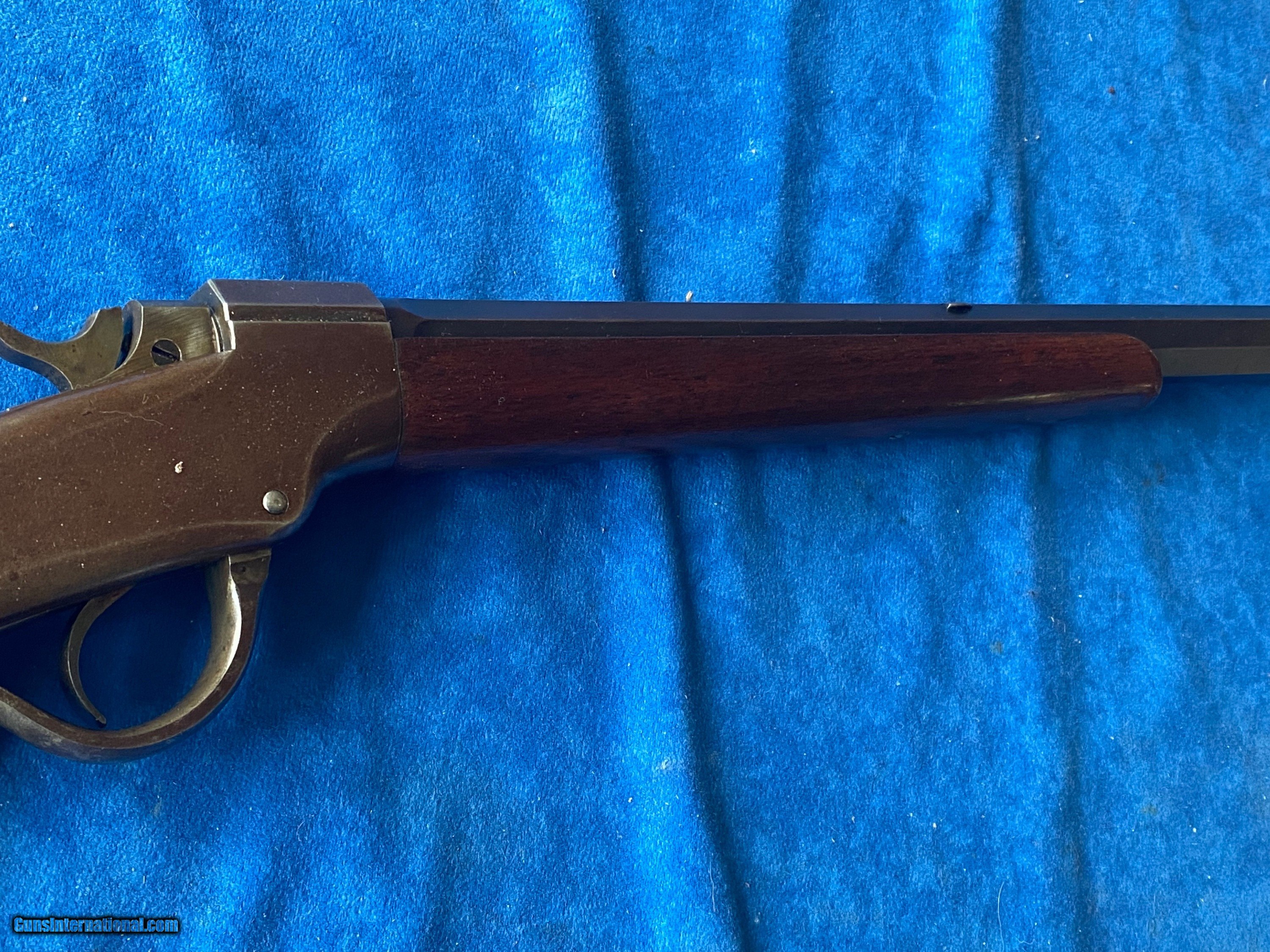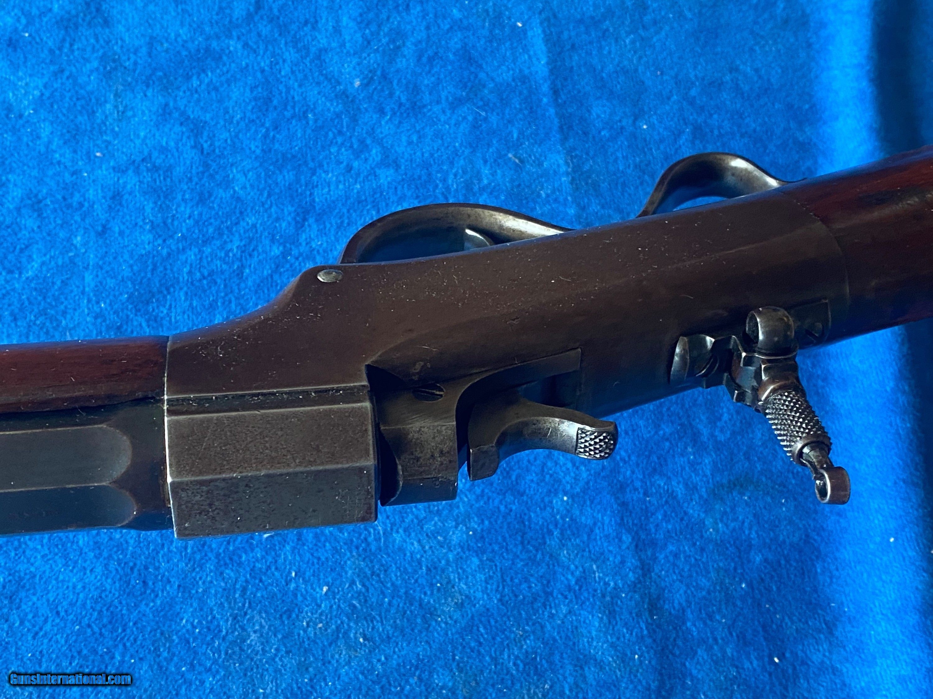 Description: A very nice Classic single shot by Marlin .A well preserved rifle that has never been abused or altered this 38 long centerfire has a thirty inch octagon barrel that retains its nice original blue.There is a blank in the barrel sight and gun has a tang peep sight.The receiver has traces of case color and patina all markings are sharp and legible.The wood is fine and retains original finish with no sign of sanding or modifications.All said this is a. Very well cared for Classic to collect and or shoot. Shipping is 100.00 Do not hesitate to ask questions,I am a nice old guy and enjoy talking guns,Gil SOLD Antique: Yes |