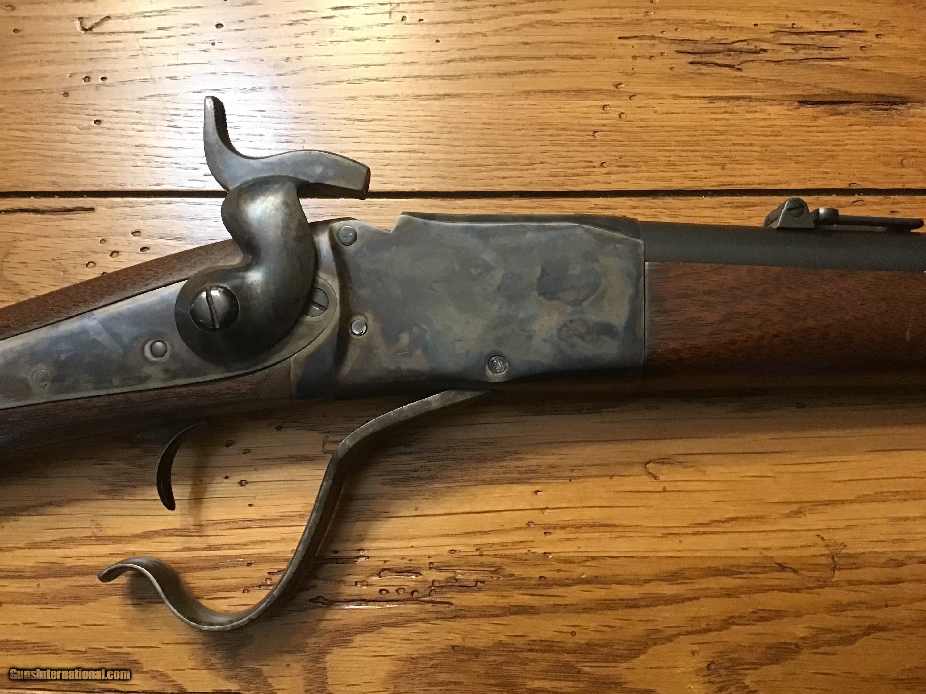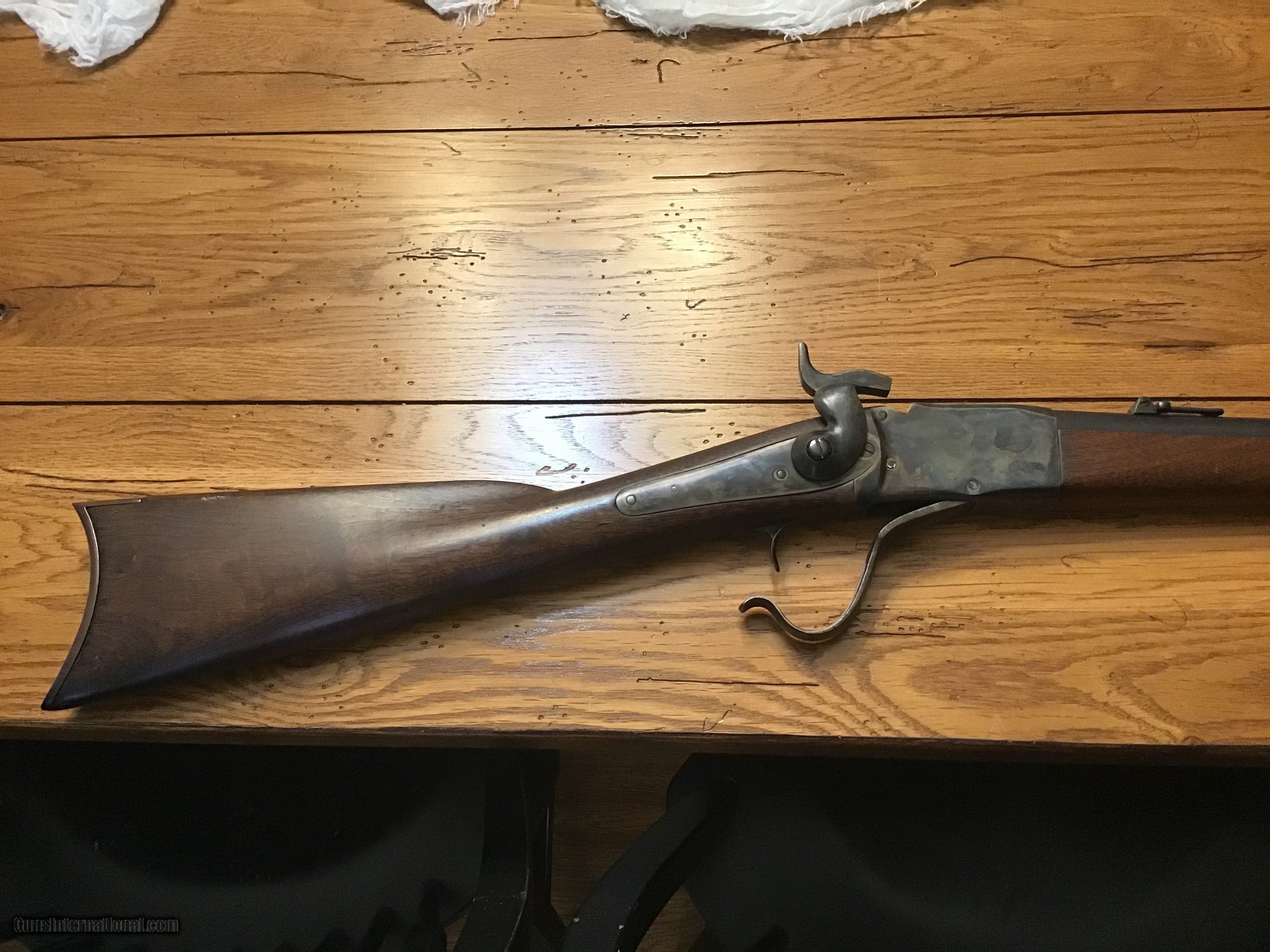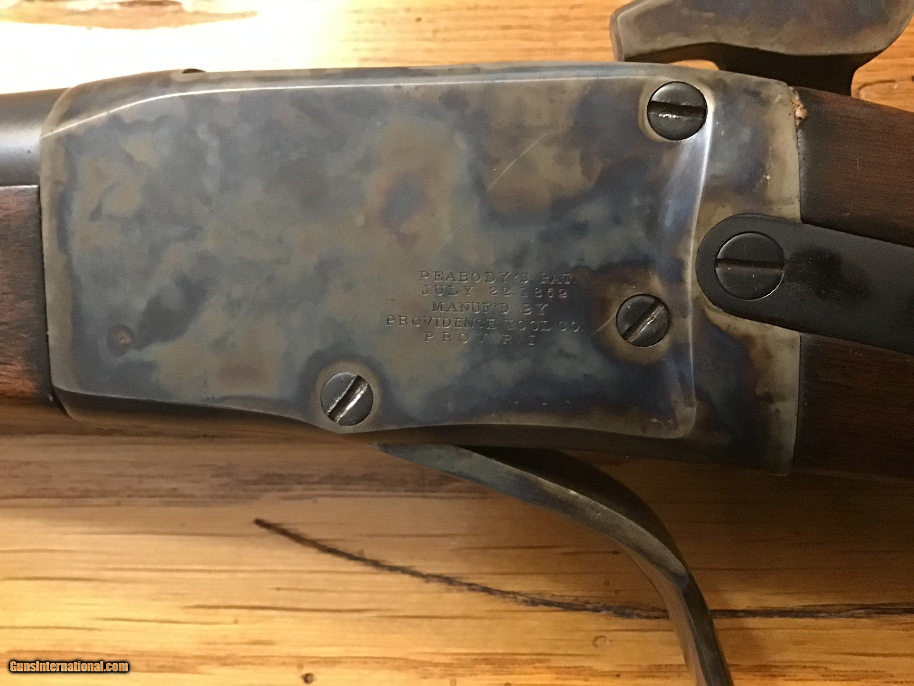 Description: Peabody Sporting rifle unknown caliber ? appears to be a 45 caliber , a 45/70 cartridge goes in about 3/4 way ? No markings except for those on receiver ( see pic ) . Excellent overall condition with bright bore and sharp rifling! Short range sights , excellent CC on receiver, wood is excellent, function is very crisp. Hammer spring is strong, trigger is adequate for this period firearm . Questions? Please text . $1800+$45 shipped to most of 46 as antique thanks for looking SOLD Antique: Yes |