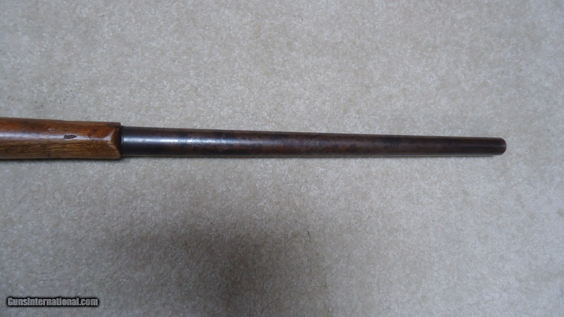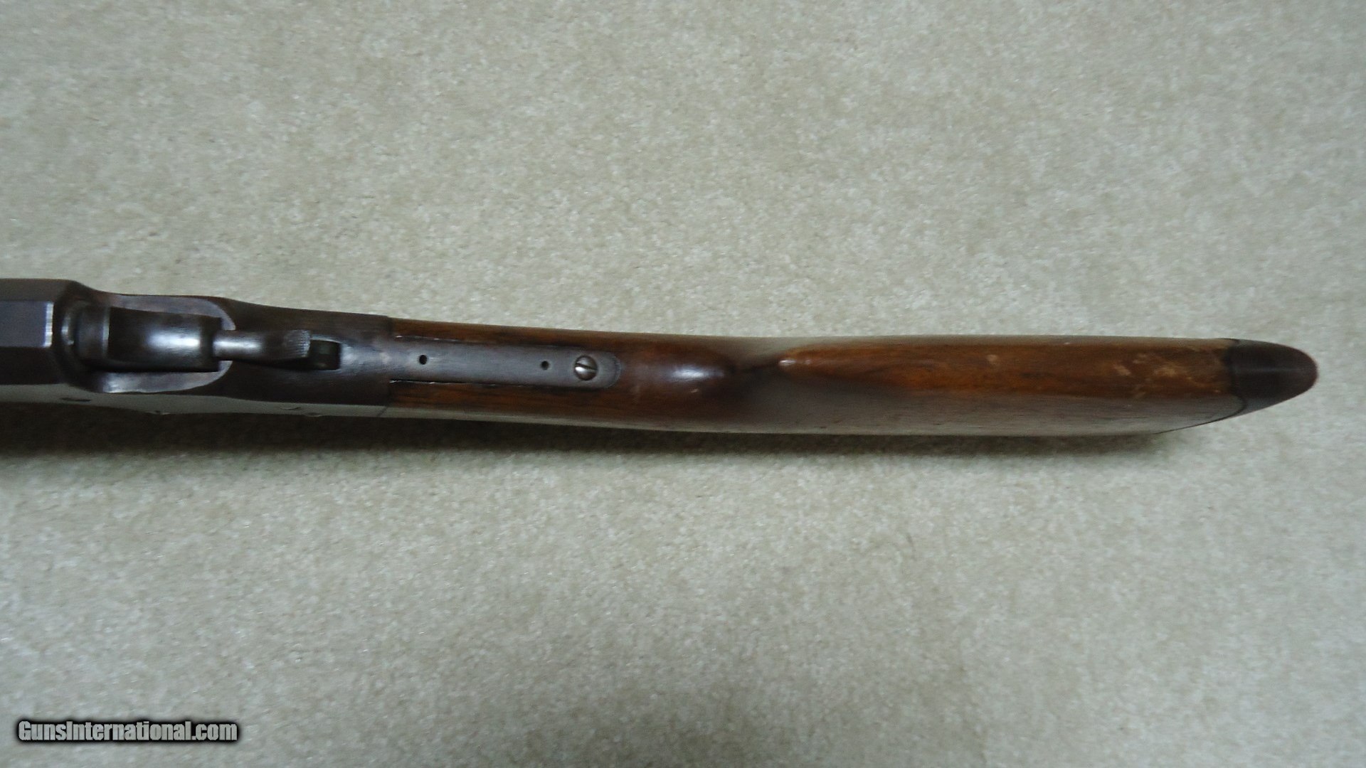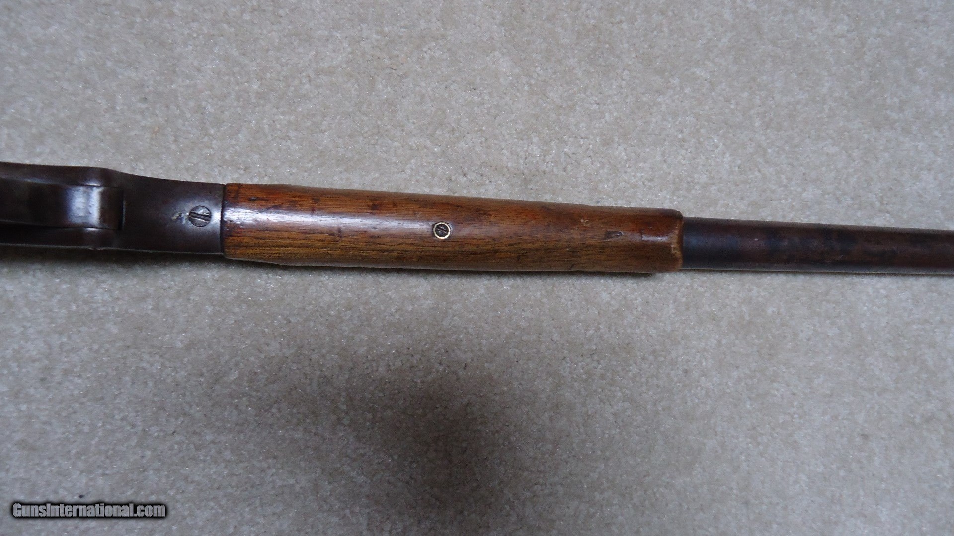Description: SCARCE CALIBER STEVENS MODEL 44 SINGLE SHOT RIFLE IN .32-40. This is an earl rifle with serial number 6XXX. Aged blue/brown barrel with good markings shows some signs very light scattered rust that was wiped off. 26” half round barrel with matching number to the receiver. Receiver is an uncleaned smooth dark patina, fine action, fine bore is a little dark with good rifling throughout and ought to scrub out better. Any roughness is very light and surface. Fine butt stock with crescent butt plate, fine forearm with shallow sliver out of the upper left side. Buckhorn rear sight is broken off and should be easy to replace, blade front sight. Nice overall aged appearance. This one came out of the Eastern Montana/North Dakota area.. Hard caliber to find. SOLD Antique: Yes Manufacturer: STEVENS Model: MODEL 44 Serial Number: 6XXX Caliber Info: .32-40 Condition: VG Barrels: 26" 1/2 OCT |