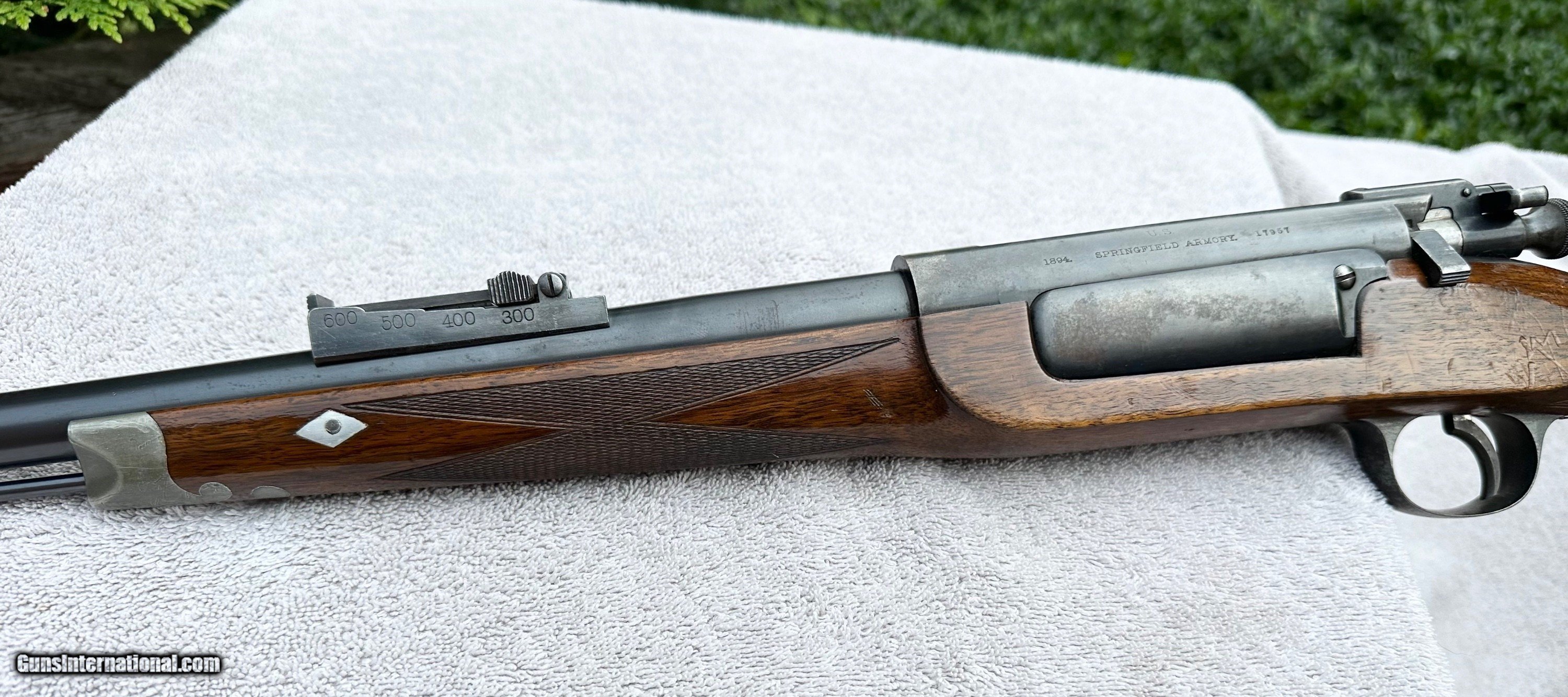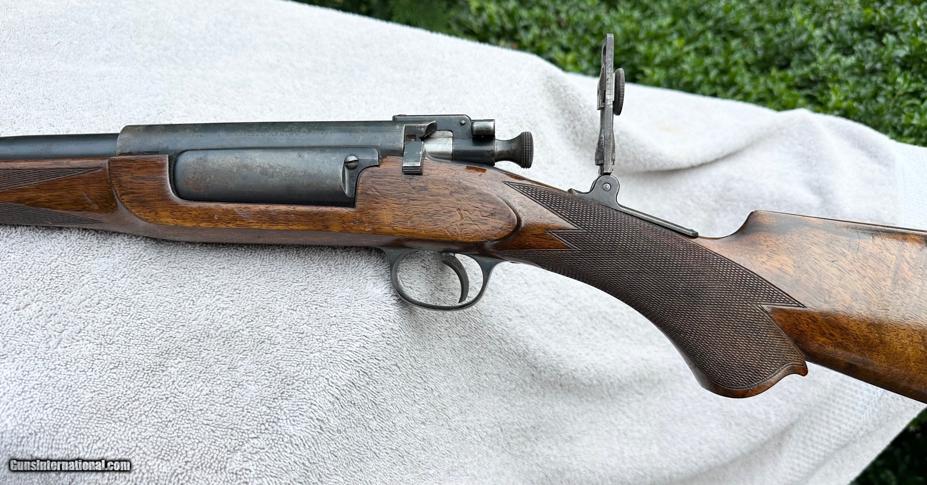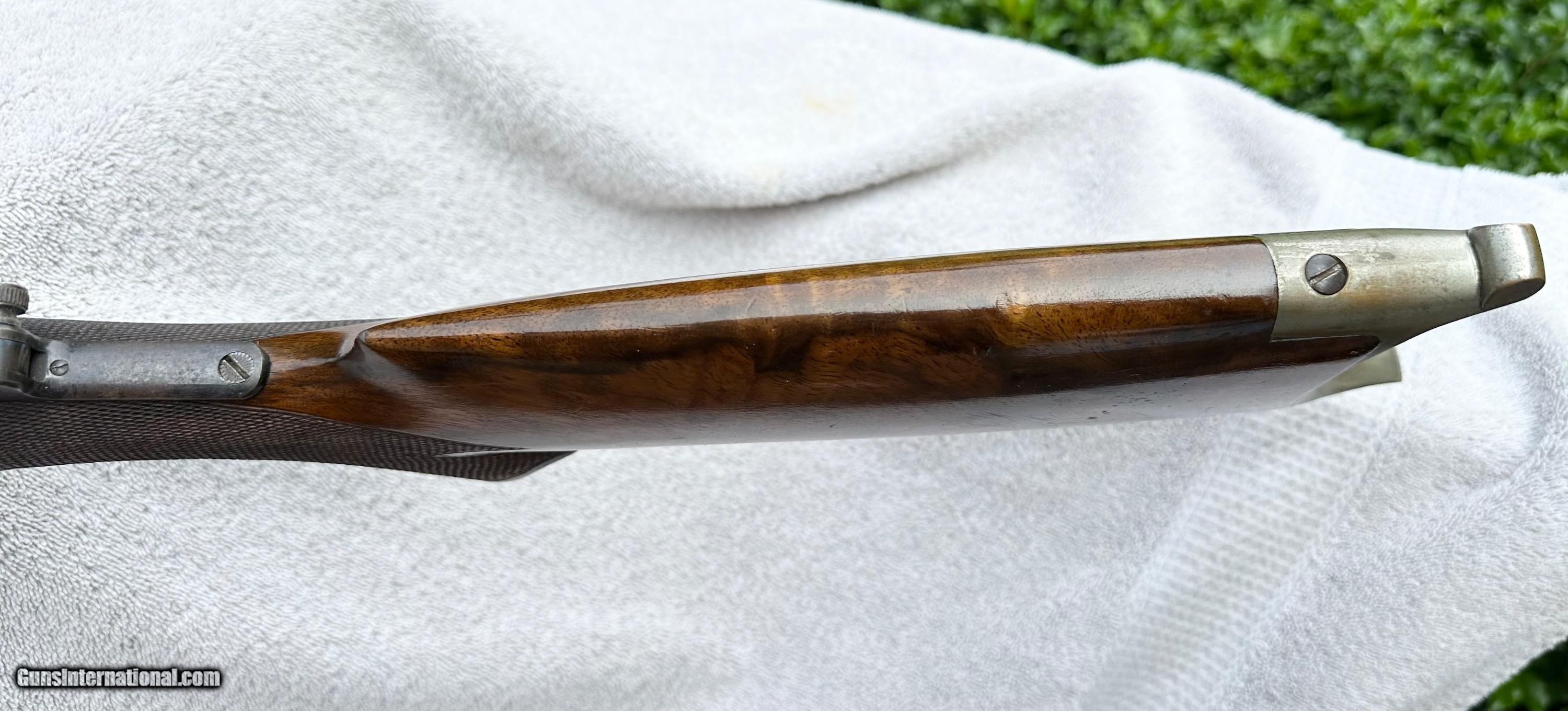 Description: This rifle, serial number 17957, was originally assembled at Springfield Armory around July or August of 1895. The serial number is listed in Springfield Research Services (SRS) data, as a Model 1892 rifle, that was received by West Virginia, on September, 24, 1896. The '1894' on the action is the year that the receiver-part was manufactured. Springfield Armory did not get to apply the serial #17957 to a receiver, until the late summer of 1895. The action (receiver) and Striker/Extractor Assembly are the Model 1892 design. (The Bolt appears to be a model 1896 bolt). The receiver has not undergone the conversion of being 'notched' for the later style extractors, that had a bolt 'hold-open' pin. The tang sight is a by Willard Milton Farrow. Willard Milton Farrow was a competitor at Sea Girt, from the late 1890s until the National Guard and NRA matches at Sea Girt were no longer. W. Milton Farrow operated his rifle shop, making and selling his own designs of single shot rifles in Morgantown, West Virginia, from 1892-93 until about 1897. His rifles were made for black powder and lead bullets. Several were for cartridges of Farrow's own design. He marked just over half of his 25 surviving rifles. The rest were unmarked. This rifle is published in the September/October 2025 issue of "Single Shot Rifle Journal"... in this article the author goes into more detail as to why he believes this may possibly be a Farrow built and personally owned rifle. Extremely good overall condition. Bore is very good condition. Please email with questions Rifle Caliber: .30-40 Krag Price: $6,500.00 Shipping: $65.00 Contact Seller |