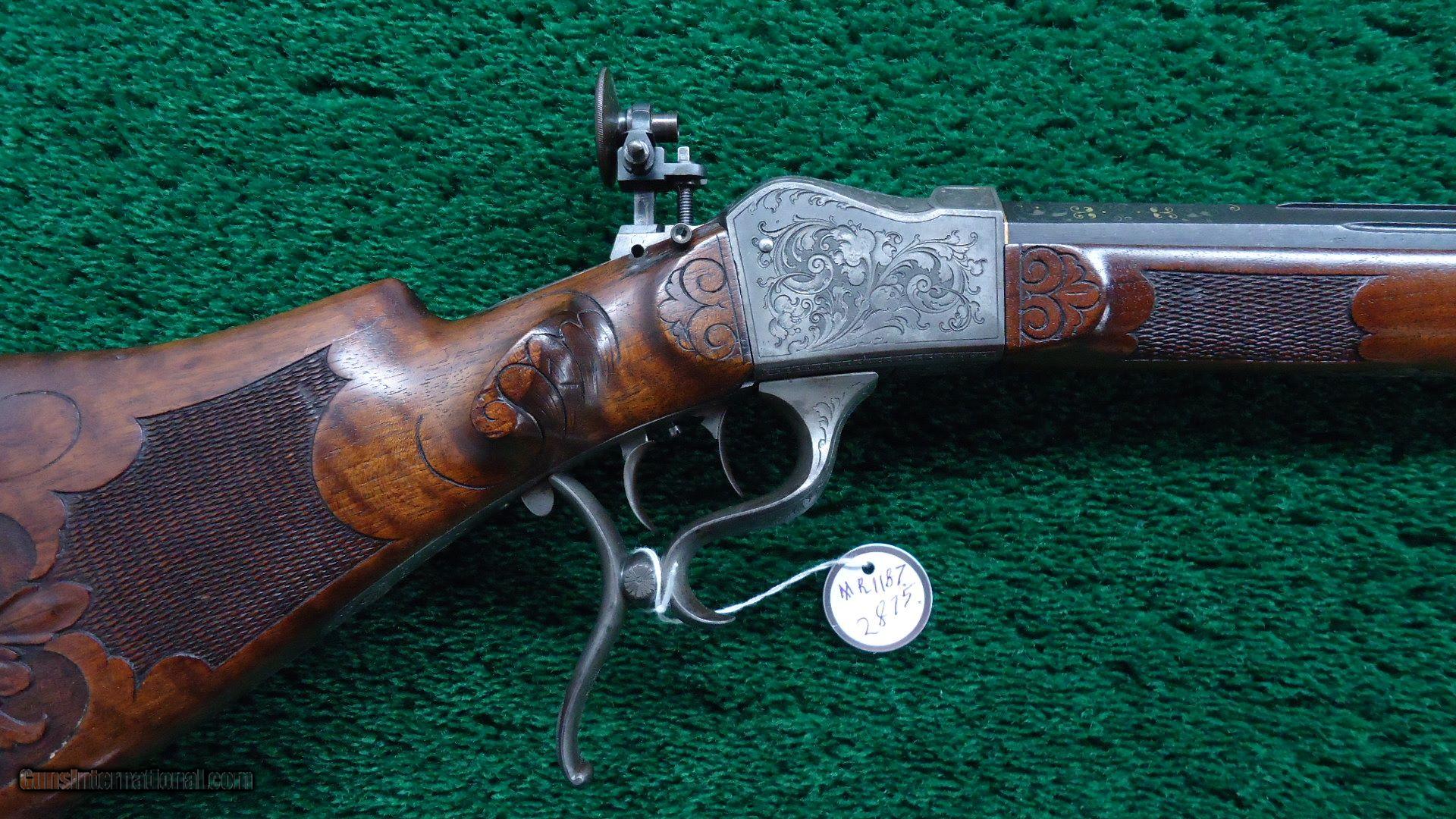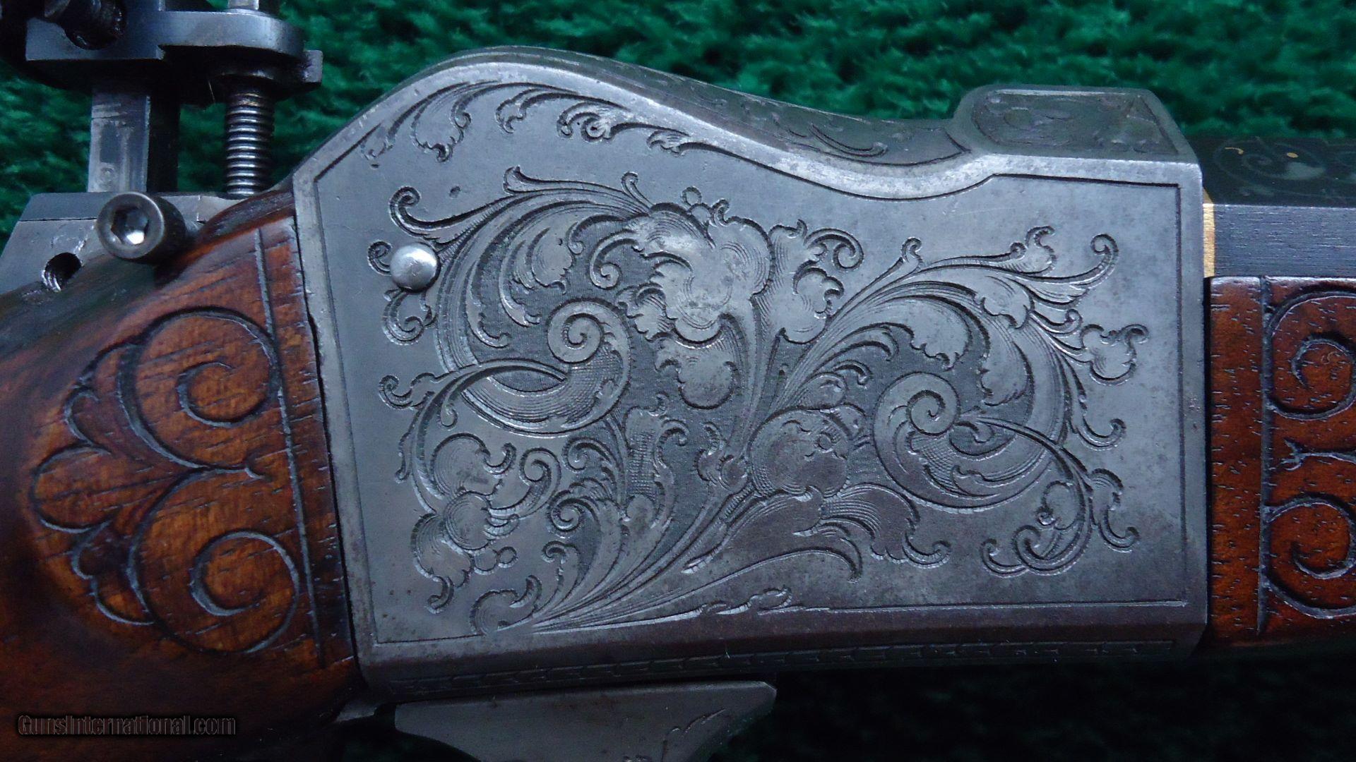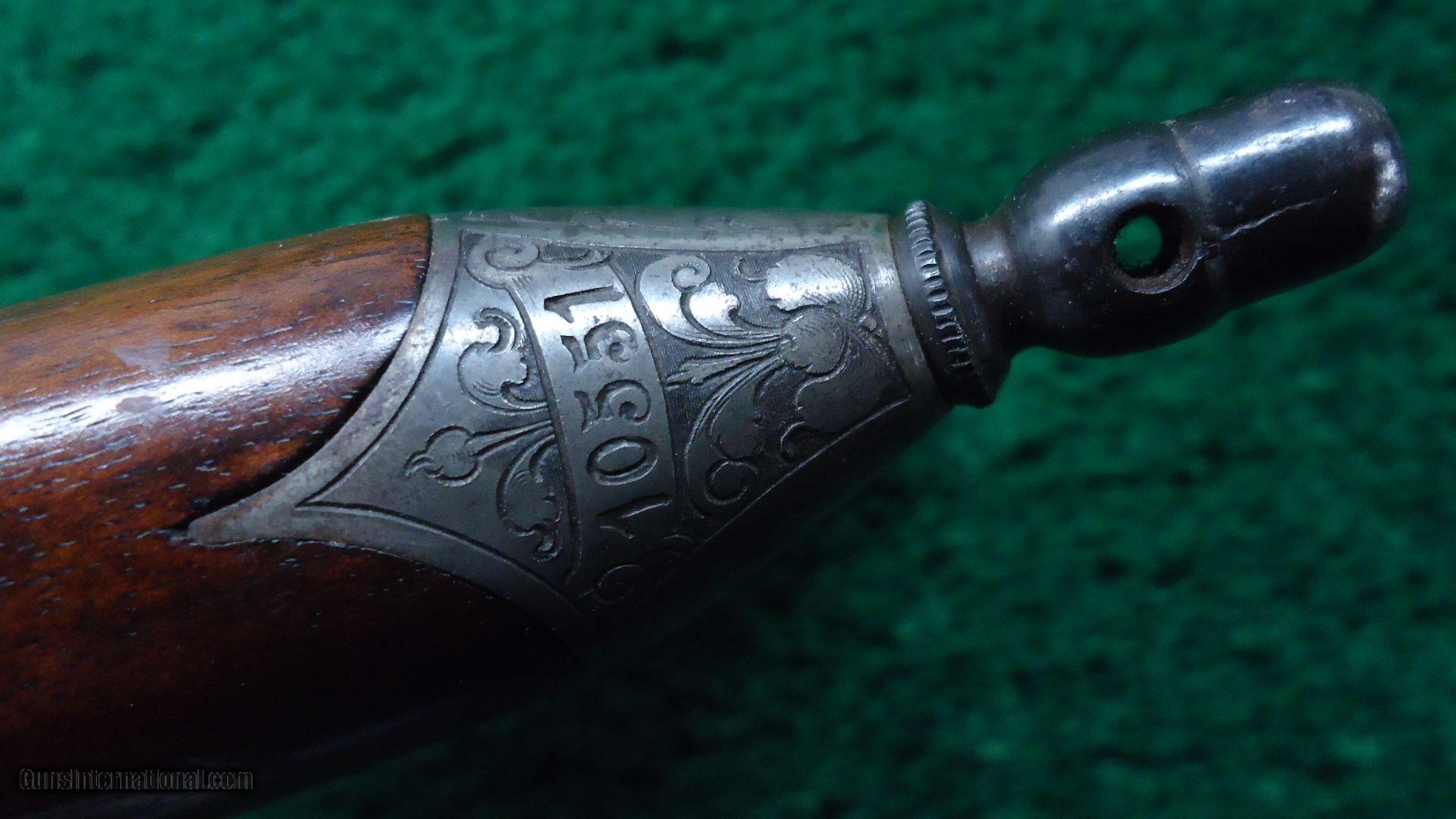 Description: Gun is in excellent condition with most original blue and case colors starting to turn somewhat. Wood is nicely carved and checkered and has the Schuetzen style pronged buttplate. Action works fine with correct double set trigger. All of the original sights which is rare to find. They generally disappear. An uncommon rifle. Excellent inside and out. Leroy Merz Antique Firearms specializes in antique and vintage Winchesters and other fine American firearms. Since 1965 Mr. Merz has taken part in the world of firearms and has been a contributor to many well known reference books. Just recently we mailed the 128th edition of our privately-published catalog. We have hundreds of additional guns in every price range at our home online. Search for Merz Antiques in google. SOLD Antique: Yes |