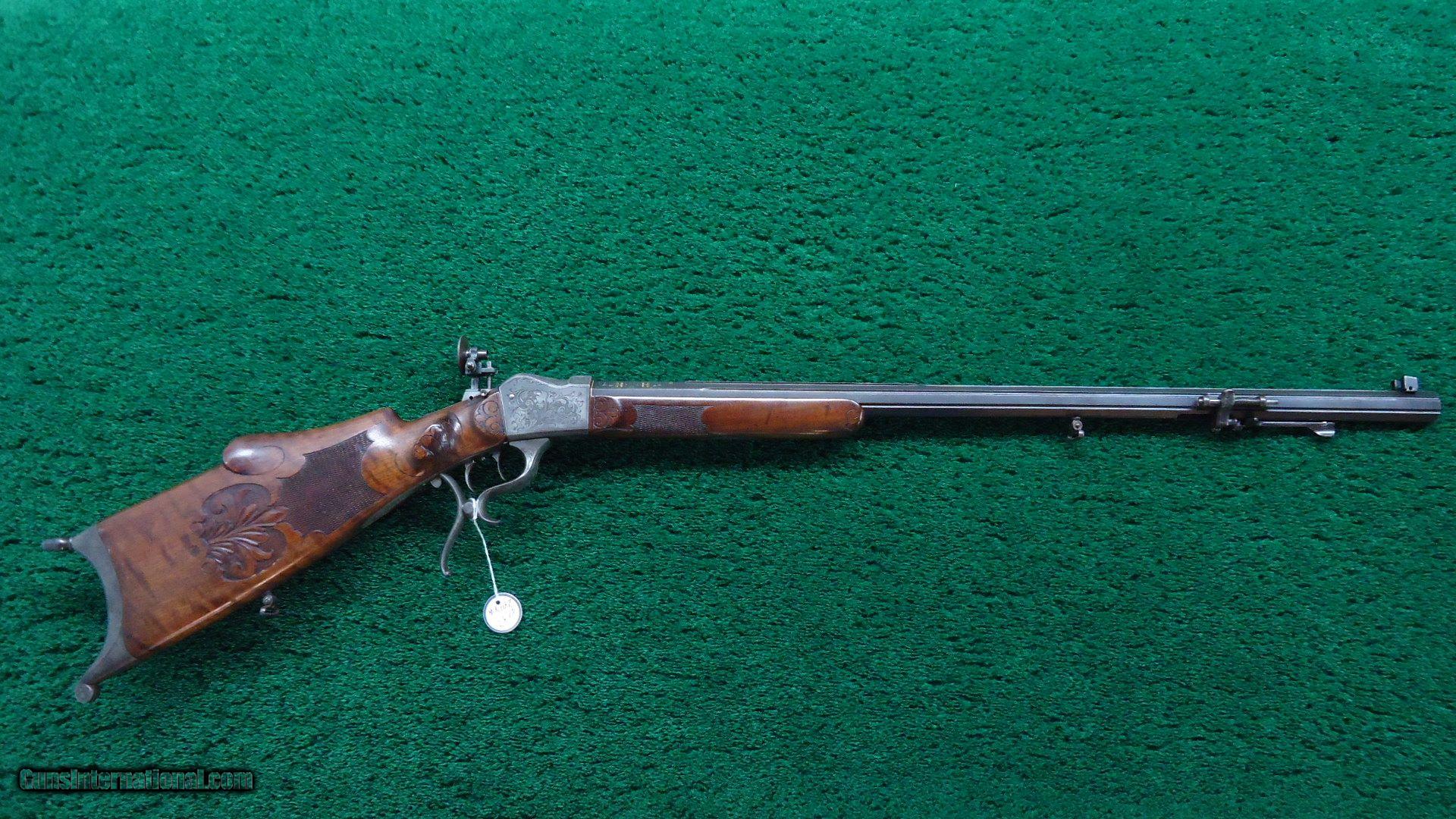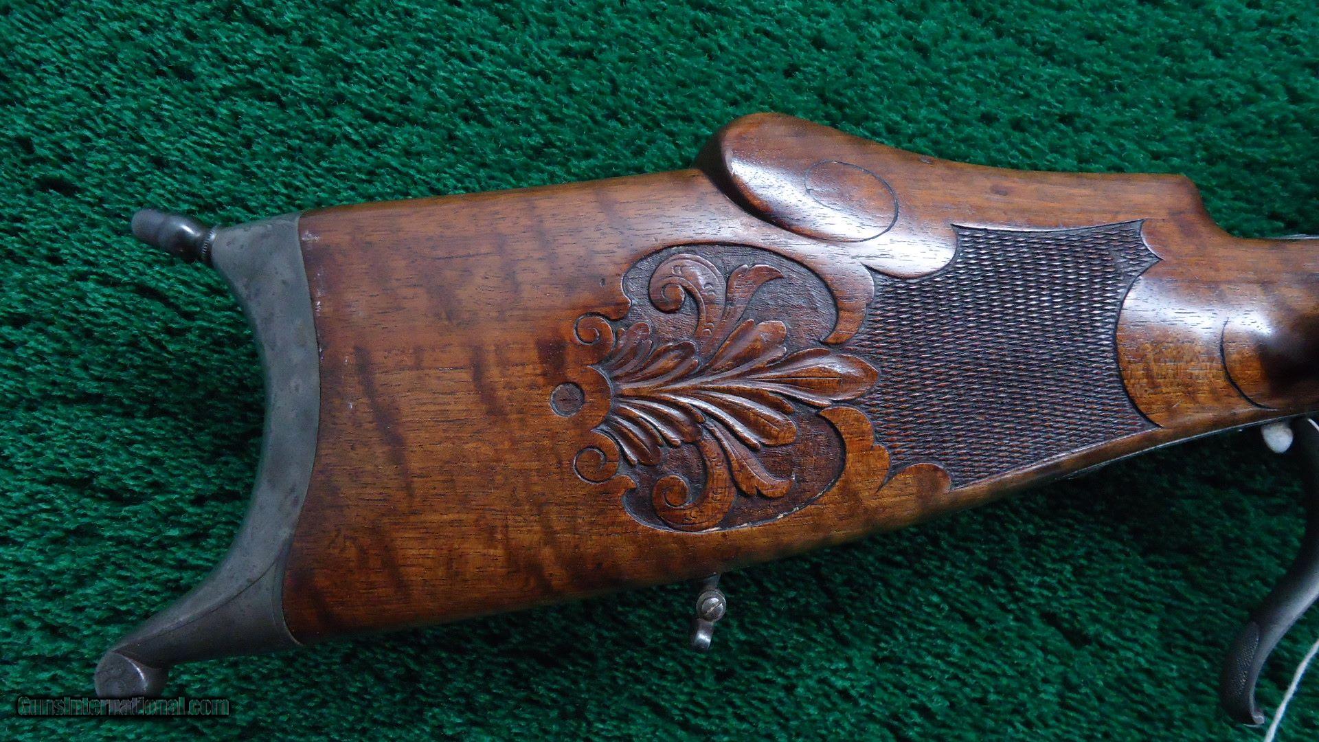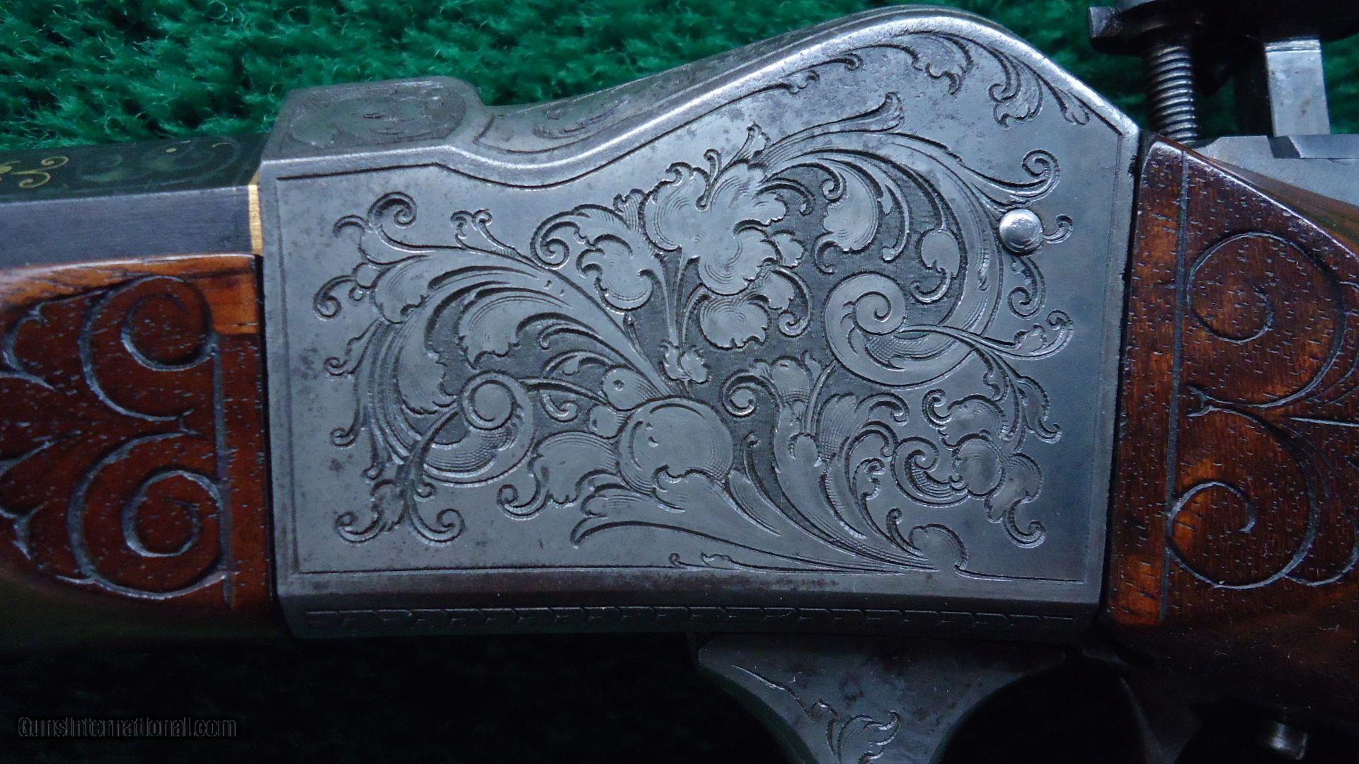 Description: Gun is in excellent condition with most original blue and case colors starting to turn somewhat. Wood is nicely carved and checkered and has the Schuetzen style pronged buttplate. Action works fine with correct double set trigger. All of the original sights which is rare to find. They generally disappear. An uncommon rifle. Excellent inside and out. Leroy Merz Antique Firearms specializes in antique and vintage Winchesters and other fine American firearms. Since 1965 Mr. Merz has taken part in the world of firearms and has been a contributor to many well known reference books. Just recently we mailed the 128th edition of our privately-published catalog. We have hundreds of additional guns in every price range at our home online. Search for Merz Antiques in google. SOLD Antique: Yes |