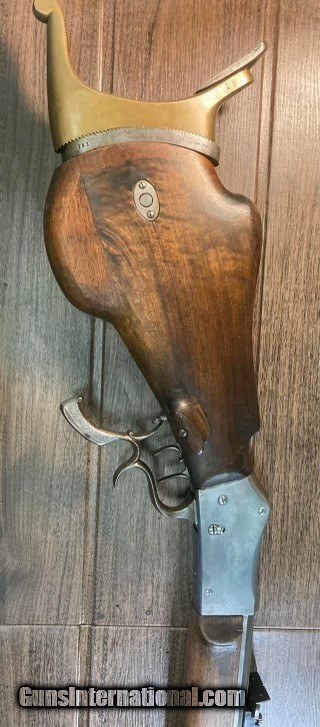 Description: This is a beautiful and unique Swiss Schutzen rifle chambered in the Swiss favorite caliber of 7.5x55. This gun has a fluted barrel and double-set triggers. It was manufactured by manufacturer M. Brunner Brugg and is a stunning example of Swiss gunsmithing! This gun is located at 2nd Amendment Gun Shop located in Seymour, Missouri. We are a small family-operated business specializing in antique, collectible and military firearms. All of our online listings are also available for sale locally through our store. We do offer a 60-day in store layaway plan with 20% down payment. For more information about this item or anything else in our online inventory, feel free to contact us through our Guns International page or give us a call/text at (417) 860-0900 during business hours, Tuesday - Friday 10 AM - 6PM and Saturday 10 AM - 3 PM. Thank you! SOLD Curio/Relic: Yes Rifle Caliber: 7.5x55mm Swiss Manufacturer: M. Brunner Brug |