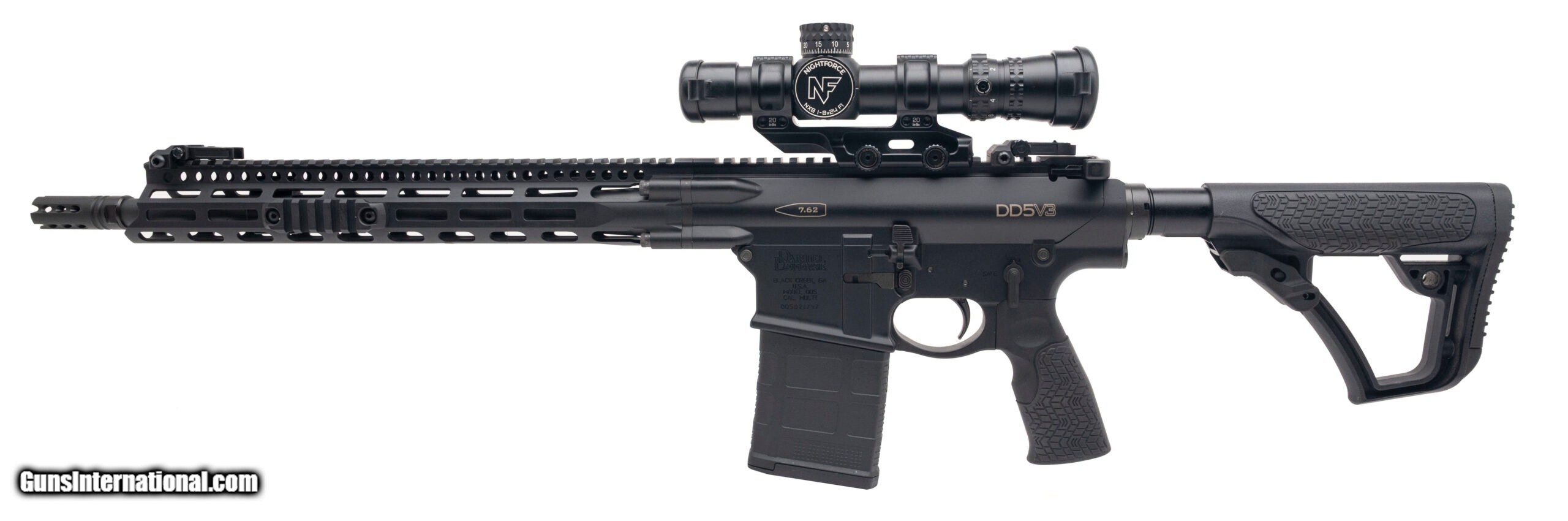 Description: "SN: DD5021747. Modern production, 7.62 NATO with a 16"" barrel. Bore is bright with strong rifling. Semi-auto tactical rifle with NightForce NX8 1-8x24mm scope, Geissele trigger, Spikes Tactical flip-up iron sights, and full ambidextrous controls. Excellent condition overall. Comes with case and 3 extra magazines. Price: $3,750.00 Contact Seller |