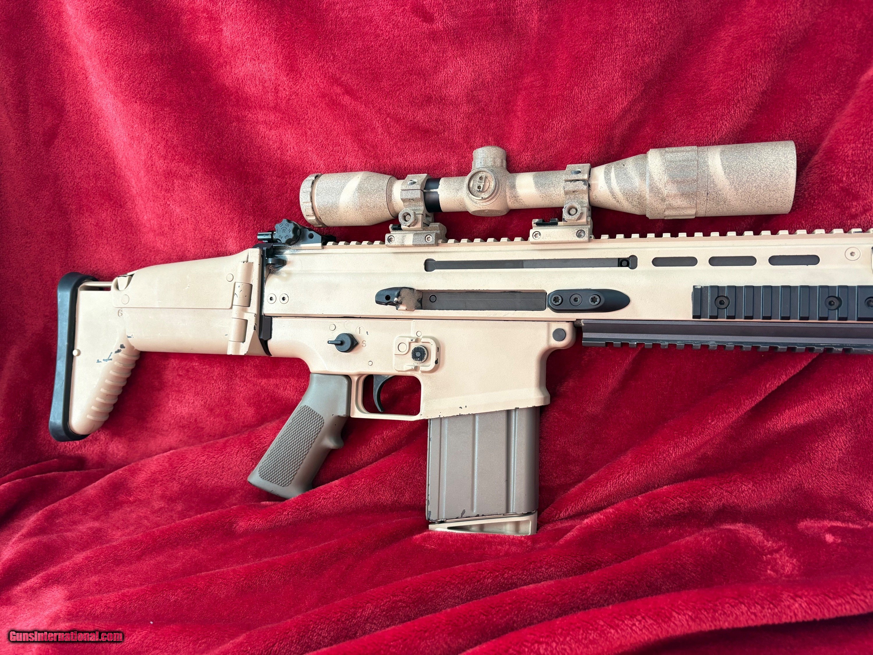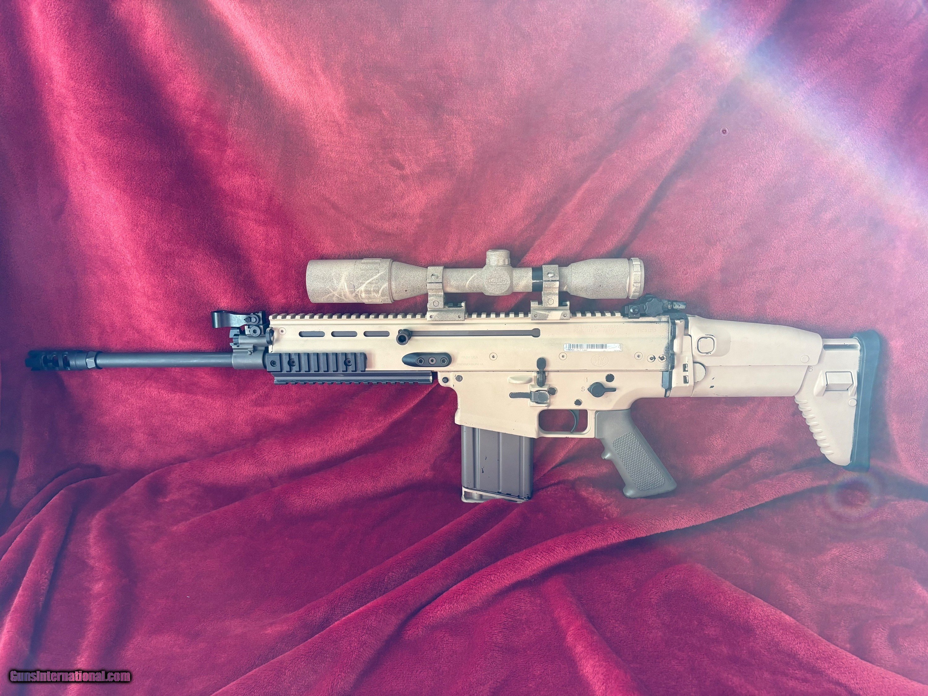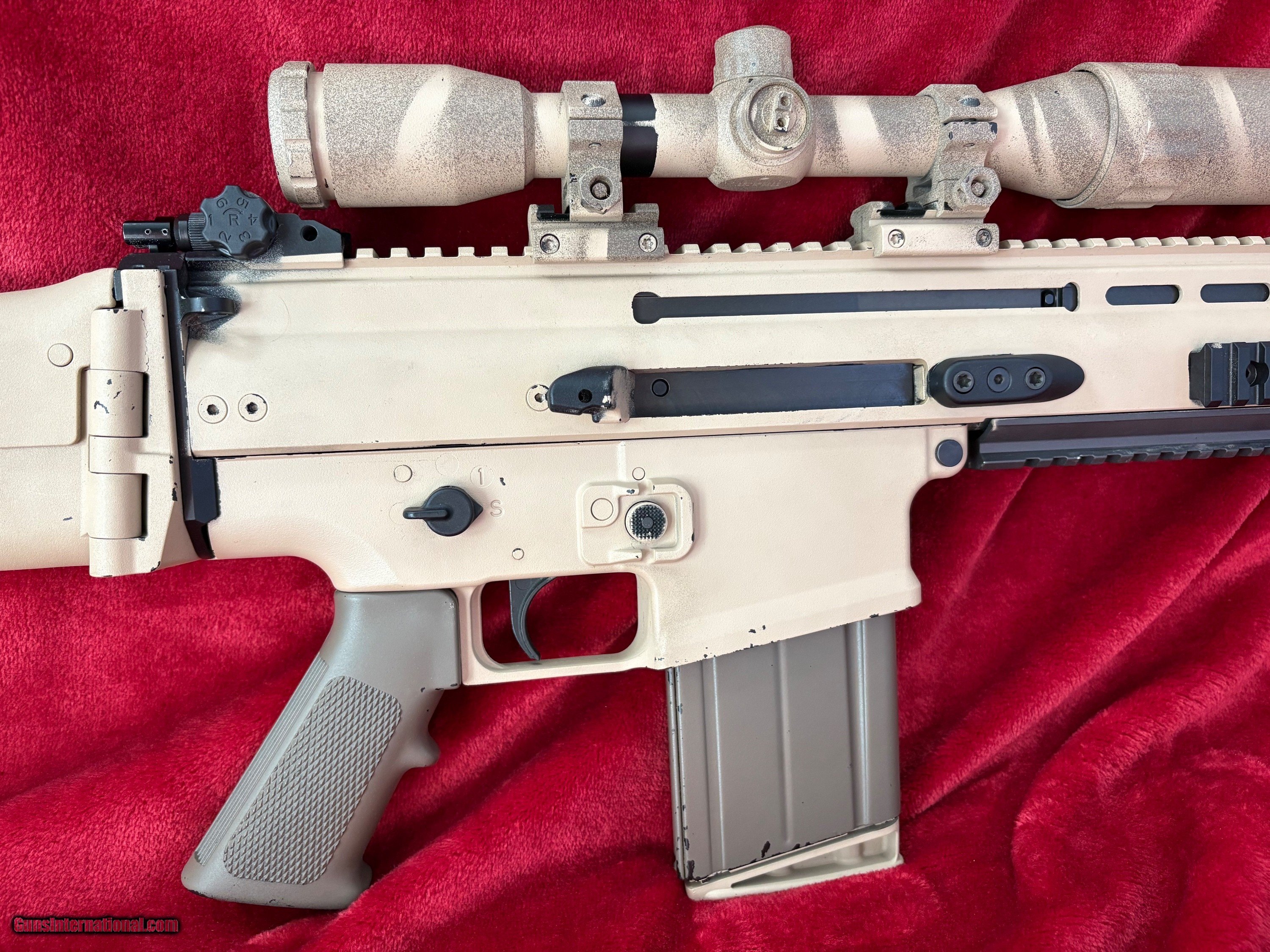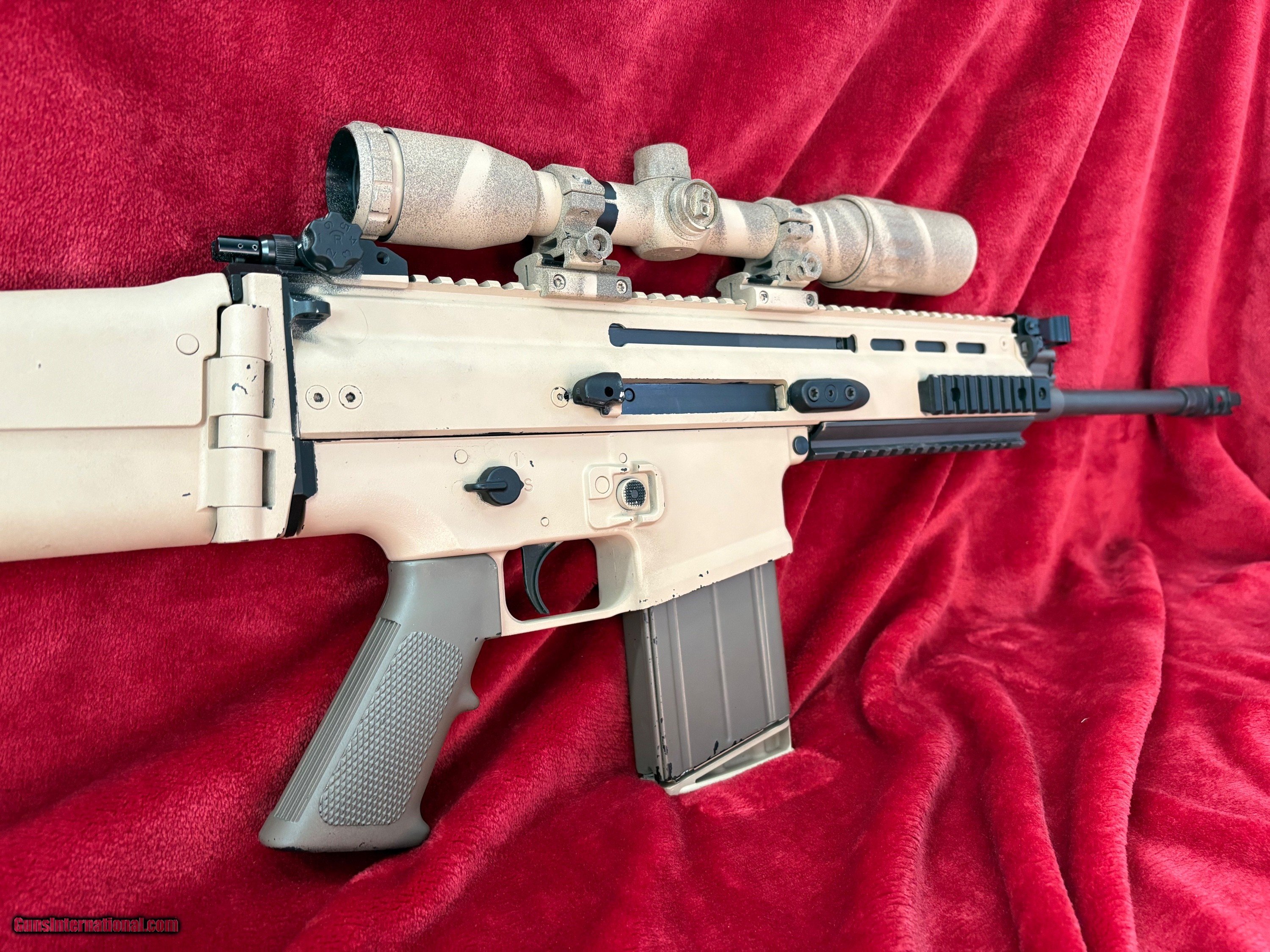 Description: This is an FN Scar 17 7.62x51/.308 that has less than 300 rounds through it. The rifle was originally black and then painted with the desert tan look. Some paint chips from use though it had minimal. All photos show its condition and the bore is 10/10. Mounted on the rifle is a 4/32 leapers scope great for range work well past 300 yards. I am a private seller and not a company. Rifle comes with two 20-round magazines as well as the original owners manual. Do not hesitate to reach out and ask any questions. You won't find a cheaper price! Please feel free to view any of my reviews from (username: nicardo8) SOLD Rifle Caliber: 7.62x51mm NATO |