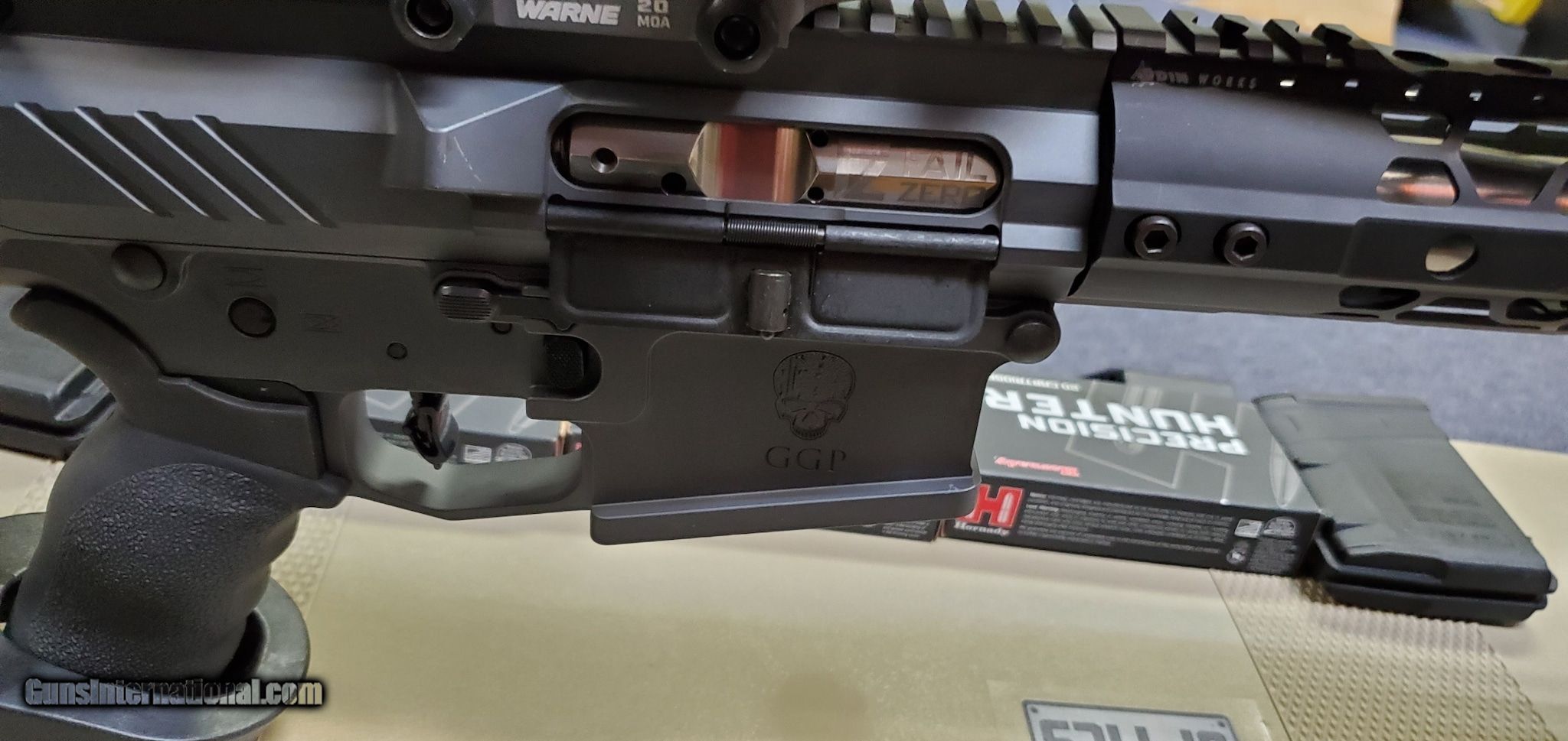 Description: Guns Listing ID: 609990 An excellent Condition custom built Grey Ghost Precision GGP-S Heavy Billet lower and Upper Receiver finished in a Grey Cerakote. It‚‚s griped by an Ergo deluxe sure grip for precision shooting, it‚‚s shouldered by a Magpul PRS Gen3 Grey Stock, Rounds are shoved down an Odin Works 22\" Stainless Steel Barrel equipped with an Aero Precision VG6 65 Gamma Muzzle break to reduce felt recoil and muzzle rise, by the Nickel Boron Fail Zero BCG. Features a POF TomaHawk Ambidextrous Charging Handle. Rounds are precisly put on target with help of the Sig Sauer Tango4 6-24x50 Illuminated scope with 2 night Vision modes. Mounted to the Warne Tactical 20MOA Skeletonized mount. The user will find the Hipfire Hipertouch Eclipse Trigger Assy has virtually no take up, and features just a 2.5LBS. Pull weight. This precision Rifle is completed with an adjustable GG&G Bipod that‚‚s been fitted to an Odin Works 17.5\" Free-Float MLOK Handguard. The Rifle also includes: - 60 Rounds of Hornady Precision Hunter 143 gr. ELD-X 6.5 Creedmoor ammo - 2 AR10 10rd PMAGS - Pelican Vault hard case w/whee SOLD Manufacturer: GREY GHOST PRECISION Model: GGP-S HEAVY Caliber Info: 6.5MM CREEDMOOR Condition: Used - Non-Certified Barrels: 22 BARREL Finish: GREY CERAKOTE |