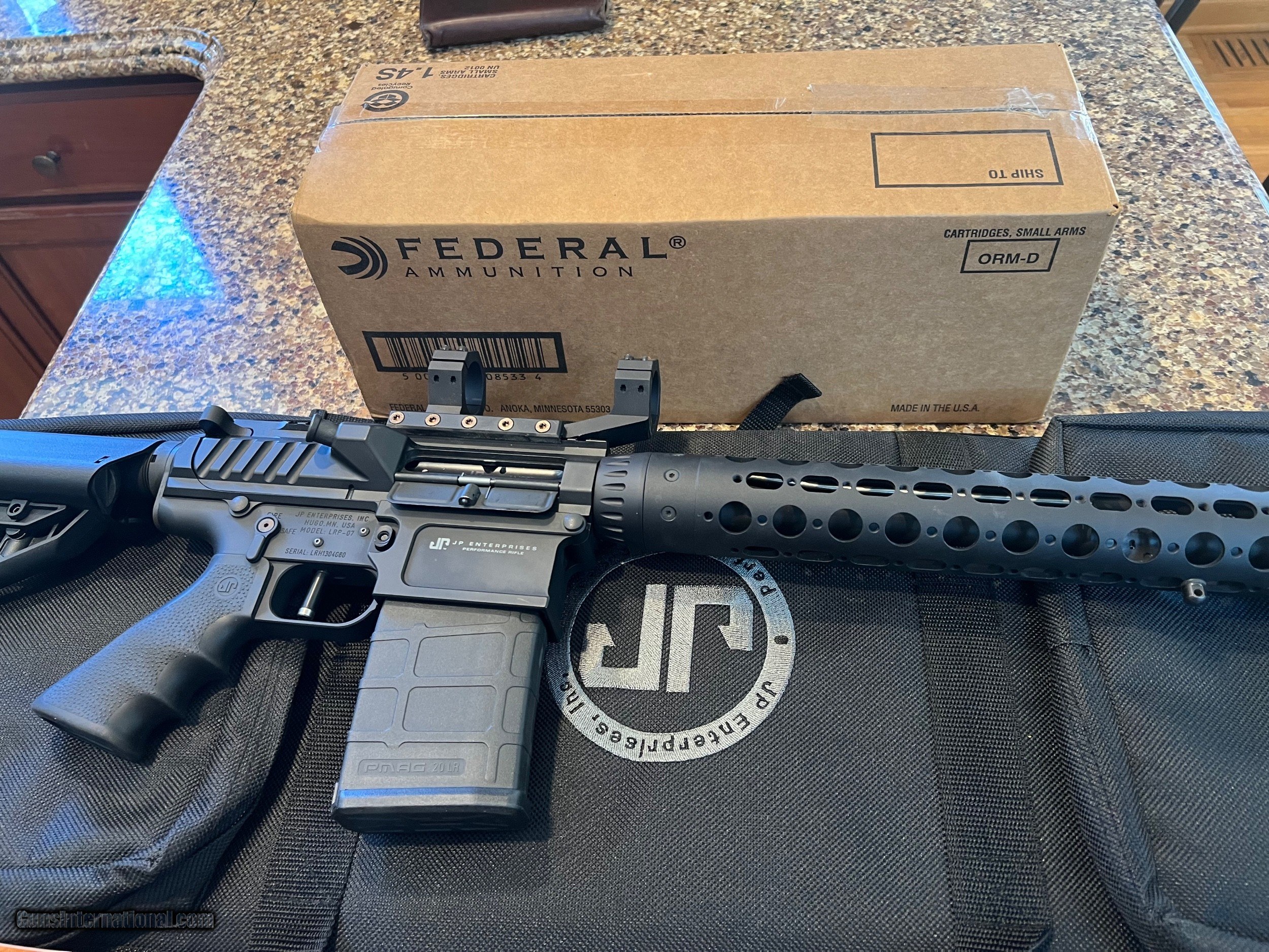 Description: New in Box. Never Fired. Best in Class. JP Enterprises PSC-12 Dual Charge [Side and Top] with every option offered at the time of purchase. LMOS Carrier, Silent Capture Spring, Roller Trigger, Accessory Rails. Dustcover, Surefire Suppressor Adaptor, SIngle Point Sling, JP Soft case, JP 30mm scope mount, 2 mags, Accessory kit. Will include a case of 500 round factory ammo American Eagle to be shipped separatly. SOLD Rifle Caliber: .308 Winchester |