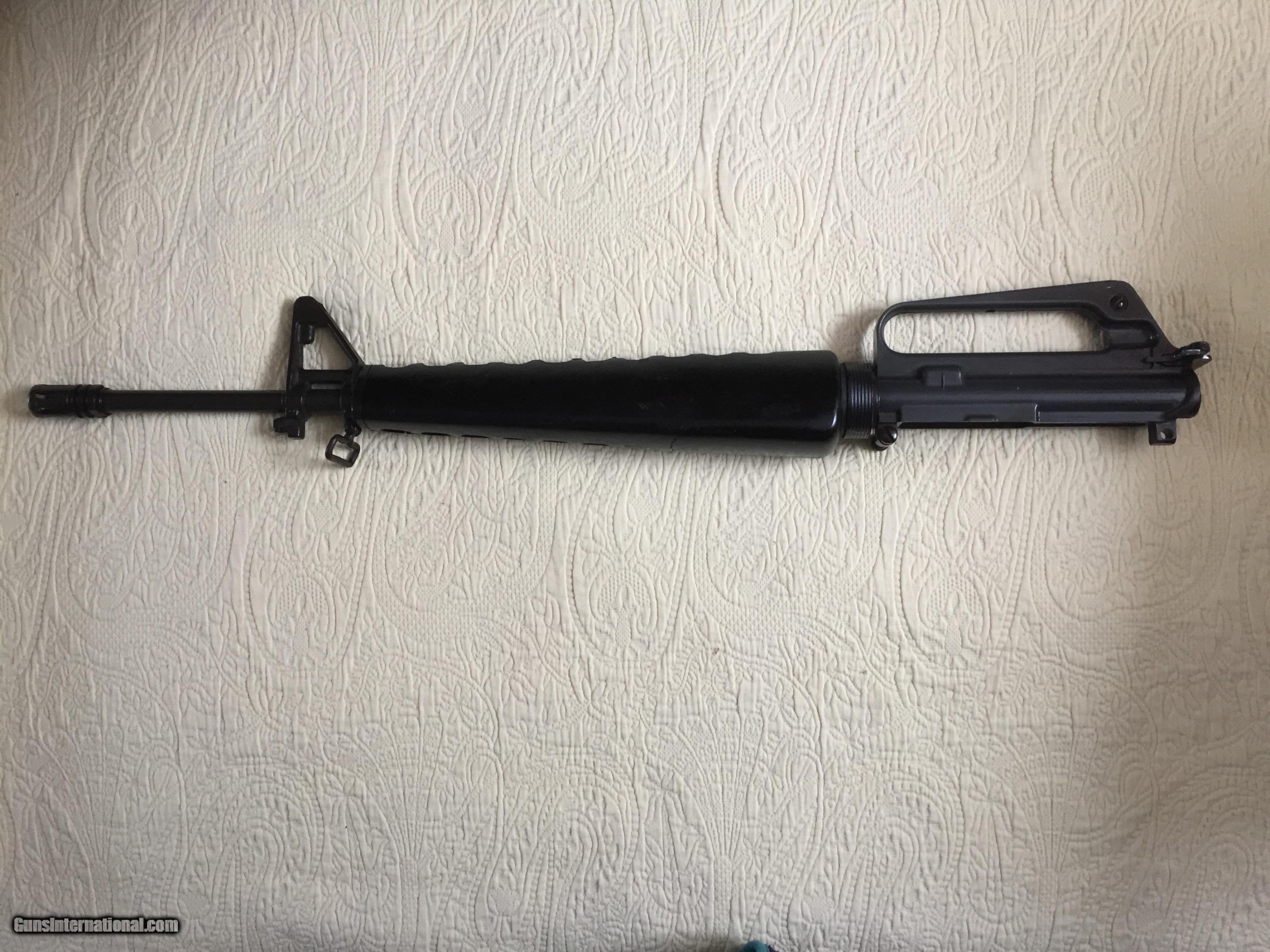 Description: This is a used AR-15 upper manufactured by Colt (I think). It has a 20 inch barrel with a chrome bore. It shows wear on the forend with a chip missing (see photo) but the metal finish does not show much wear. The bore and bolt are in good condition but the ejection port cover needs a new latch spriing. Because of these issues, this upper is priced below market and is a bargain for someone seeking to complete an AR-15 cheaply! Buyer pays shipping and insurance costs. SOLD |