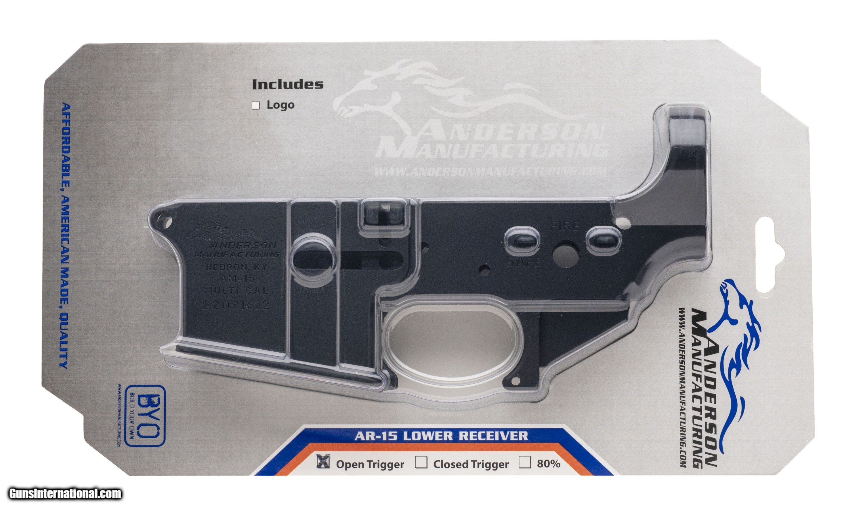 Description: "Anderson Manufacturing Am-15 multi Cal lower receiver with open trigger Guard. New. UPC: 712038921676. (STOCK PHOTO) SOLD |