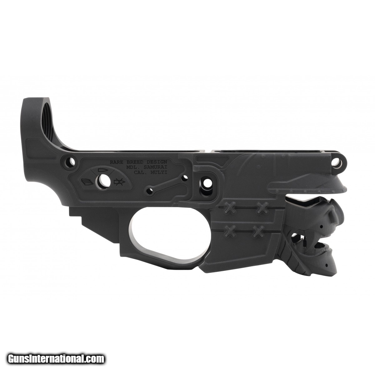 Rare Breed Samurai stripped lower receiver in black finish cnc machined from 7075 billet aluminum. Comes with screw-in bolt catch pin. New. UPC: