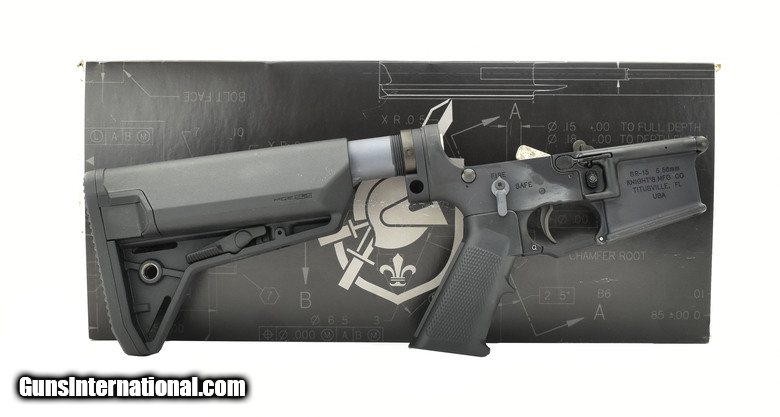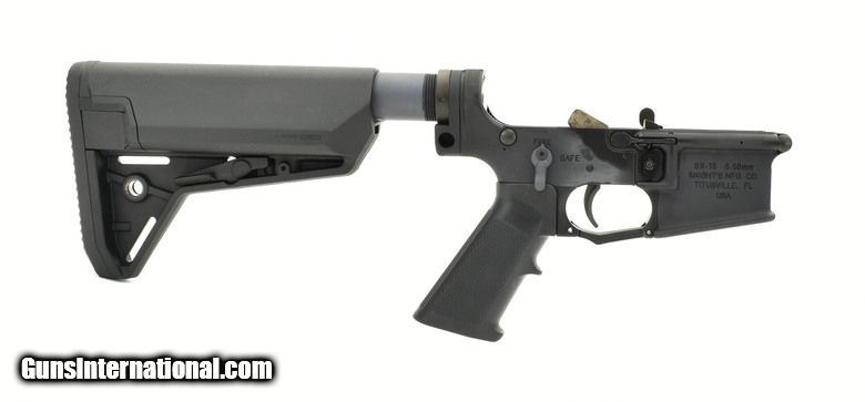 Description: Knight’s SR-15 5.56mm lower. Full ambidextrous controls and LMT SOPMOD stock. Complete with buffer and spring. Comes with box. New.