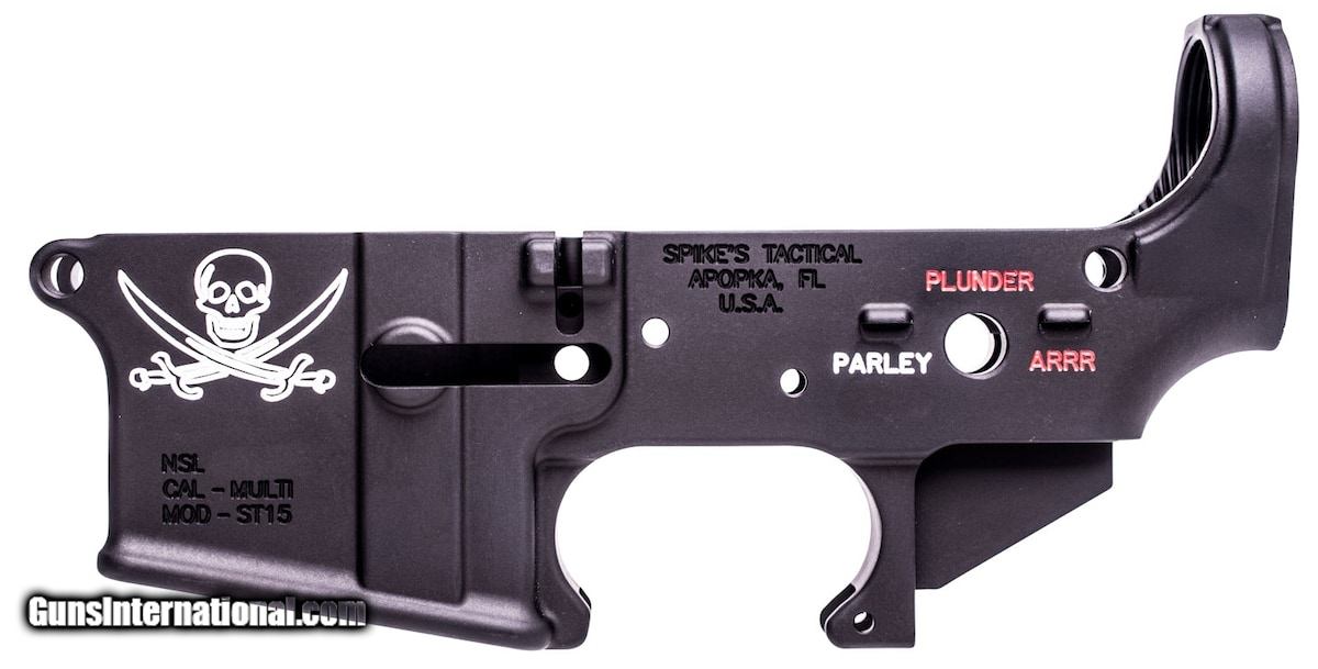 Description: Guns Listing ID: 603974 Spike‚‚s Tactical Pirate Lower is a special series lower featuring a Calico Jack logo instead of the usual ST Spider logo. The selector markings are Parley, Plunder and Arrr markings. NOTE: Requires a lower parts kit, buffer & stock of your choosing to complete SOLD Manufacturer: SPIKE‚‚S TACTICA Model: CALICO JACK LOWER RECEIVER Caliber Info: MULTI Condition: new |