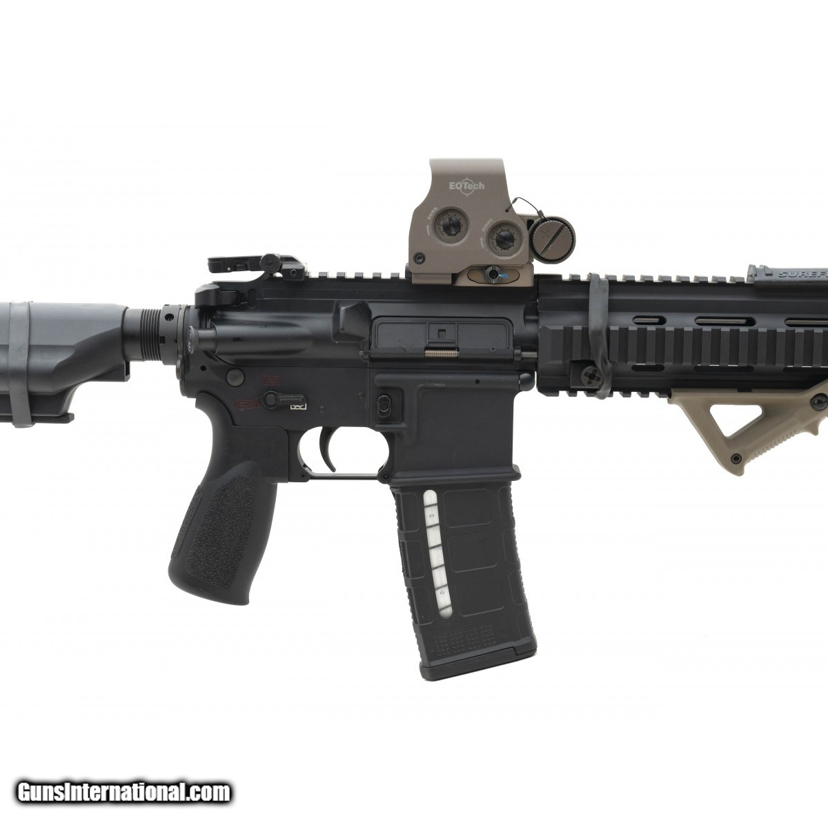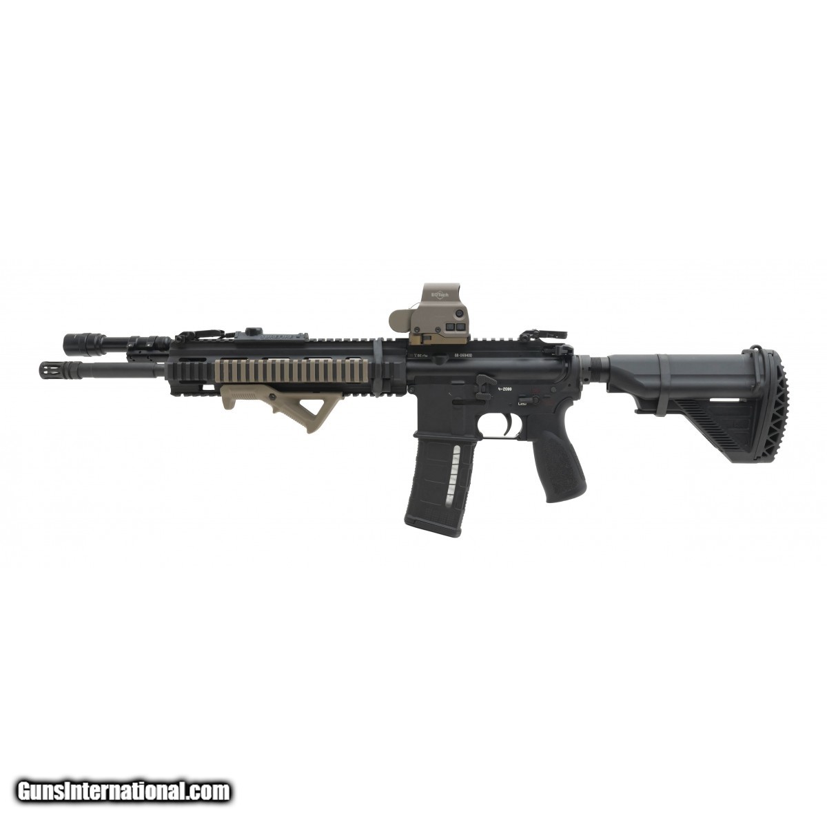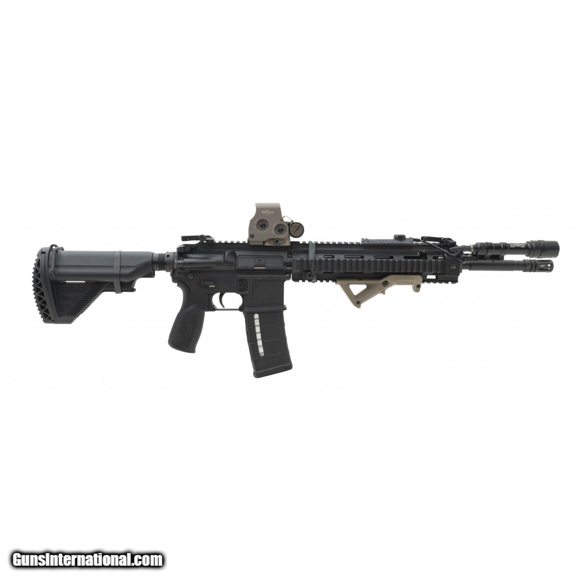 Description: " SN:4-2099. Brownells 416 clone lower, with a 16"" HK upper and HK lower parts. Overall in excellent condition, with a BCM charging handle, flip up iron sights, a Maritime bolt release, an Eotech sight, and a surefire Weapon light and pressure pad. SOLD |