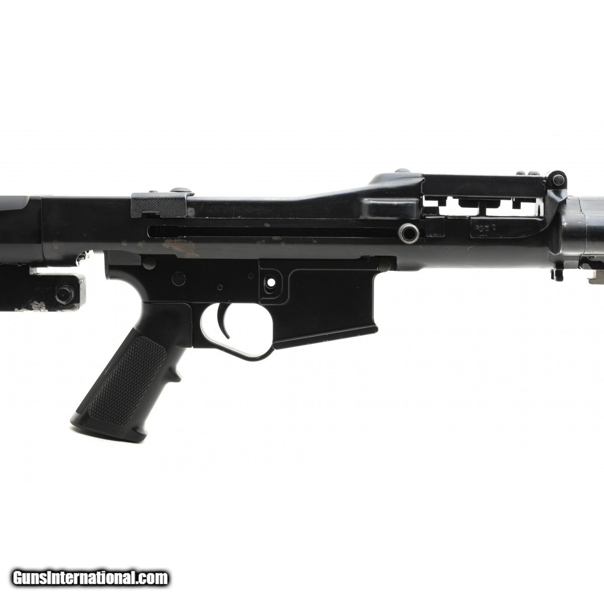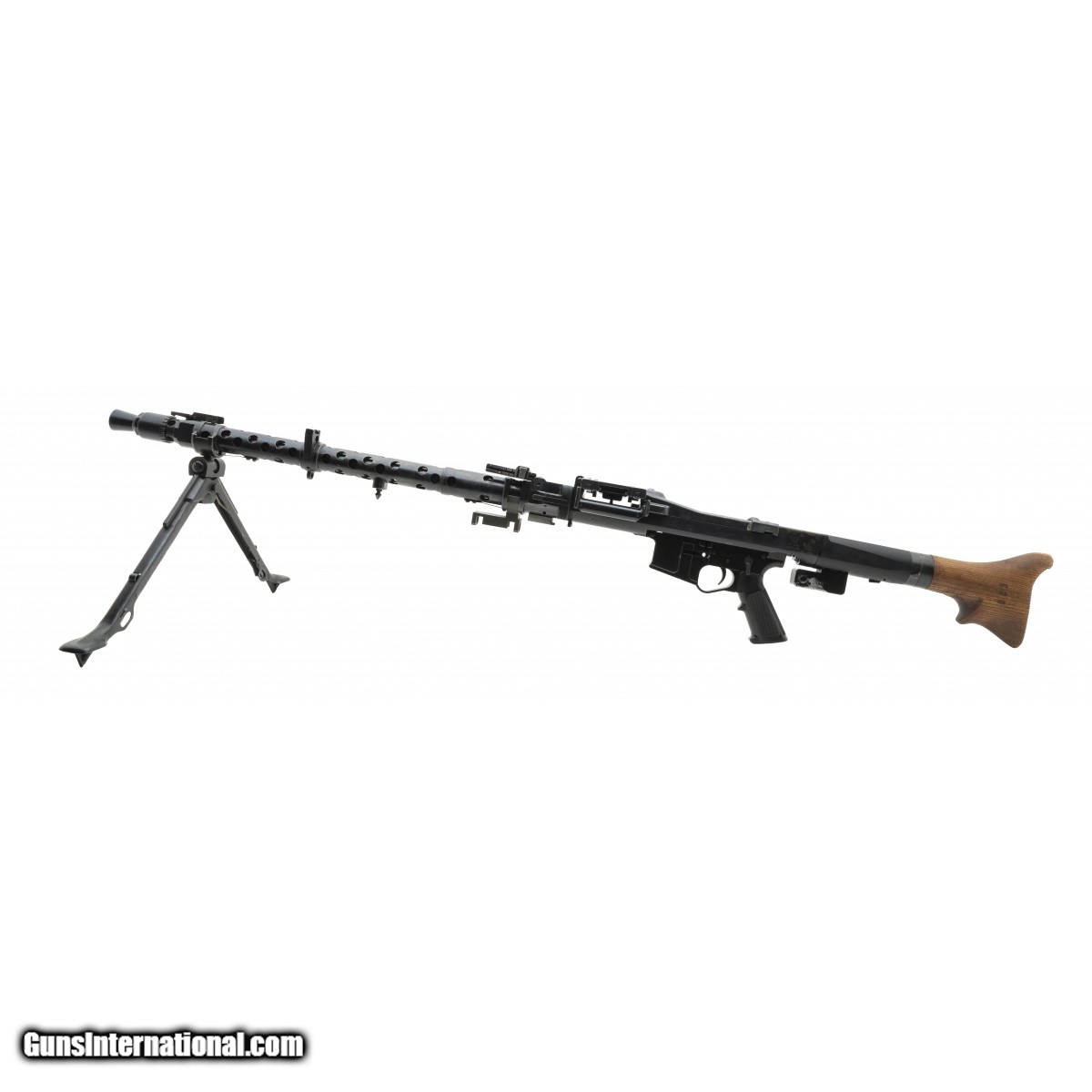 SN: 2017/8545A. Desirable Semi-auto, belt-fed MG34 that uses an AR-15 style lower as the trigger and safety. Overall very good condition. Comes with bipod, wooden crate, two ammo cans, belt links and paperwork.
