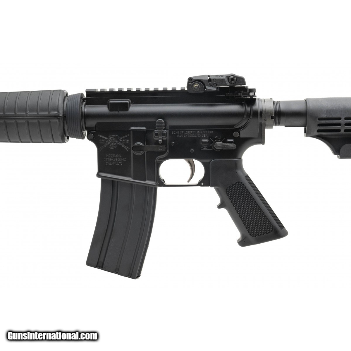 Description: " 16"" AR-15 pattern rifle with a fixed front sight post/gas block and a liberty fighting trigger. Includes pocket constitution, a single steel magazine. Made in Texas. NEW. UPC:M4LEGACY. SOLD |