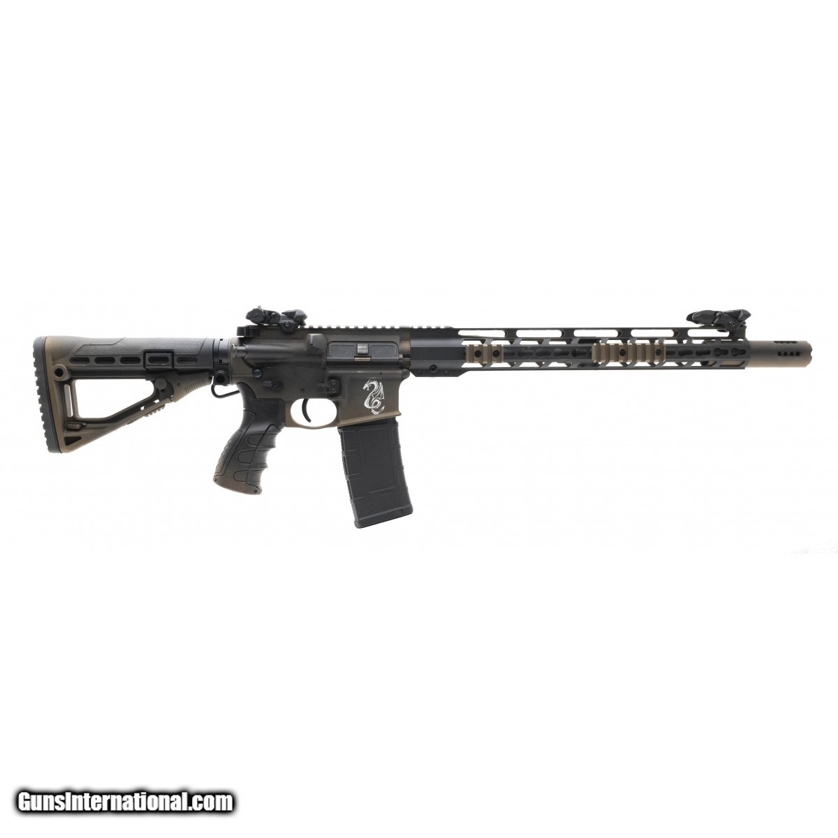 Description: " AR-15 with distressed bronze finish, forward blast can, freefloat rail, and Franklin Armory binary trigger. Very good condition. SOLD |