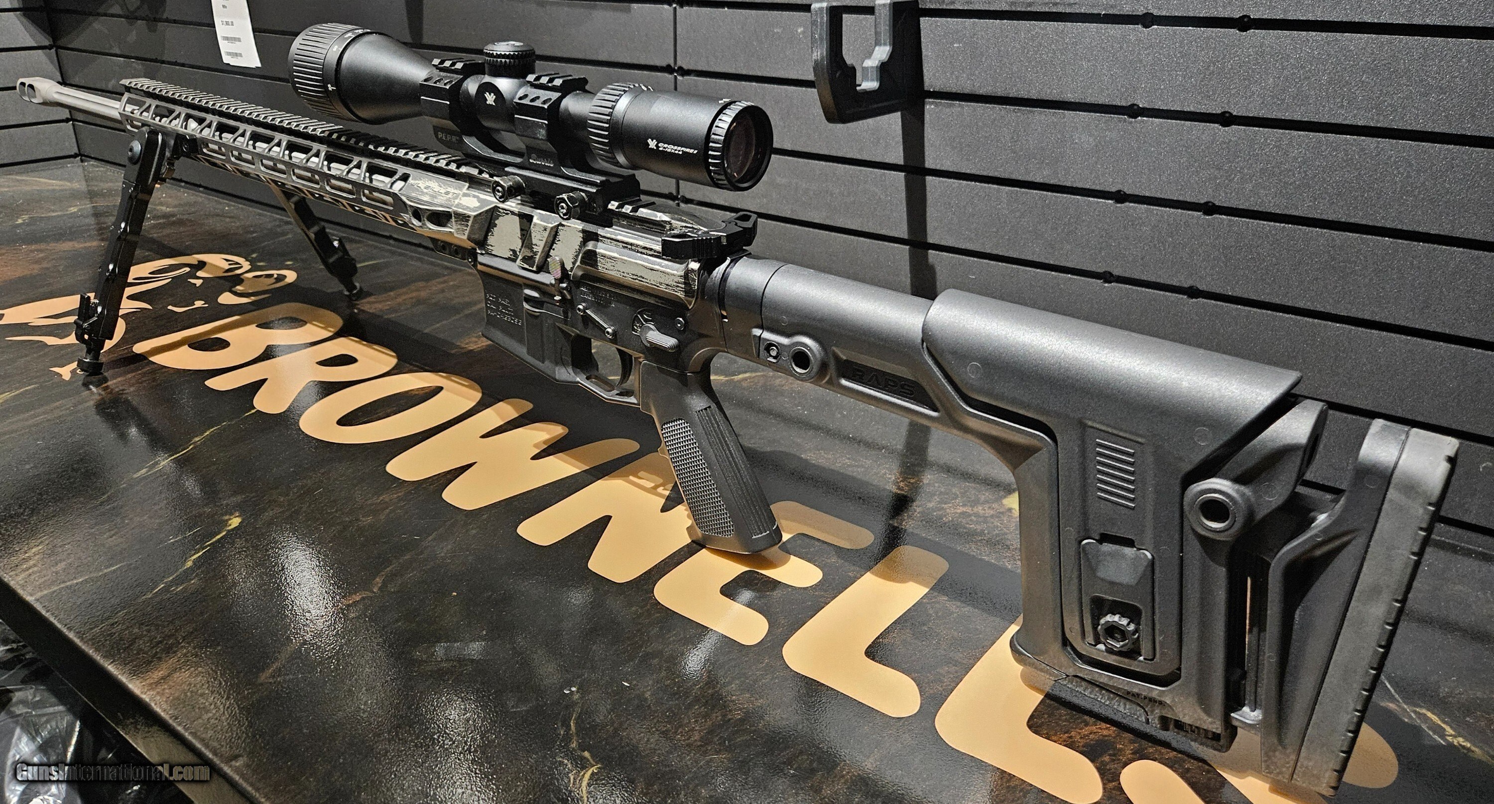 Description: Pre-Owned Aero Precision .224 Valkyrie build Aero Precision lower, JL Billet upper, EABCO 224 Valkyrie barrel, RAPS - Rapid Adjustment Precision Stock, Midten Mlok Bipod, and a Vortex Crossfire 2 on a Burris P.E.P.R mount.