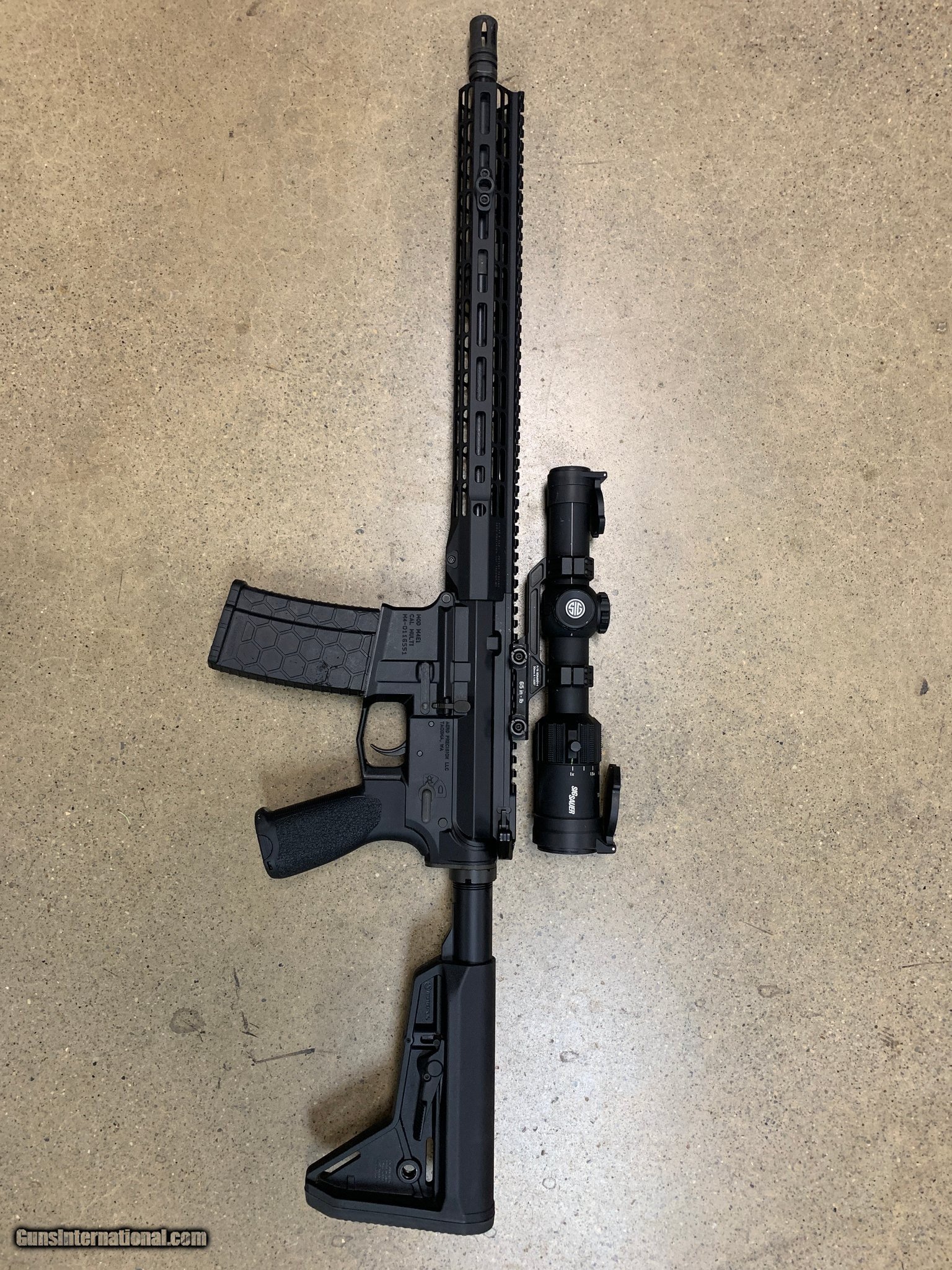 Description: Guns Listing ID: 601024 16in Aero Precision M4E1 w/ Atlas R-One handguard. Magpie adjustable stock and Magpul grip. Mlok QD sling attachment on handguard. Comes with Sig Tango MSR 1-6x24 illuminated reticle and Sig Alpha Mount. Aero Precision Breach Ambi charging handle. SOLD Manufacturer: AERO PRECISION Model: M4E1 Caliber Info: 5.56X45MM NATO Condition: Used - Non-Certified Barrels: 16" BARREL Action: SEMI AUTOMATIC Finish: black |
