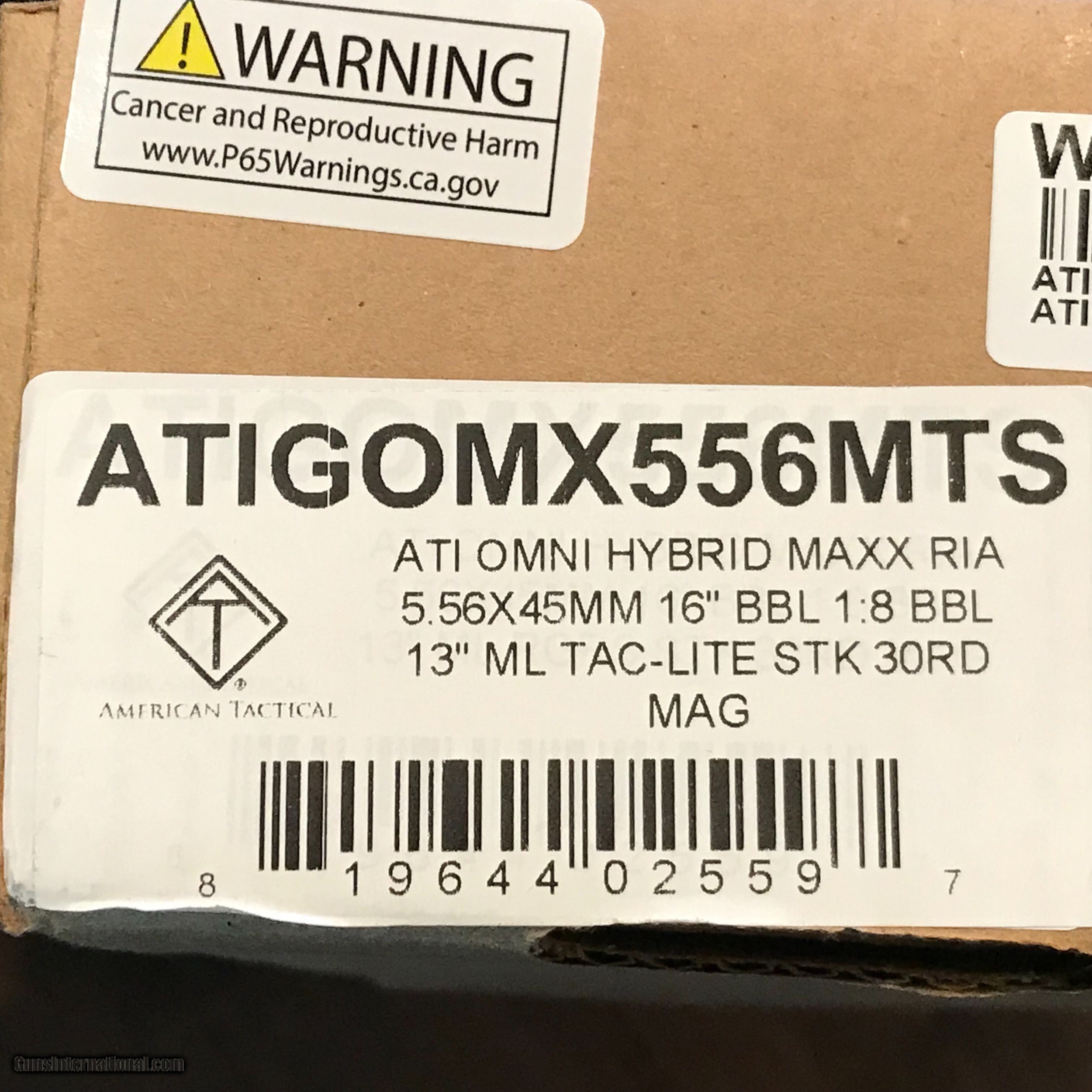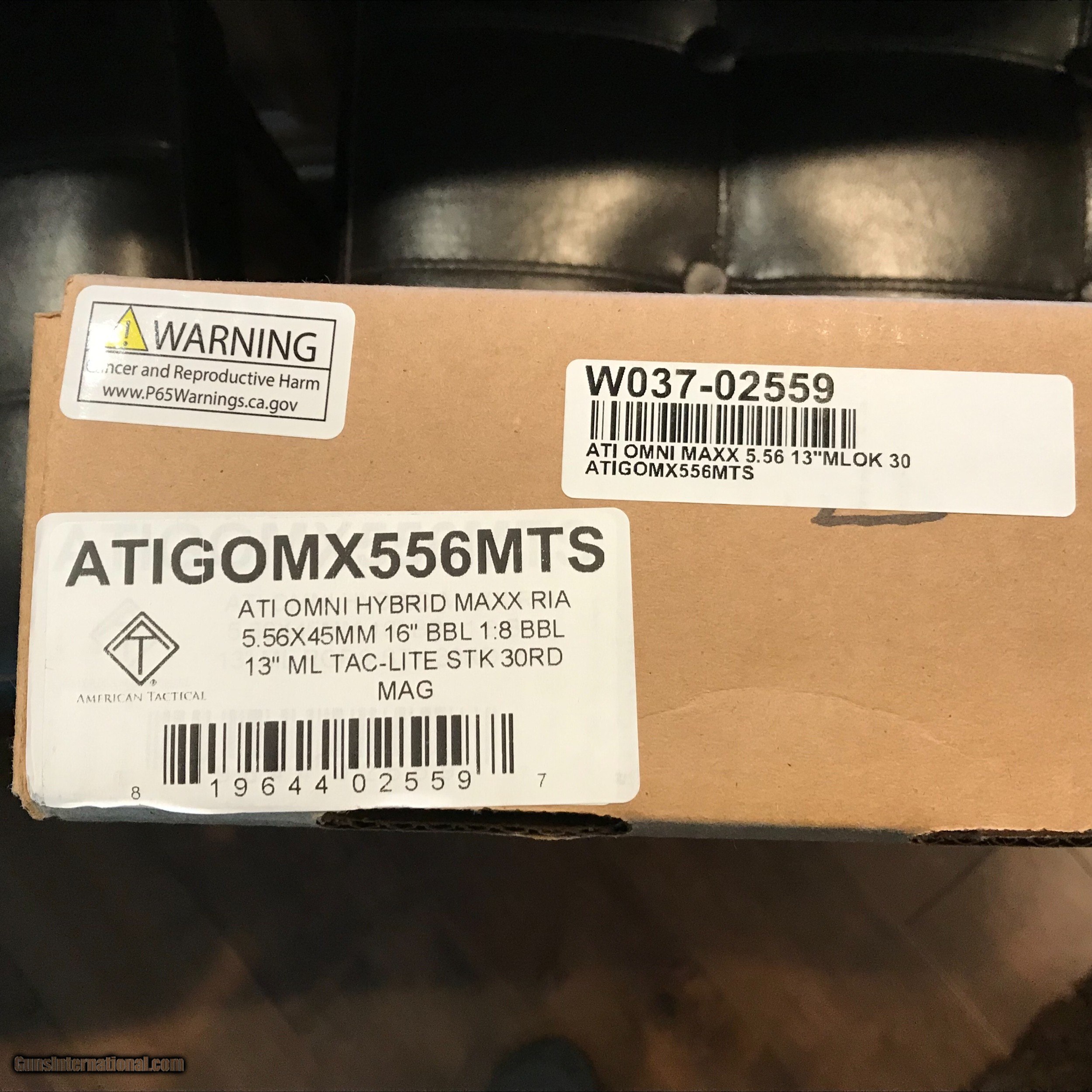 Description: LOOK NEW IN THE BOX ATI OMNI MAXX AR STYLE RIFLE WITH 30 RD MAGAZINE This Omni Hybrid Maxx rifle features a Rogers Super-Stoc, 16" barrel, and a 13" M-LOK hanguard. BrandATICategoryTactical RiflesCaliber5.56x45mm NATO ModelOmni HybridSeriesMaxxStock FinishBlackActionSemi-Auto Barrel Length 16" Sights None , Optic Ready Capacity 30 +1Magazine TypeAR-15 Grip PolymerHandRightHandguards13 " M-LOK Rails" M--LokReceiver FinishBlackReceiver MaterialAluminumStock Description6 Position Rogers Super-StocStock Finish GroupBlackStock MaterialSyntheticTwist1: 8" Barrel FinishBlackSearch Code ATIS Smilar Length16" SOLD Rifle Caliber: .223 Remington, 5.56x45mm NATO Manufacturer: ATI Model: Omni MAXX Hybrid Serial Number: NS312670 Barrel Length: 16” Condition: New in Box Metal Condition: New Wood Condition: N/A Sights: Optics Ready |