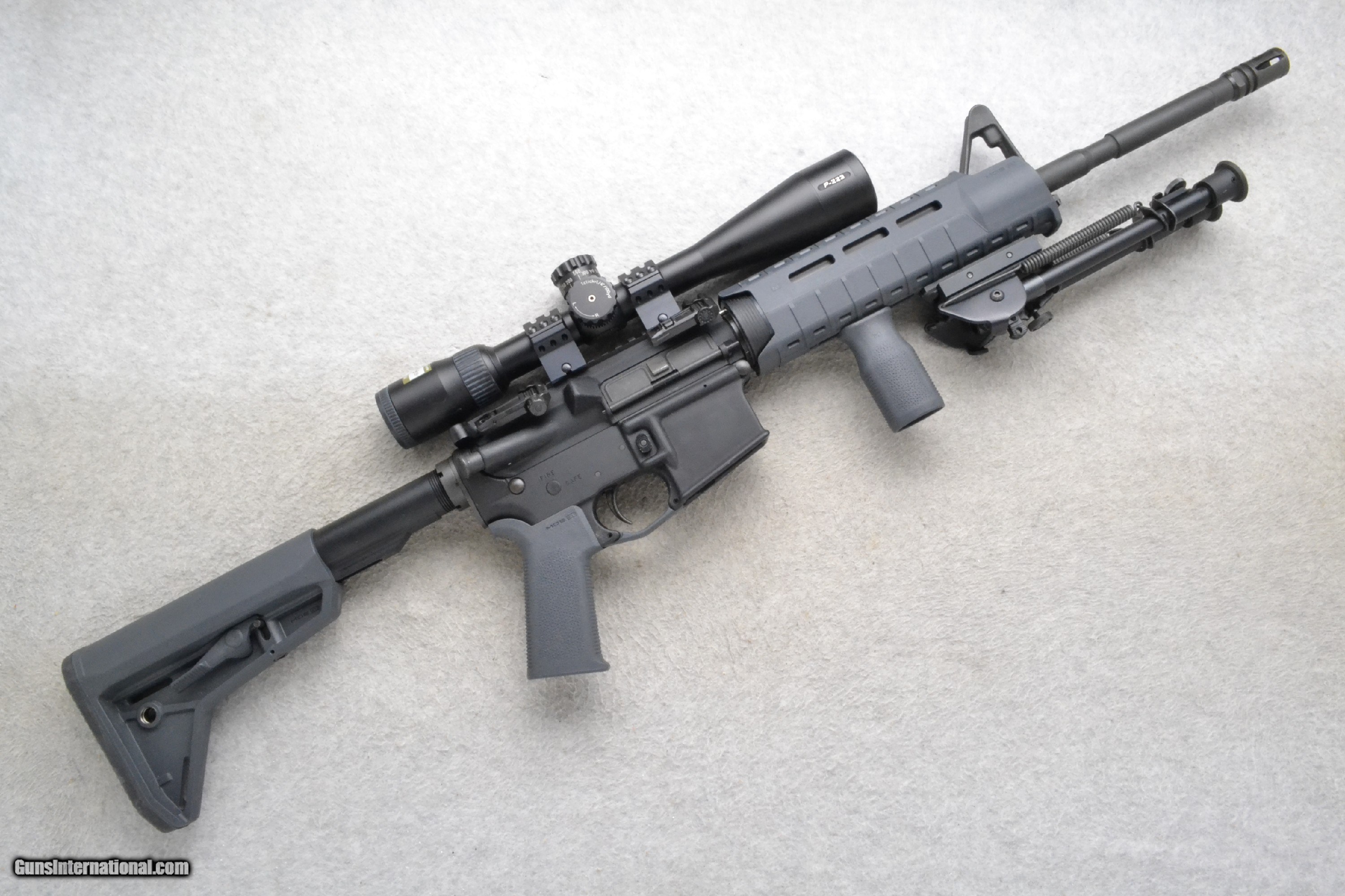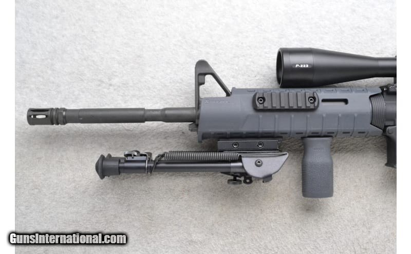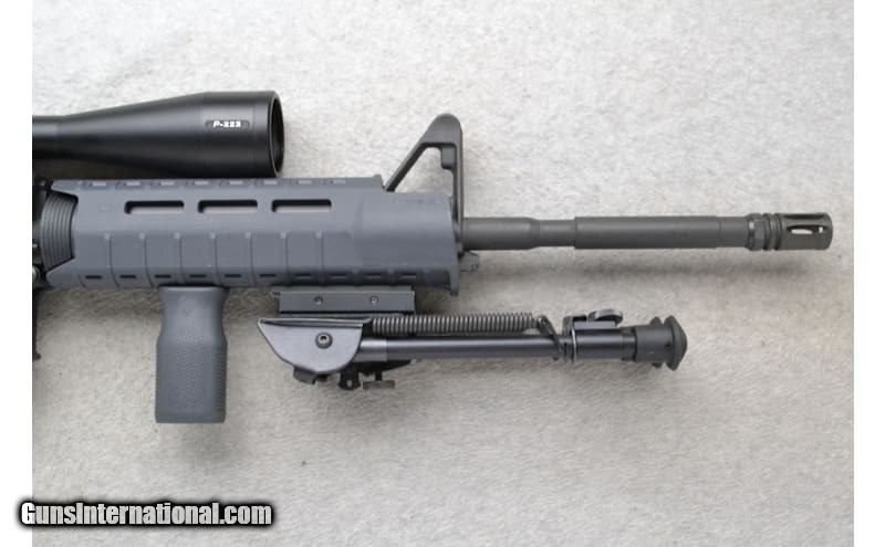 Description: This Colt Defense M4 Carbine is a right-hand semi-auto rifle in 5.56 NATO Cal. The barrel is 16 inches long with a flash hider, and a 1:7 ROT. The forearm is a floating handguard with a foregrip, and a bipod. It has an A-frame with a post front sight, a Nikon P-223 4-12x40mm scope, and a flip-up peep rear sight. The stock is adjustable polymer with a grooved black rubber butt pad. The pistol grip has textured side panels and textured front and back straps. It includes a sling and one magazine. 5.56 NATO 5.56 NATO Chambers: 30 round detachable magazine Metal Condition: Very good Bore Condition: Excellent Barrels: "16"", flash hider, ROT 1:7 Stock Dimensions: "LOP 14"", adjustable Fore End: "Floating handguard, mounted foregrip, mounted bipod Butt Pad: Grooved black rubber Weight: 9 lbs. Sights: "A-frame with a post front, Nikon P-223 4-12x40mm scope, flip-up peep rear Item Location: Richfield, WI Price: $1,499.99 Contact Seller |