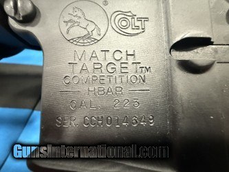 Description: Guns Listing ID: 585052 This firearm is preowned but as you can see in the pictures not been fired. Still has grease in the barrel. he Colt Match Target HBAR is a semi-automatic rifle designed for competitive shooting, featuring a heavy barrel (HBAR) for increased accuracy and stability. It is typically chambered in .223 Remington often has a 20-inch heavy barrel, and includes features like an adjustable rear sight, fixed front sight, and a two-stage match trigger for improved precision. The \"HBAR\" designation signifies the heavy barrel profile, which adds weight but reduces barrel whip and heat buildup, leading to better consistency during prolonged firing. Key features Heavy Barrel (HBAR): A thick, heavy barrel profile that improves accuracy by minimizing vibration and slowing heat buildup during rapid fire. Caliber: .223 Remington/5.56 NATO. Barrel: Often 20 inches in length with a heavy profile. A 1:9 or 1:7 twist rate is common for stabilizing a variety of bullet weights. Action: Semi-automatic, with a direct gas impingement system. Trigger: A two-stage match trigger is a common feature, designed to enhance precision. Sights: Typically includes a fixed front sight post and a removable carry handle with an adjustable rear sight drum (A2 style). Stock: Often features a fixed stock for stability. Receiver: Built on an AR-15 platform, often with an A2-style upper receiver. SOLD Manufacturer: COLT Model: MATCH TARGET COMPETITION HBAR Caliber Info: .223 REM Condition: Used - Non-Certified Barrels: 20" BARREL Action: SEMI AUTOMATIC Finish: BAZOOKA GREEN AND BLACK |