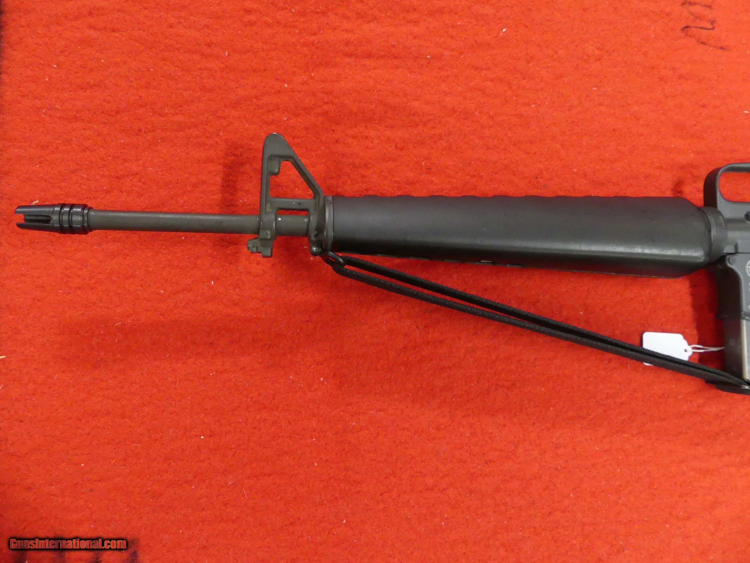 Description: This is a Colt retro M-16 rifle in .223 cal. This rifle is ALL Colt as far as I can tell. It is a complete vintage SP1 rifle with a Colt retro lower receiver ...semi auto only. Property of US Government marked. Furniture is in excellent condition with no cracks and no teeth missing on the handguards. Bright, strong bore. C marked bolt carrier group. The M16 first adoped by the United States Air Force did not have a forward assist feature....this rifle is configured that way. All parts are Colt and in excellent condition. A very unique rifle to collect or to shoot or both. Questions welcomed. Offers considered. My FFL to yours $55. Thank you for looking. SOLD Rifle Caliber: .223 Remington |